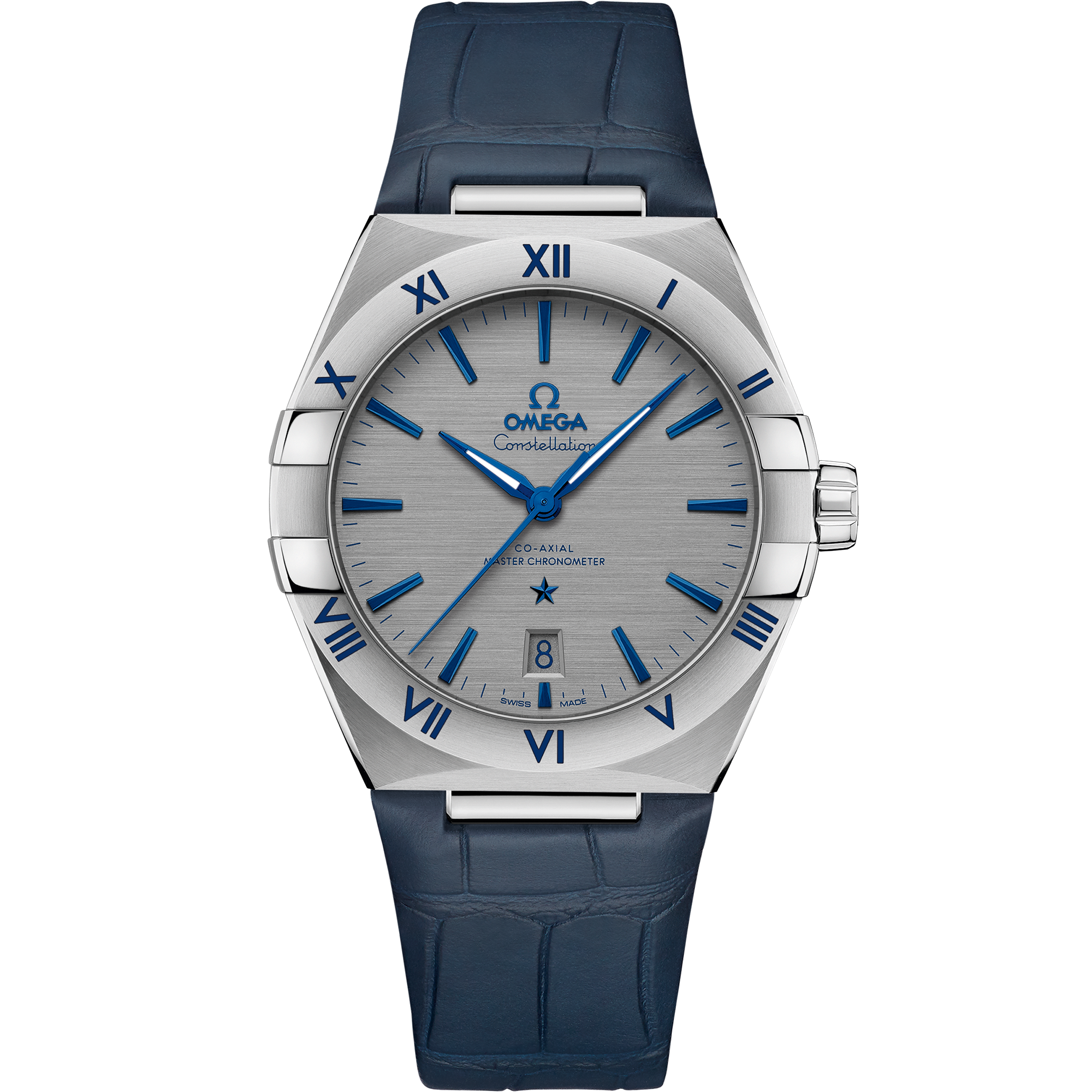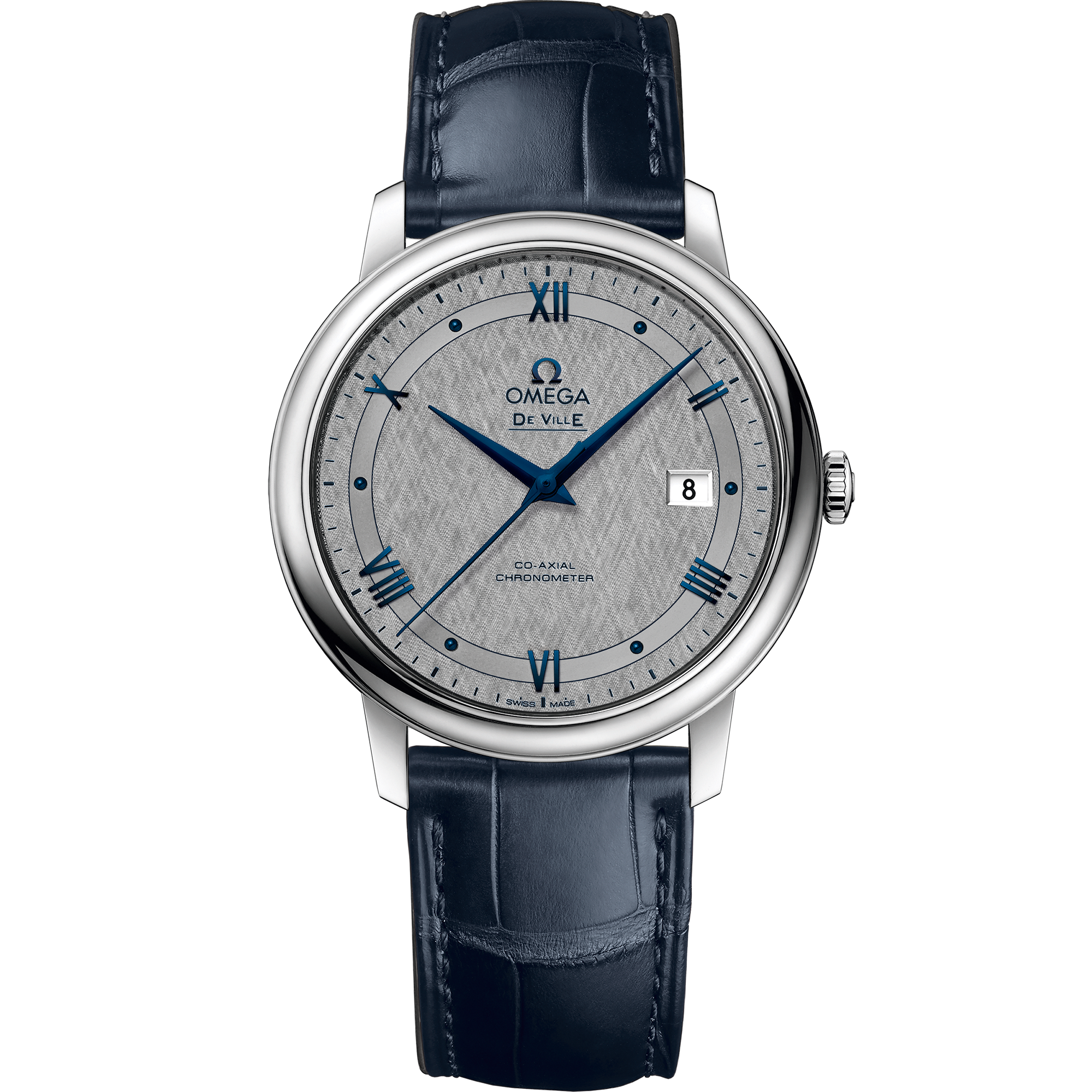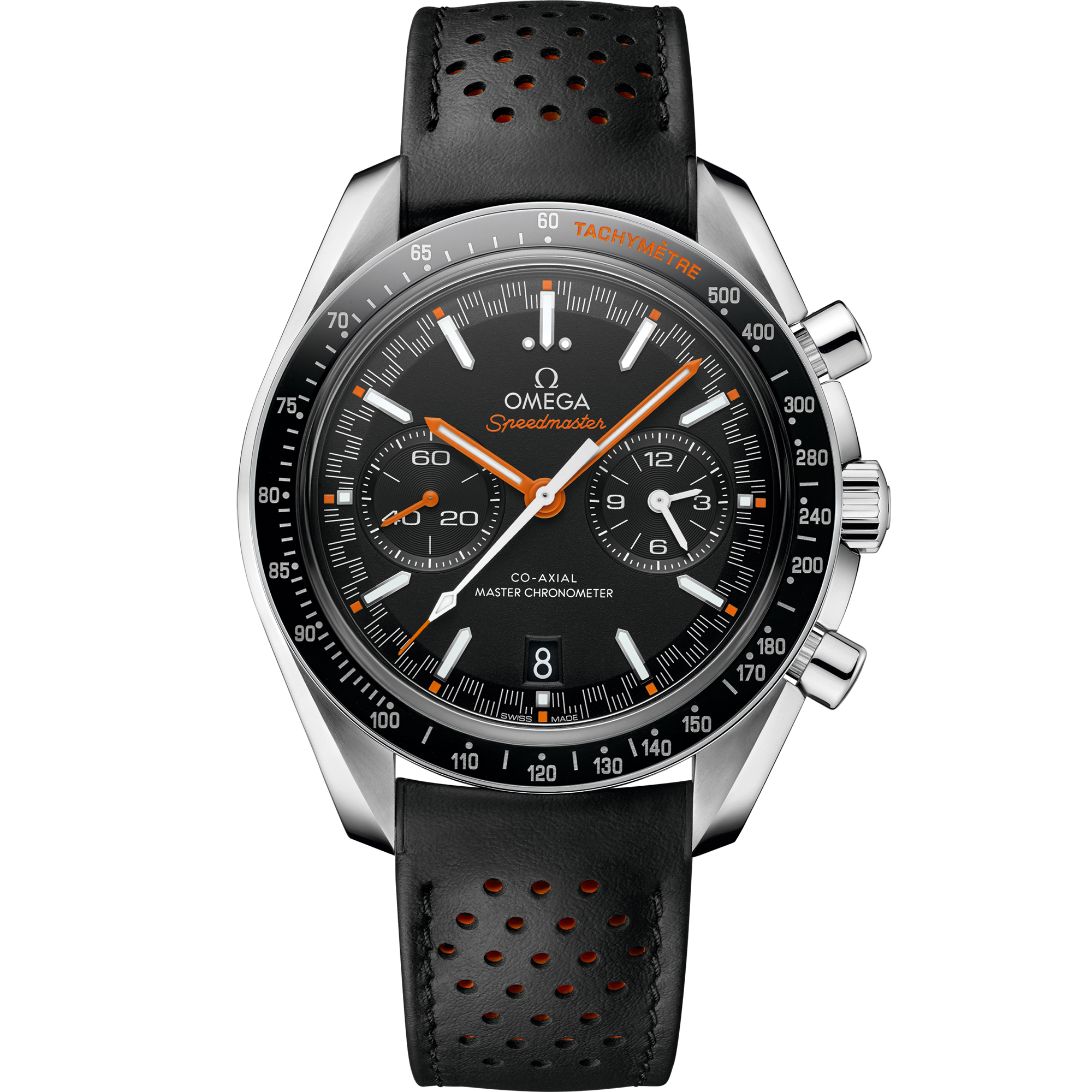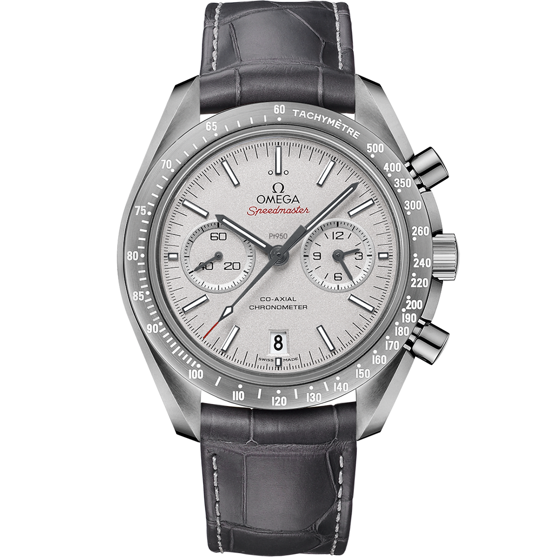 44.25 mm, grey ceramic on leather strap with foldover clasp