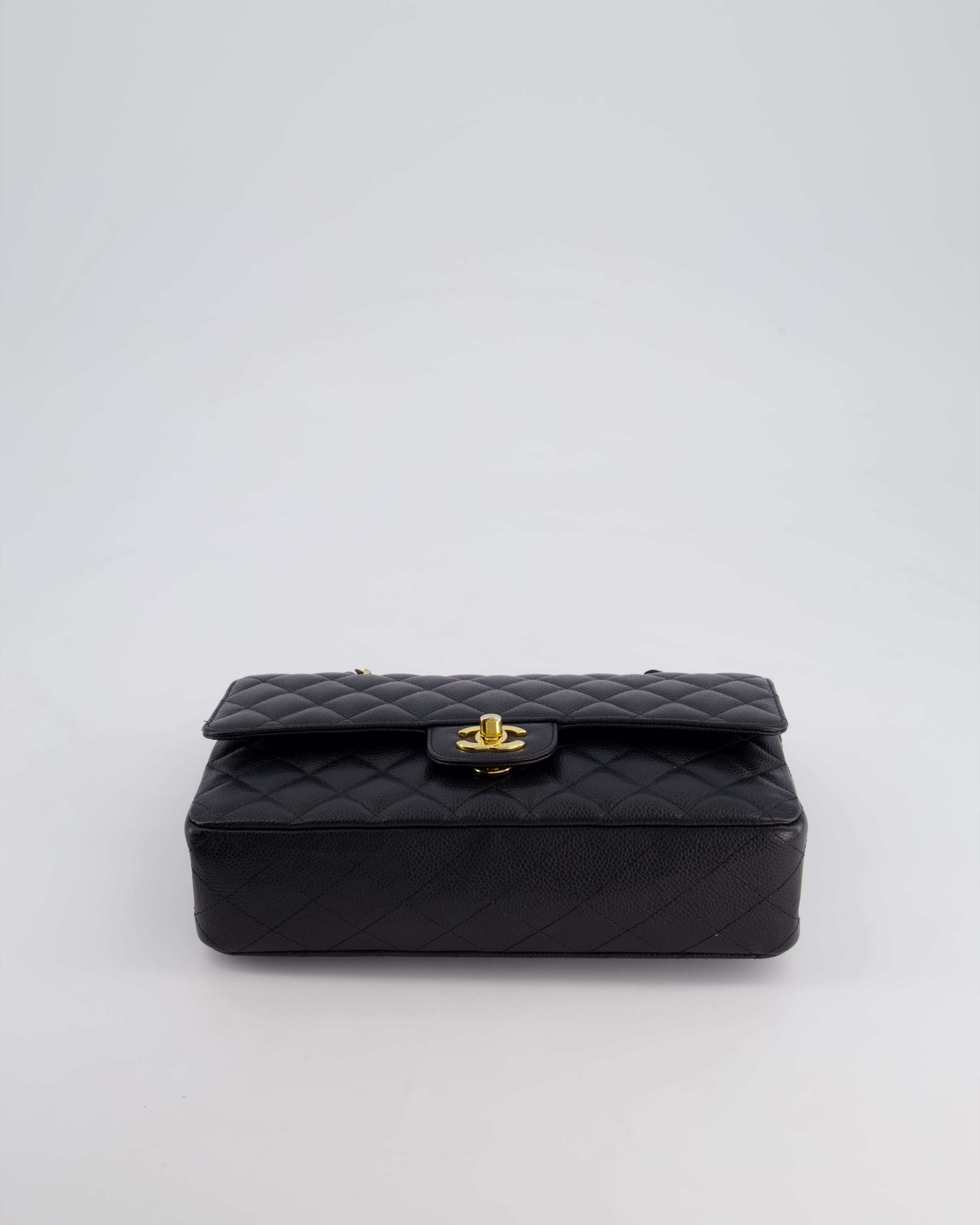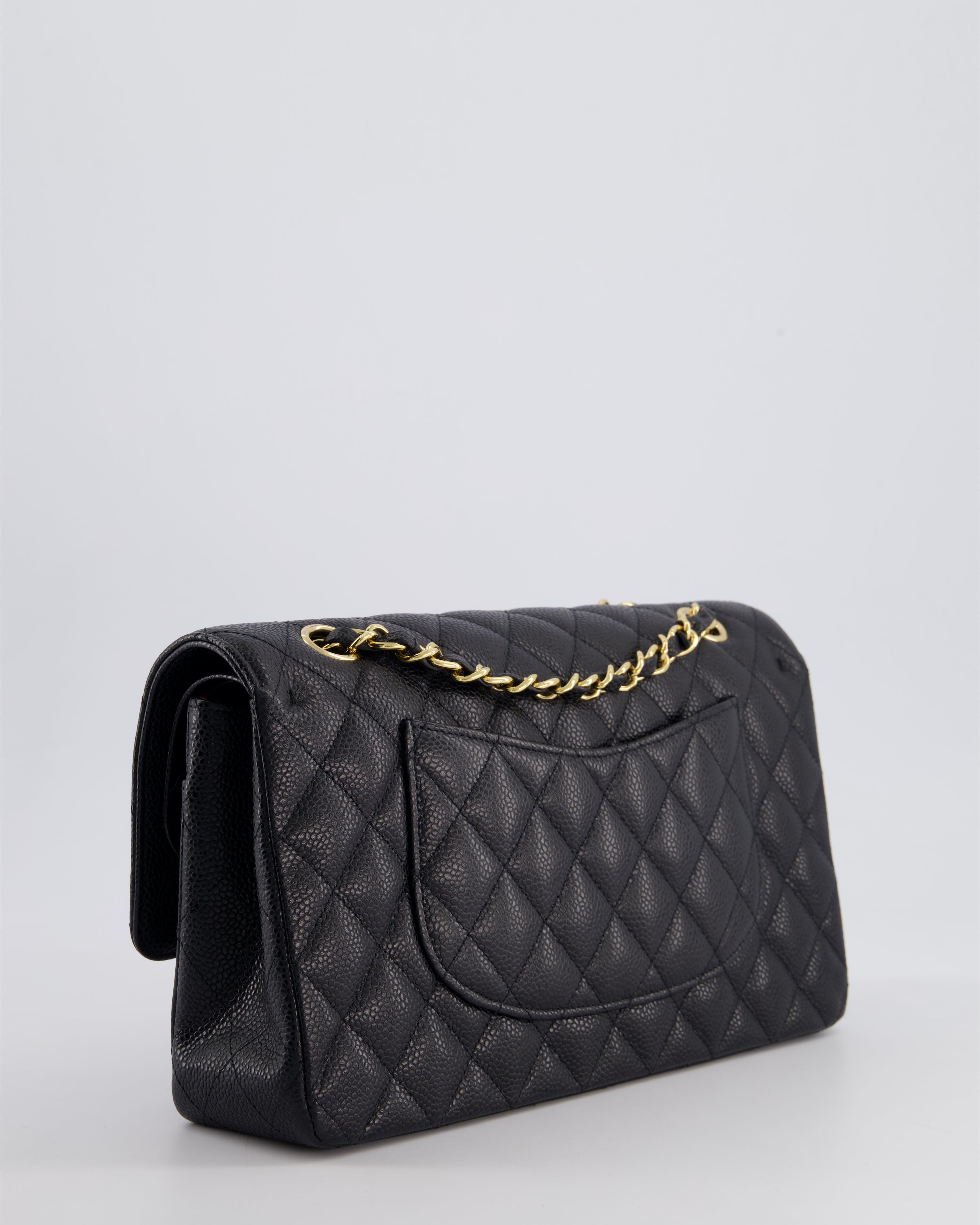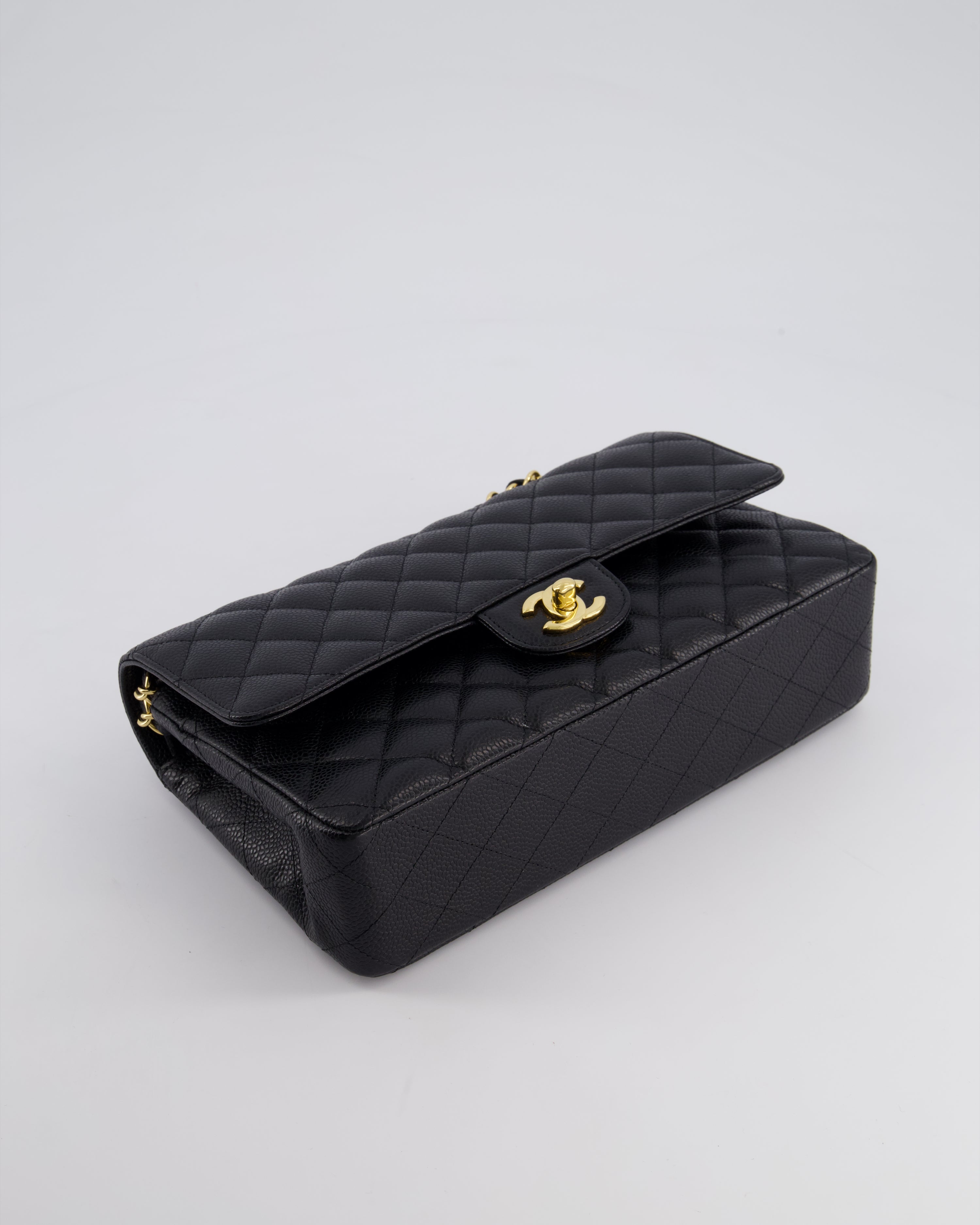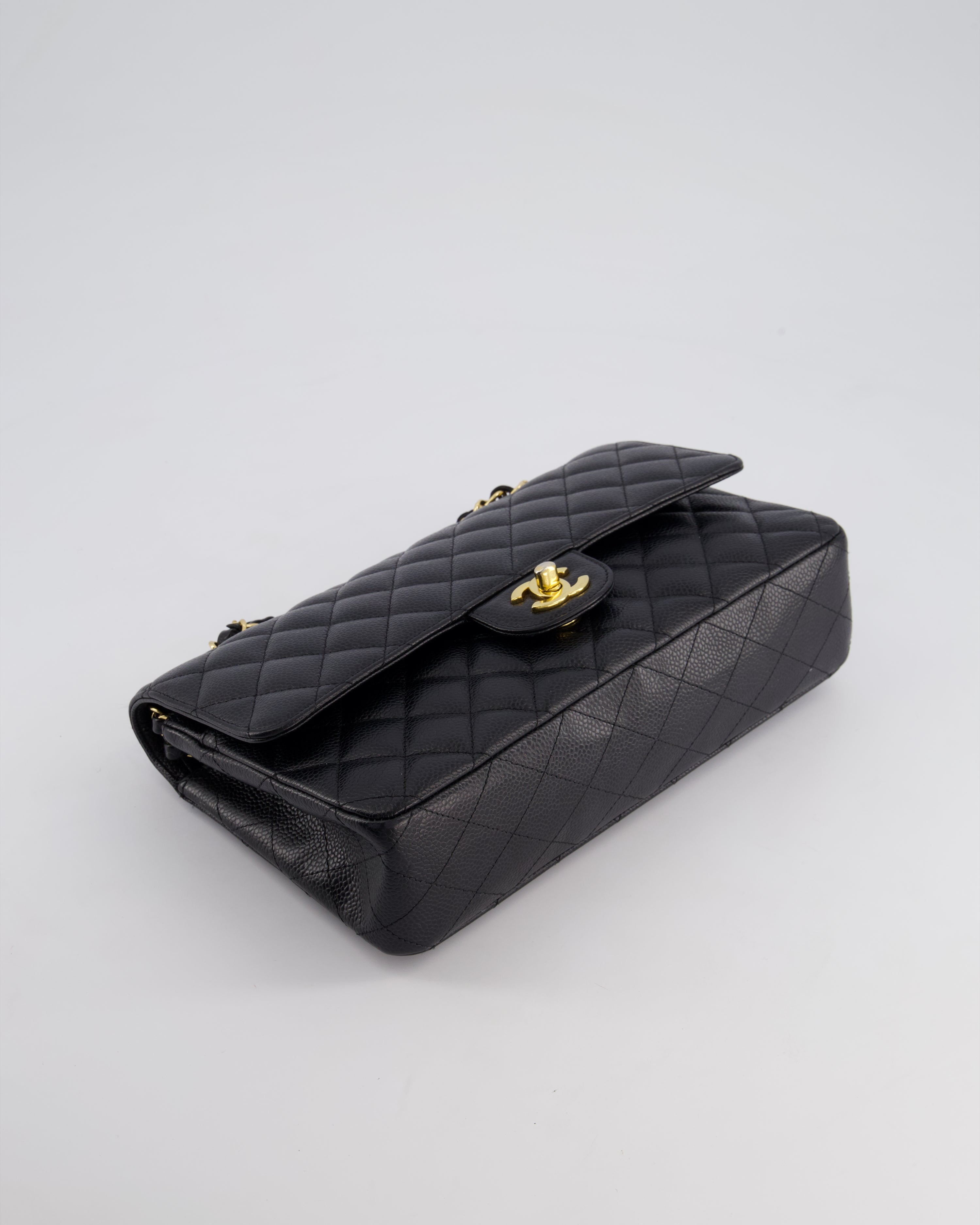 Chanel Black Medium Classic Double Flap Bag in Caviar Leather with Gold Hardware