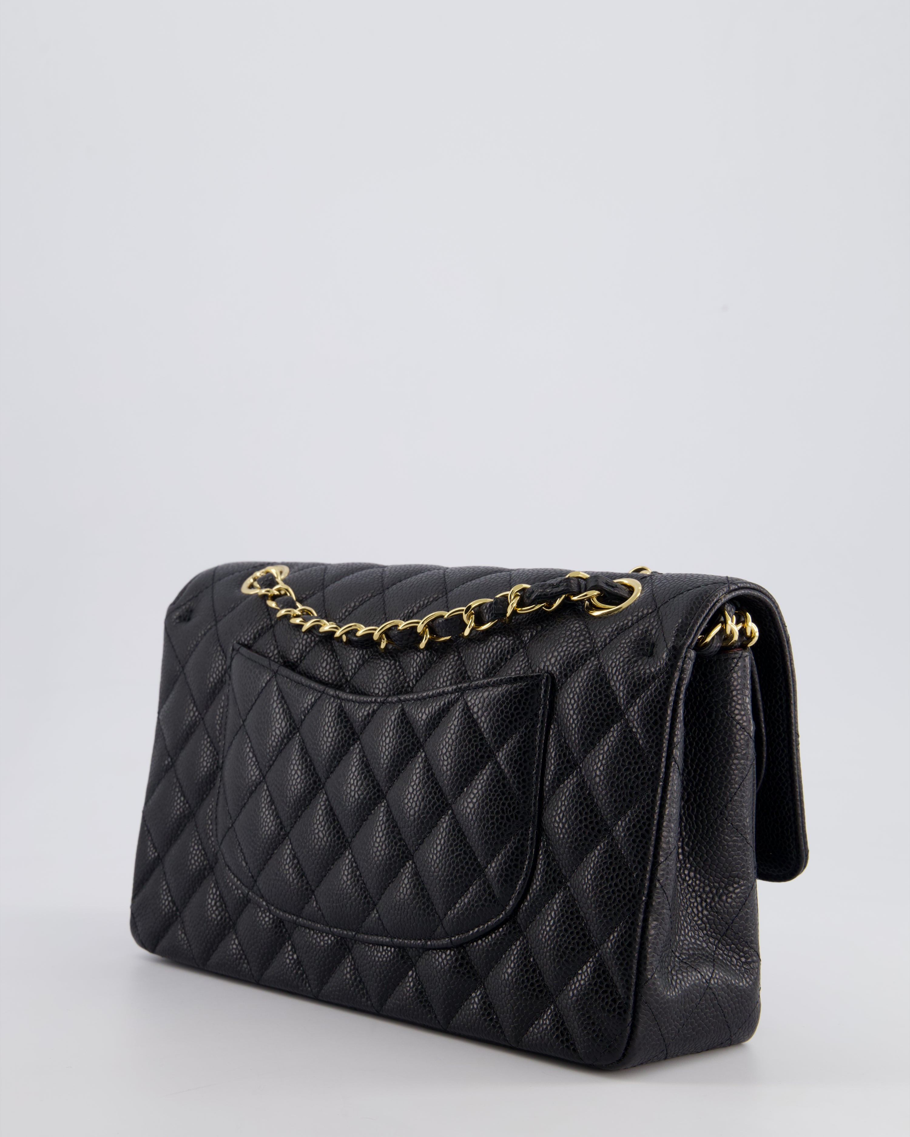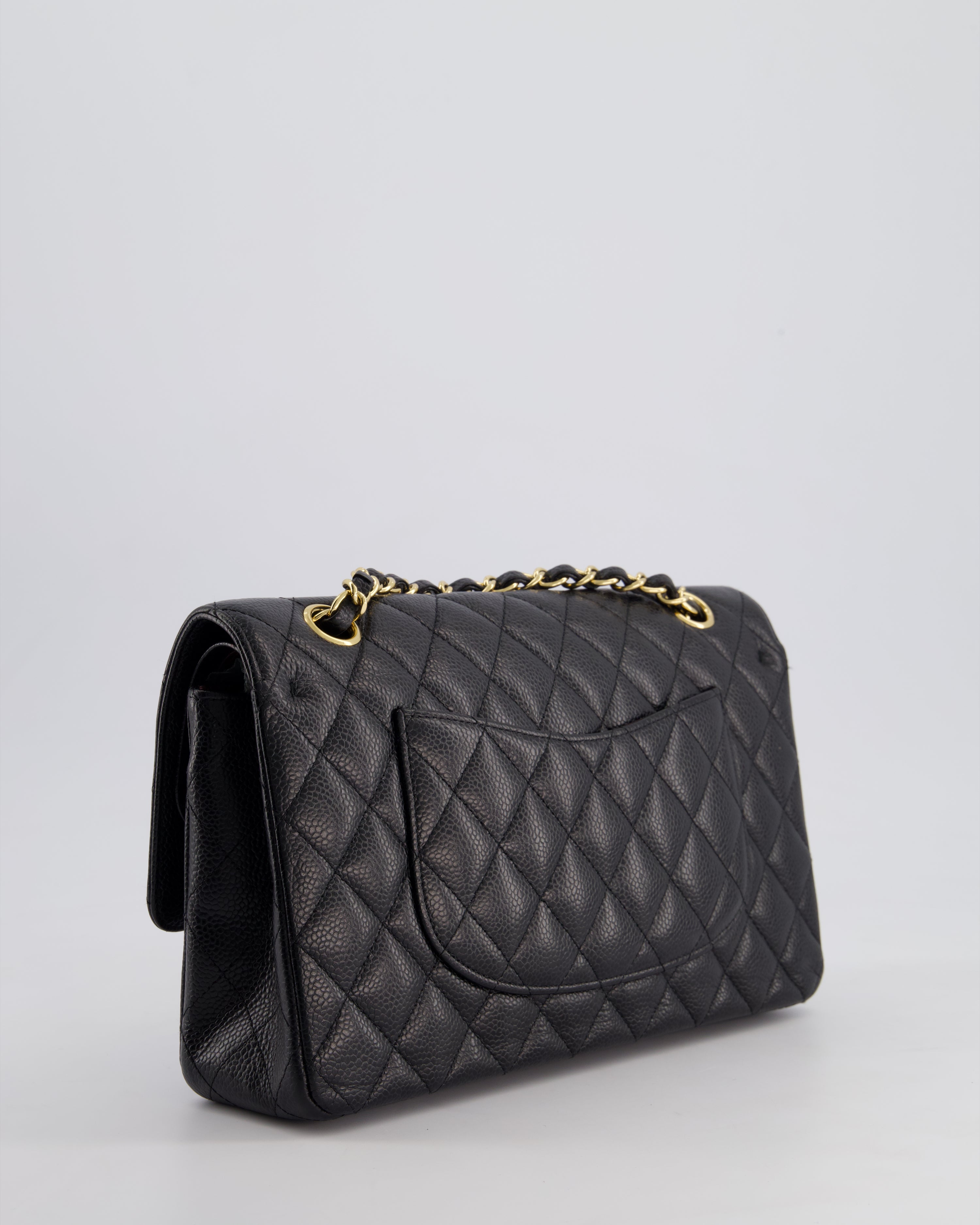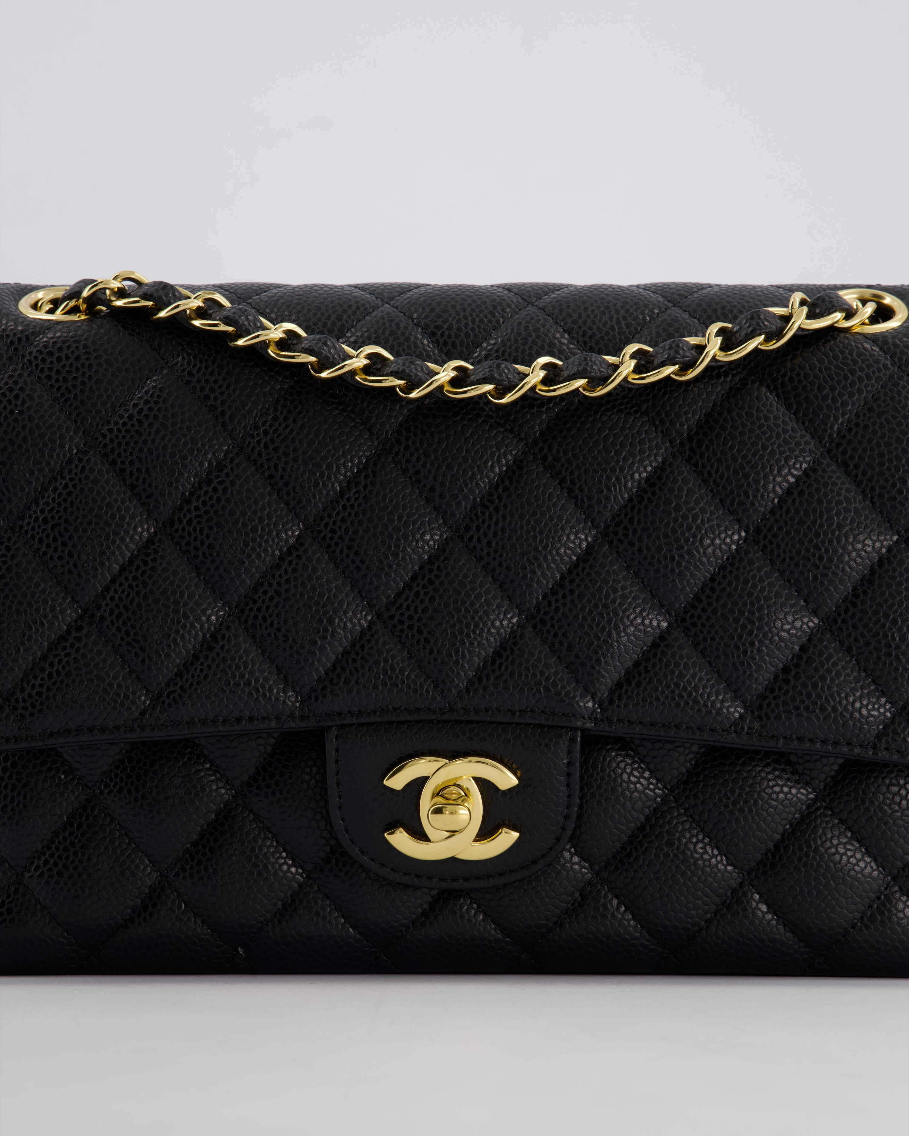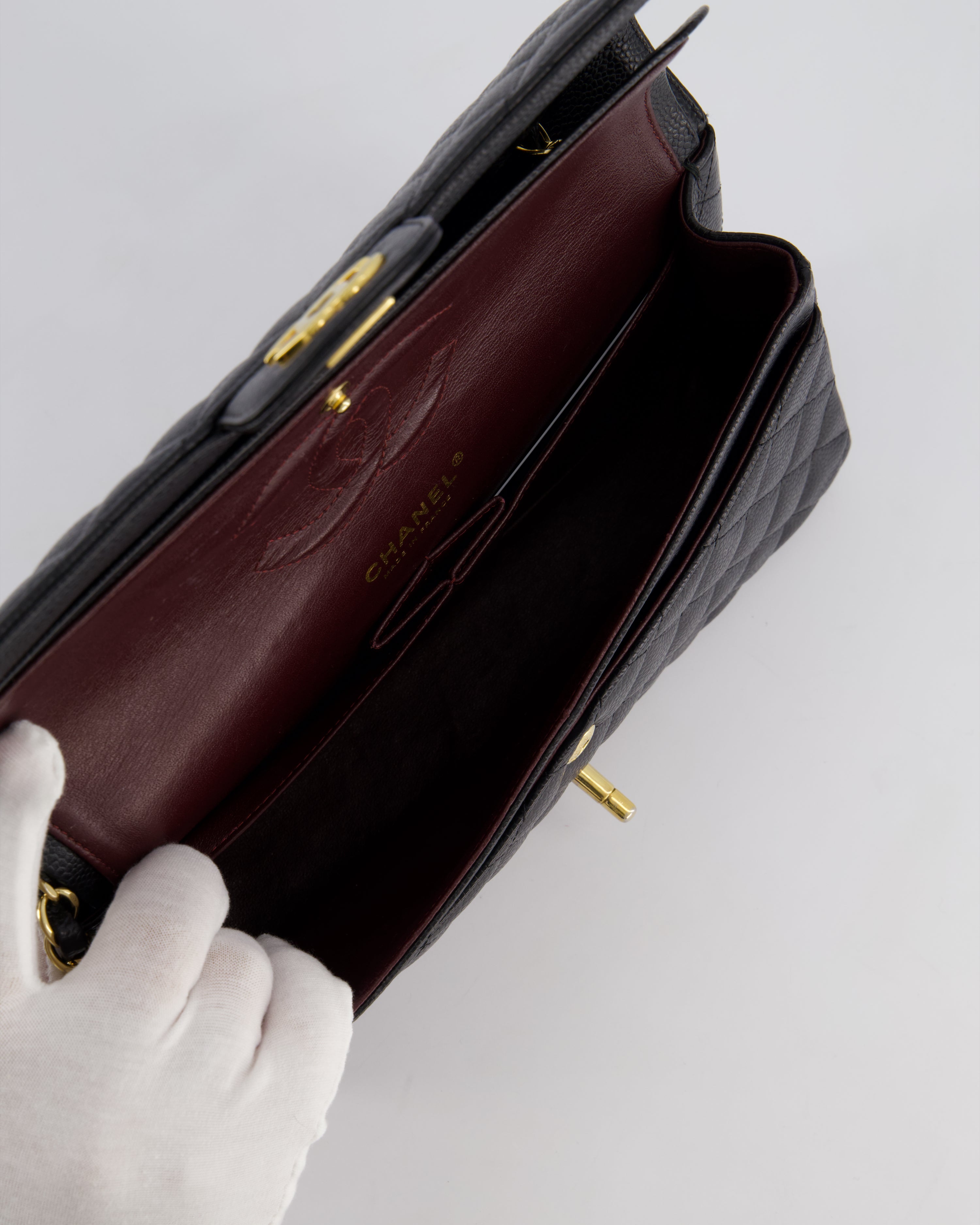 Chanel Black Medium Classic Double Flap Bag in Caviar Leather with Gold Hardware