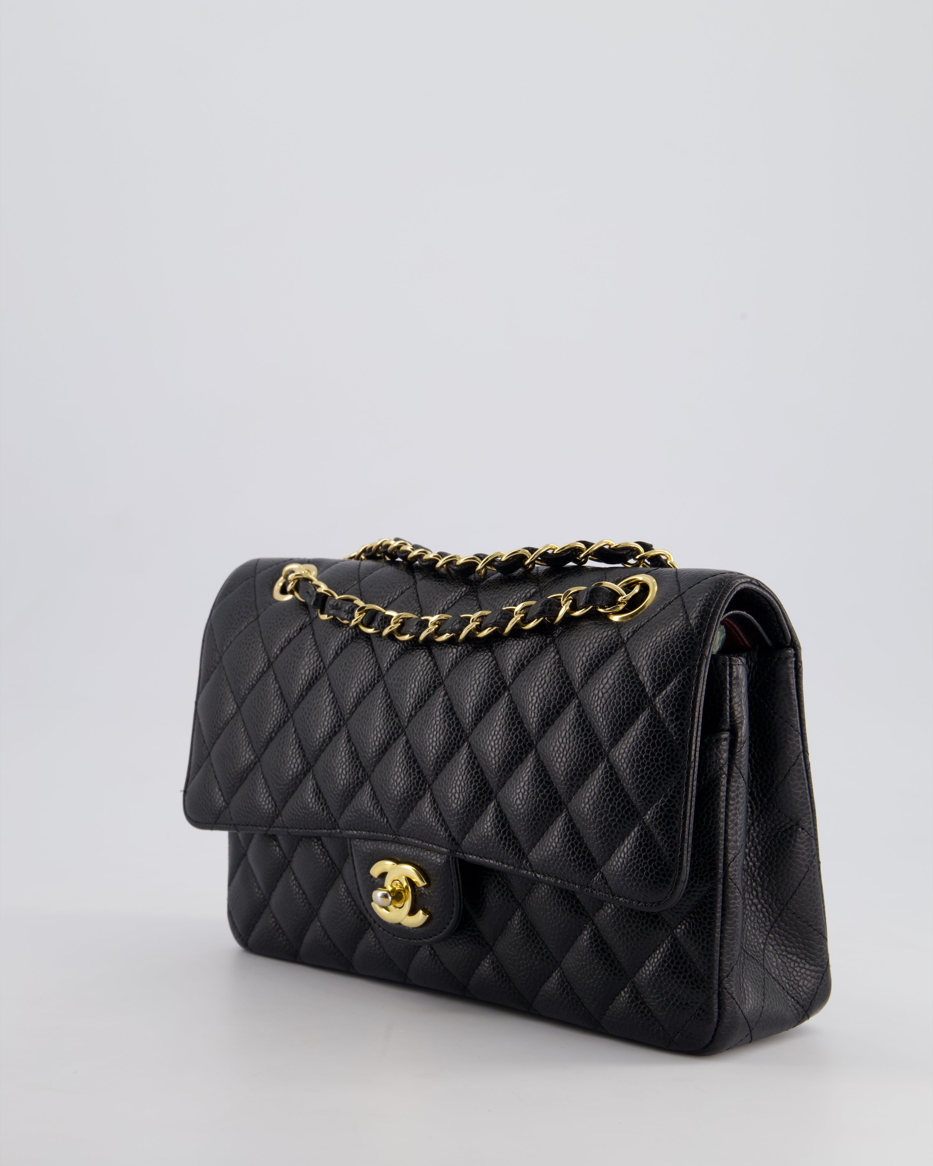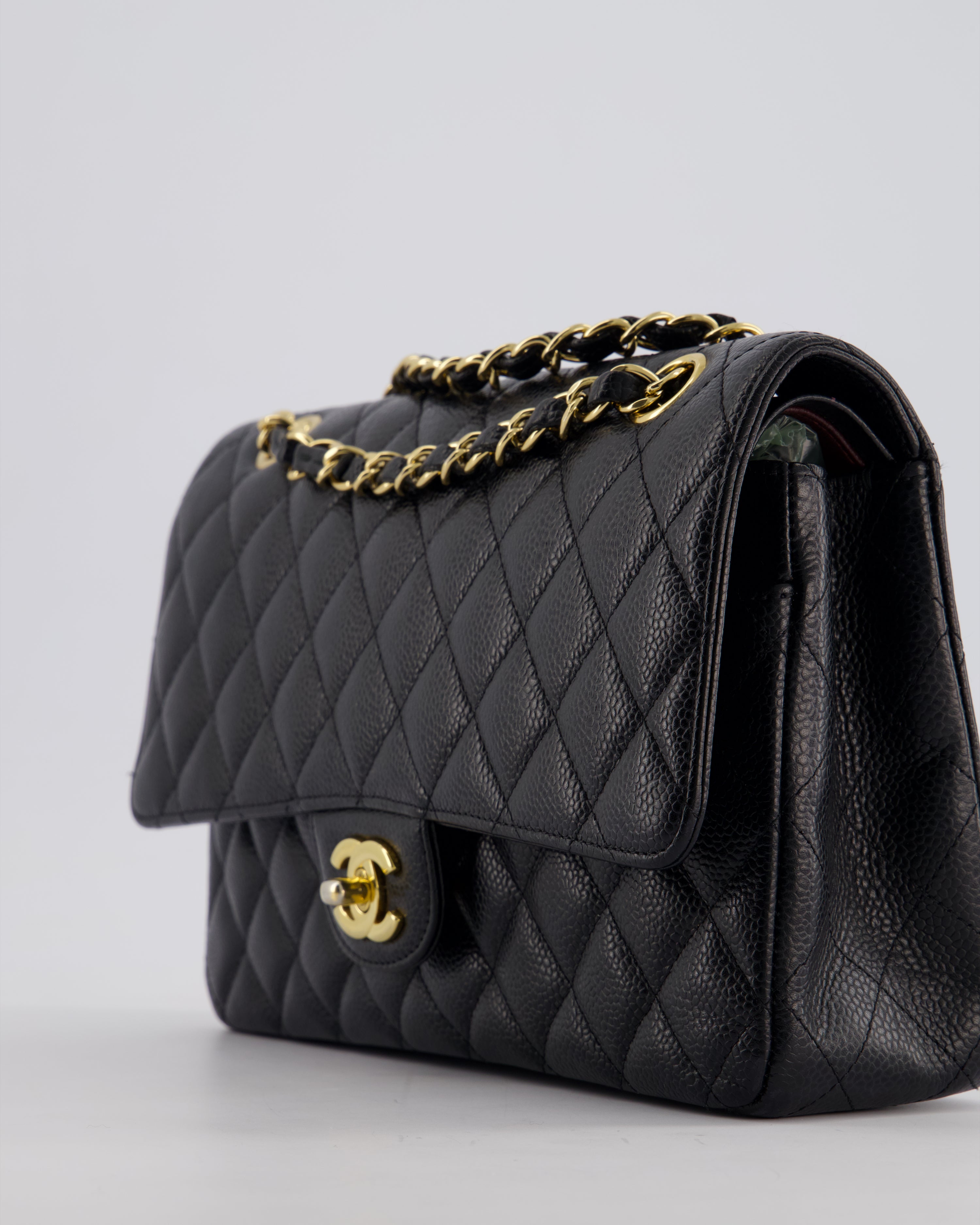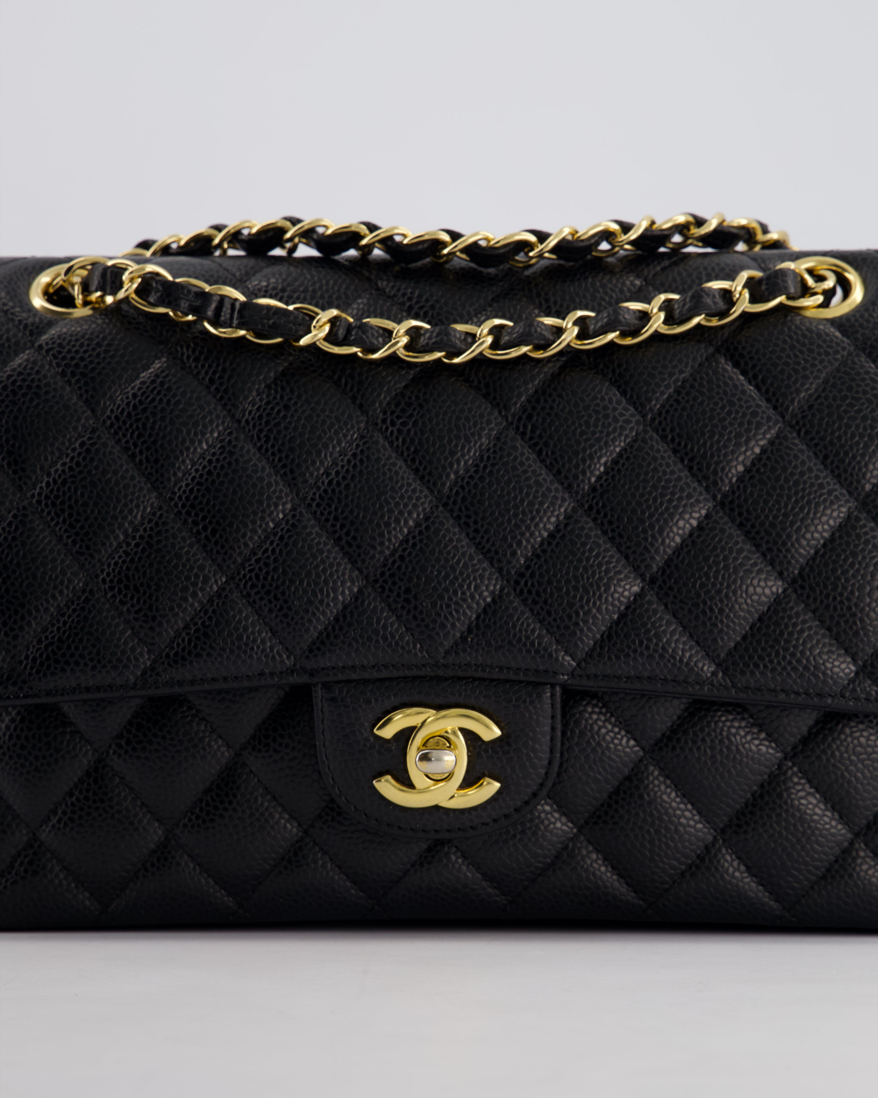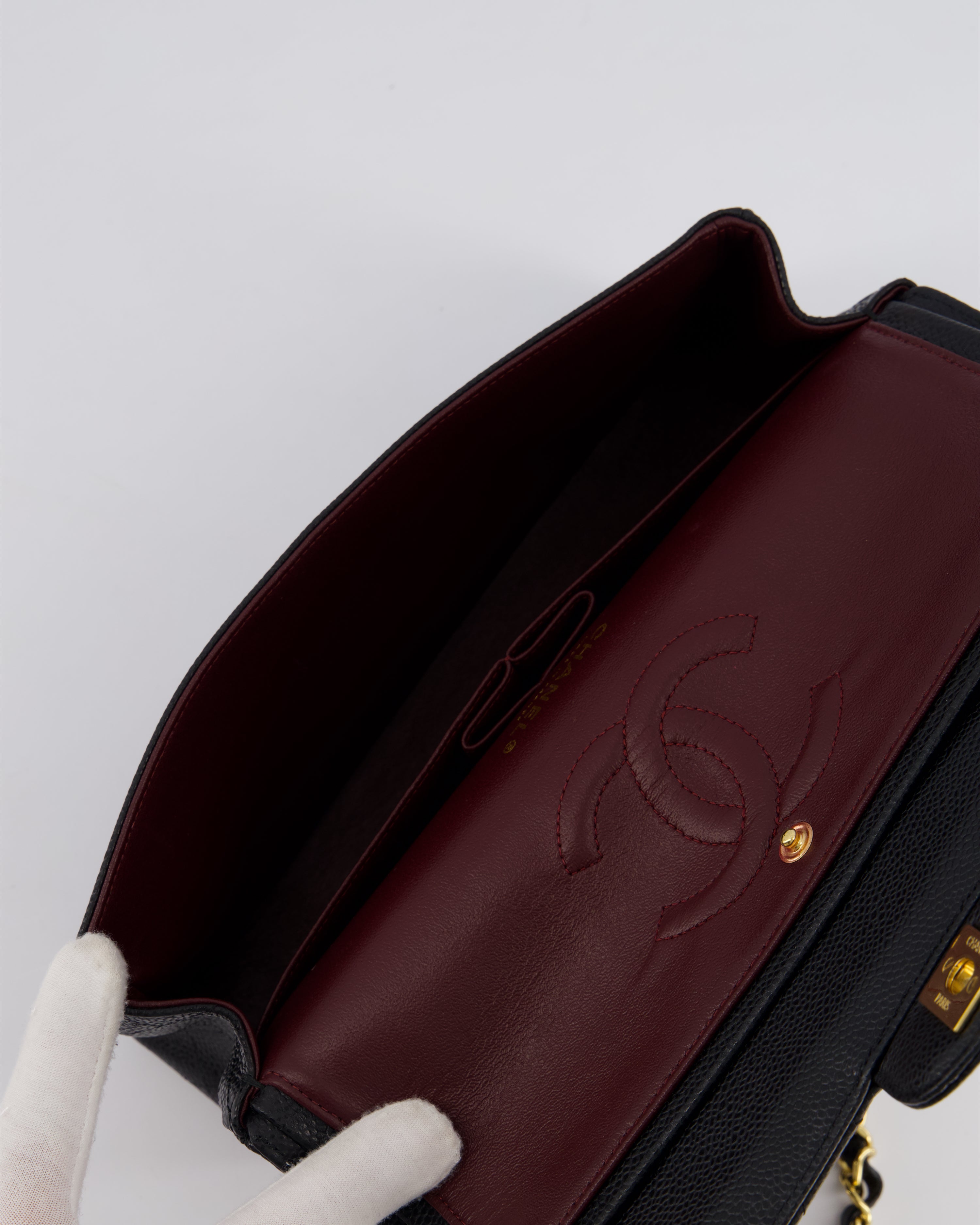 Chanel Black Medium Classic Double Flap Bag in Caviar Leather with Gold Hardware
