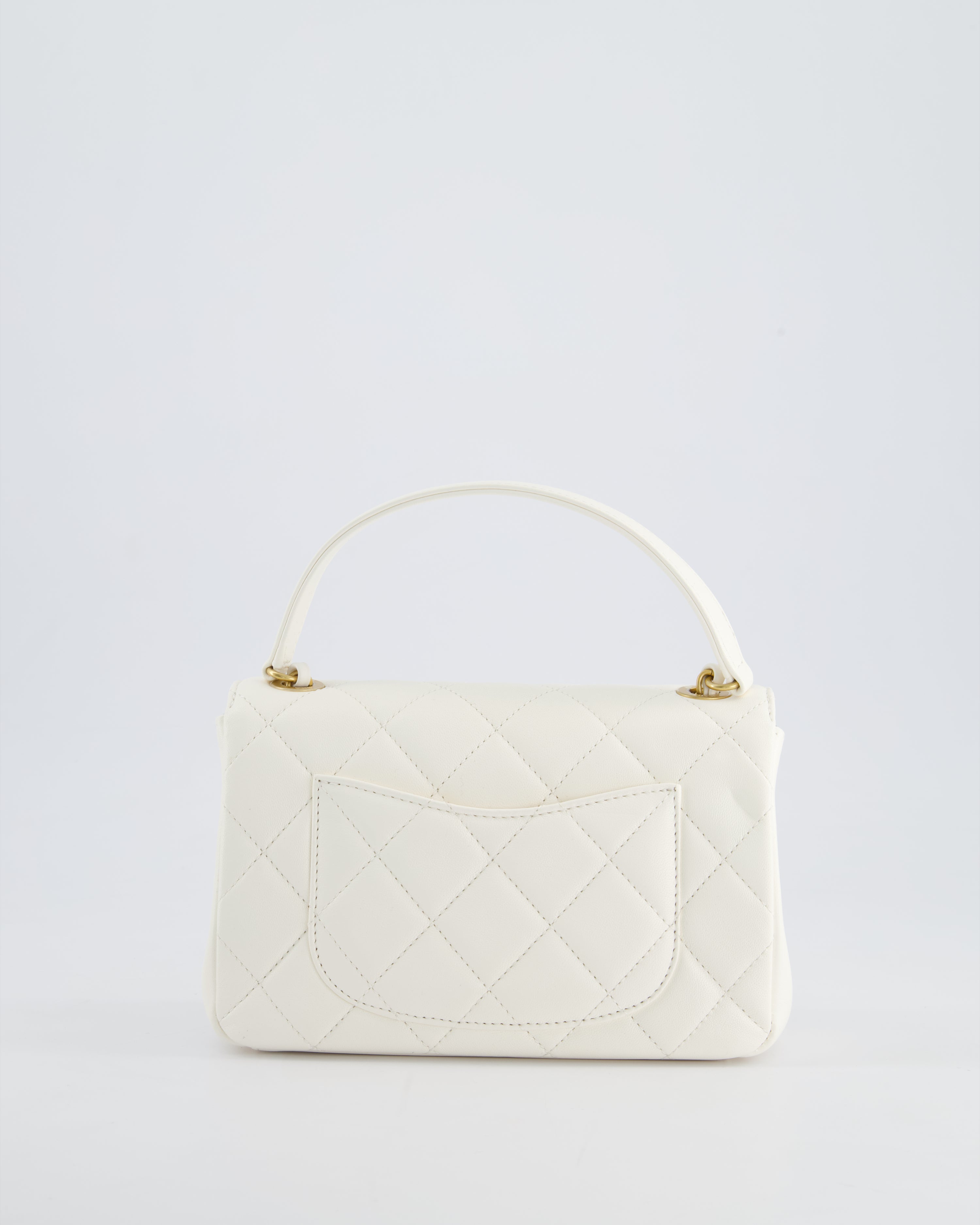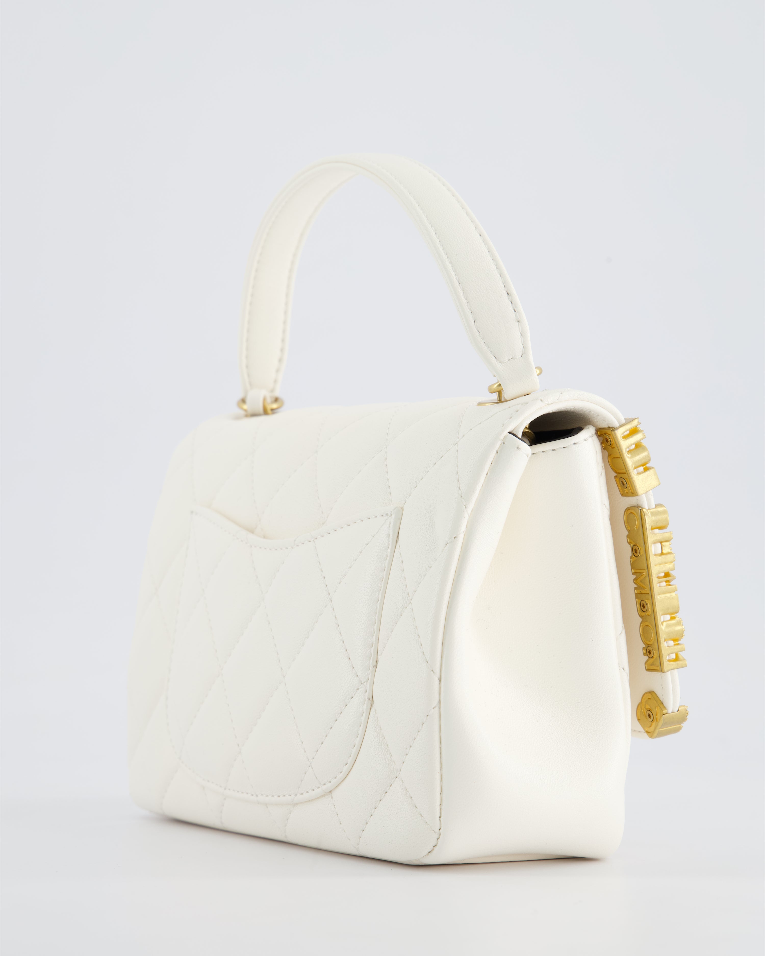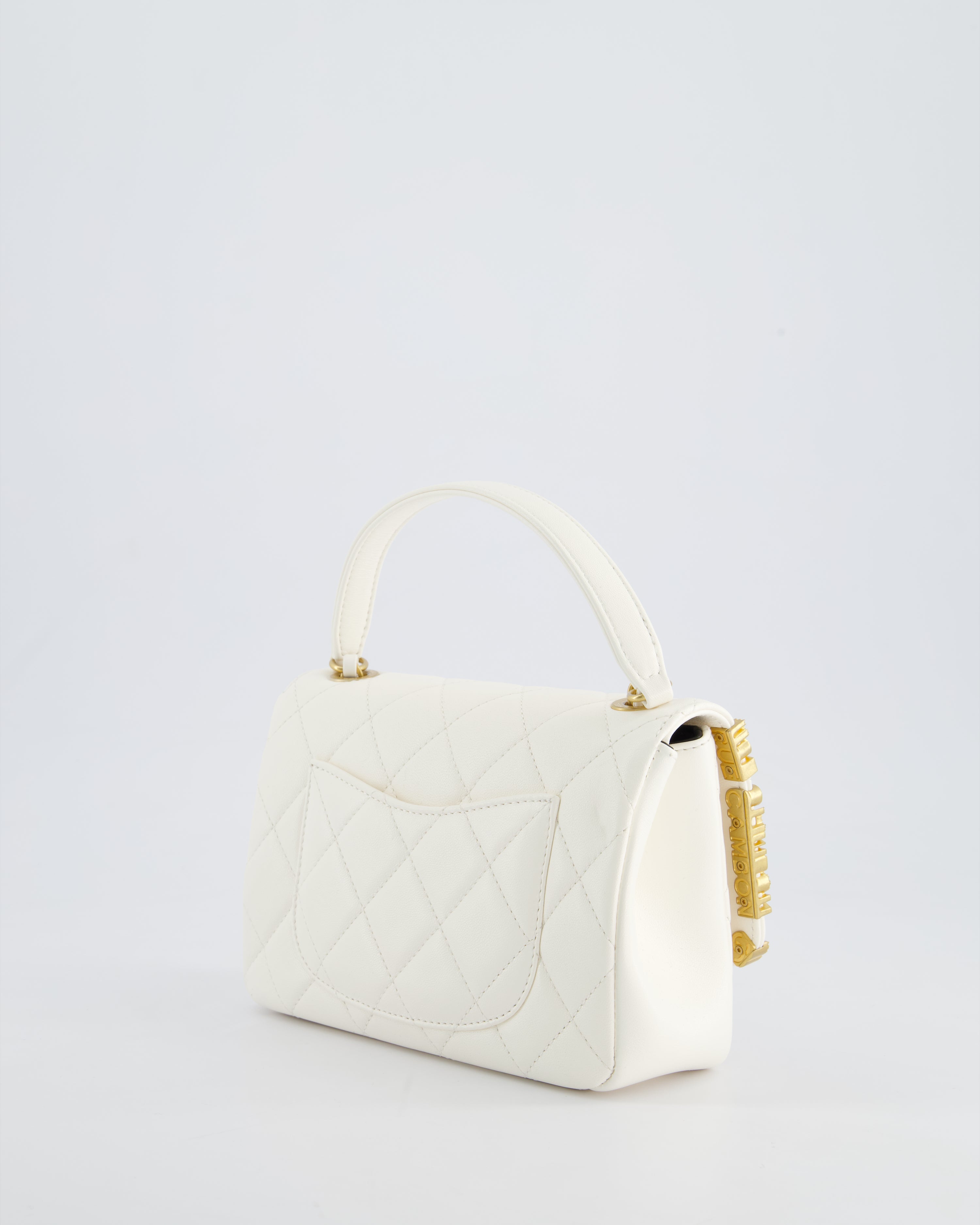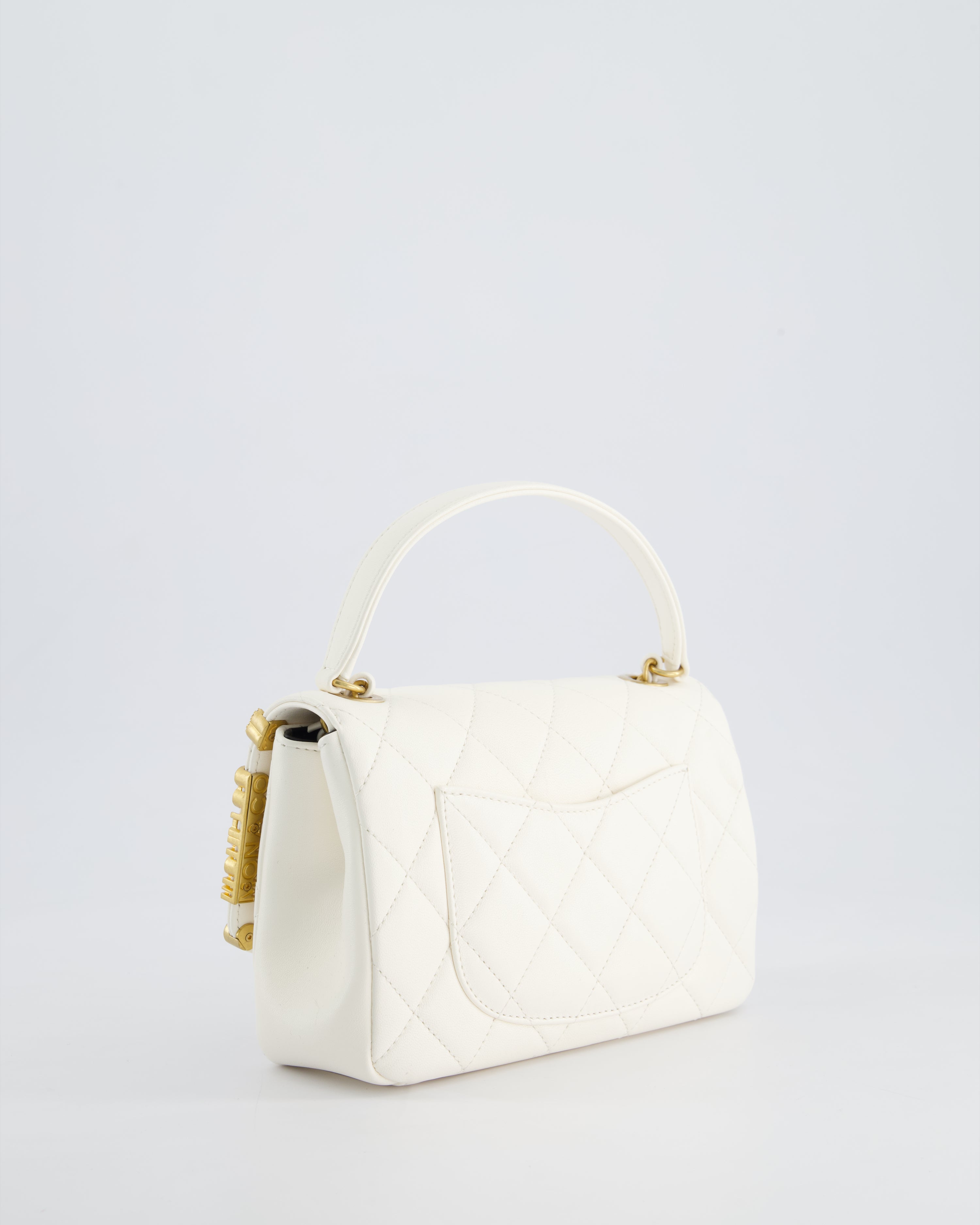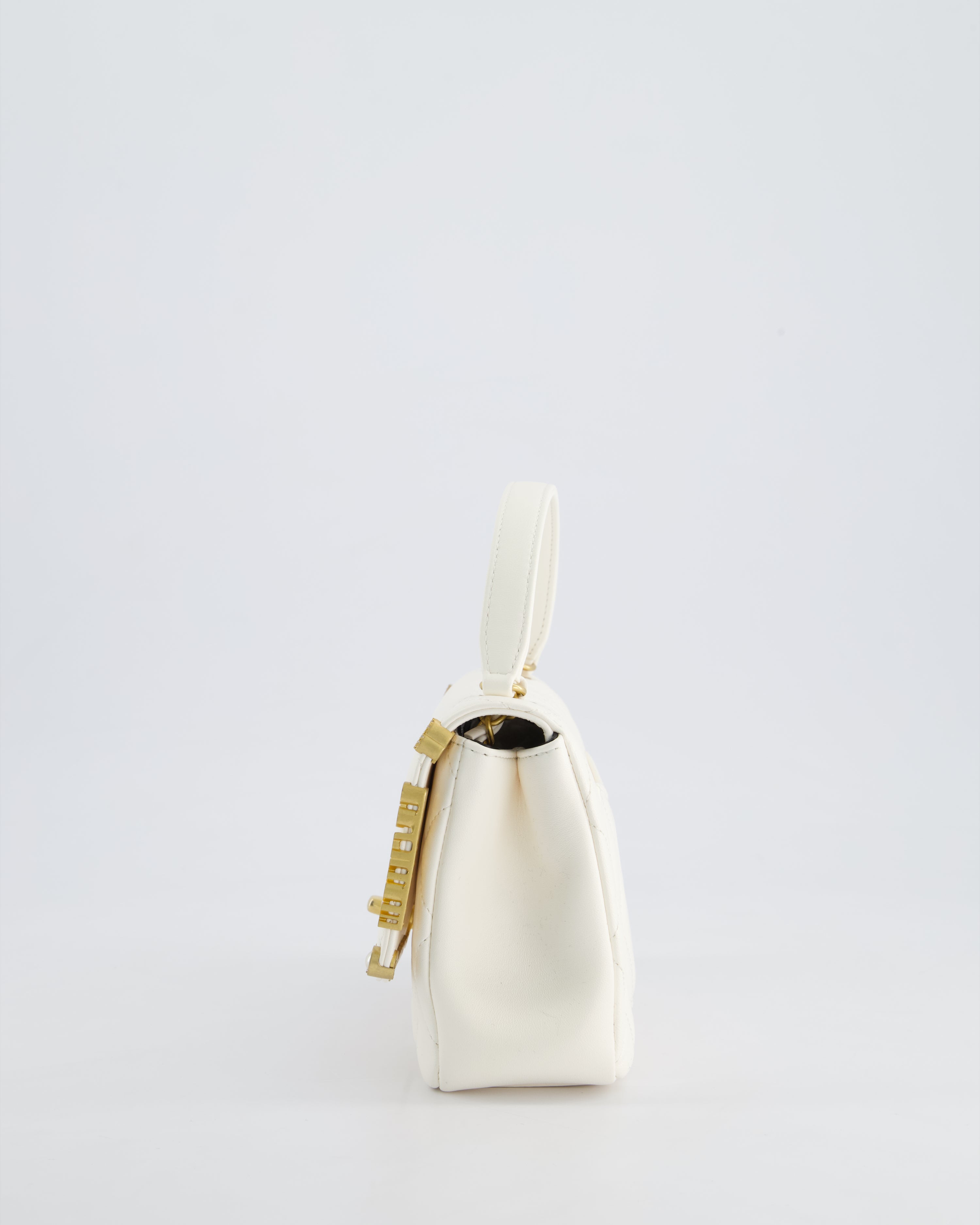 *LIMITED EDITION* Chanel White Paris Monaco Mini Single Flap Bag with Black Interior, Crystal Details and Brushed Gold Hardware