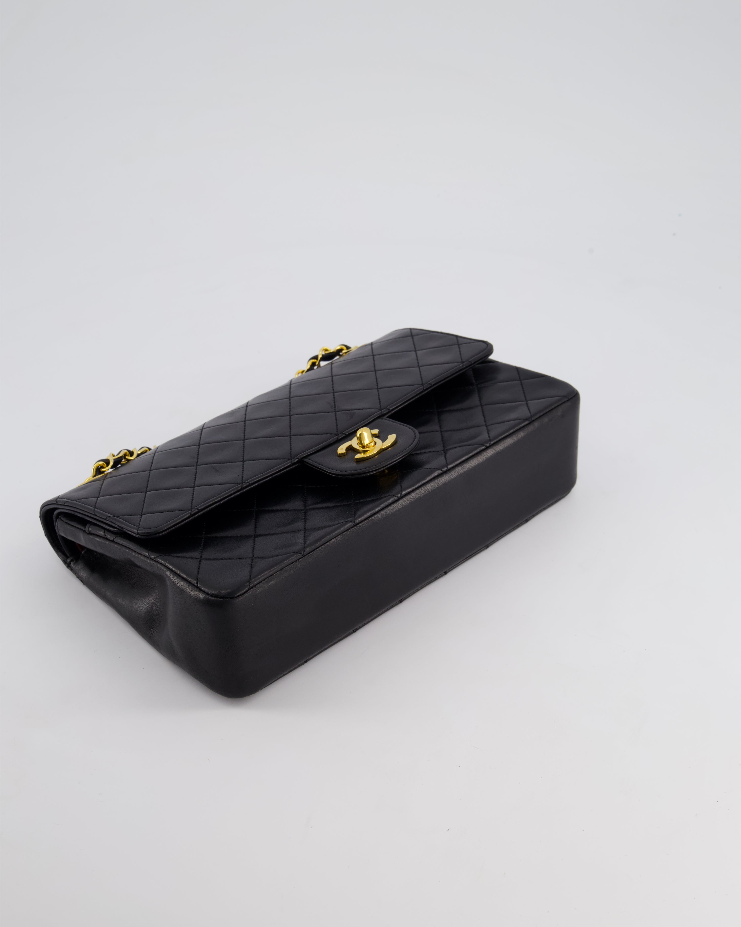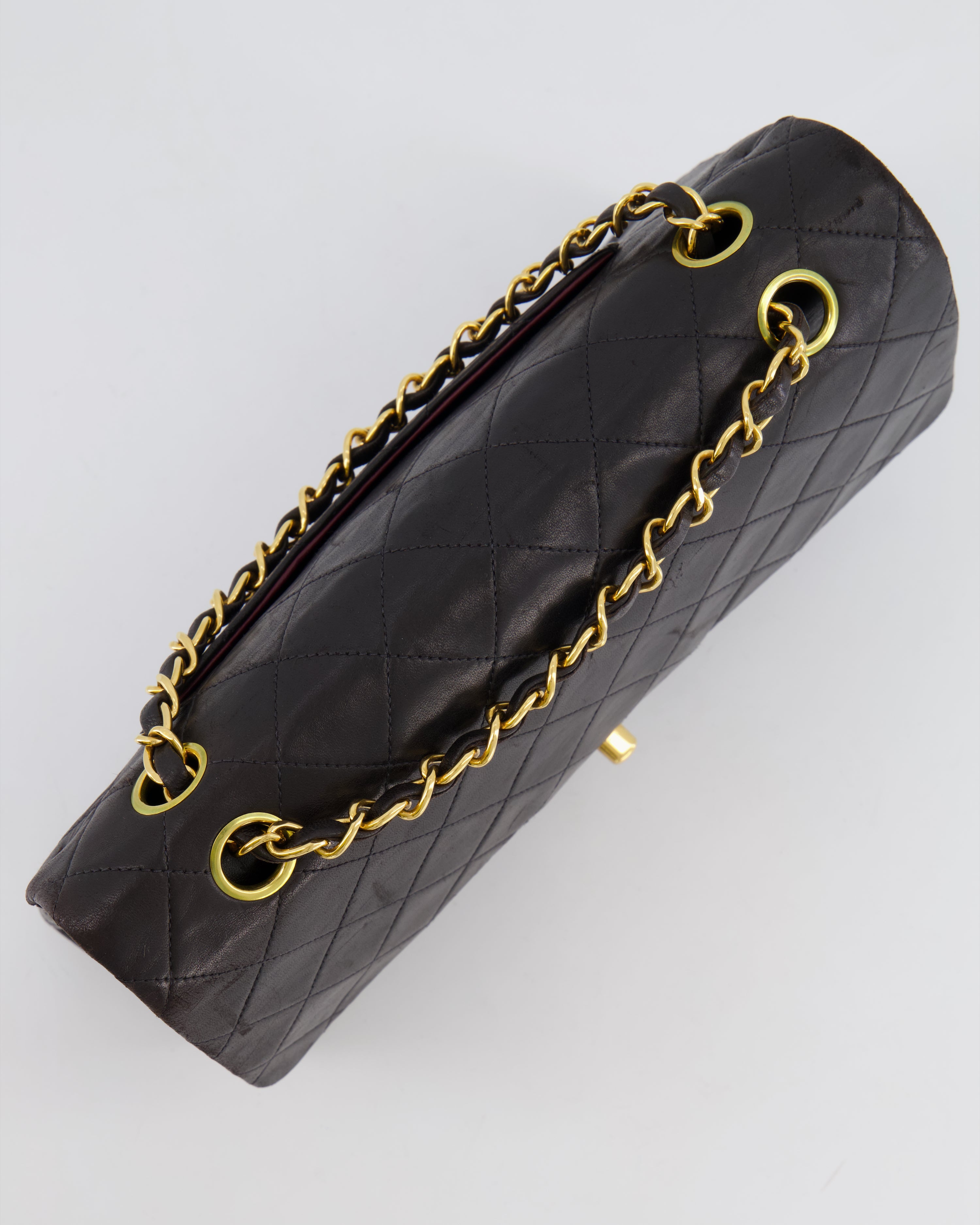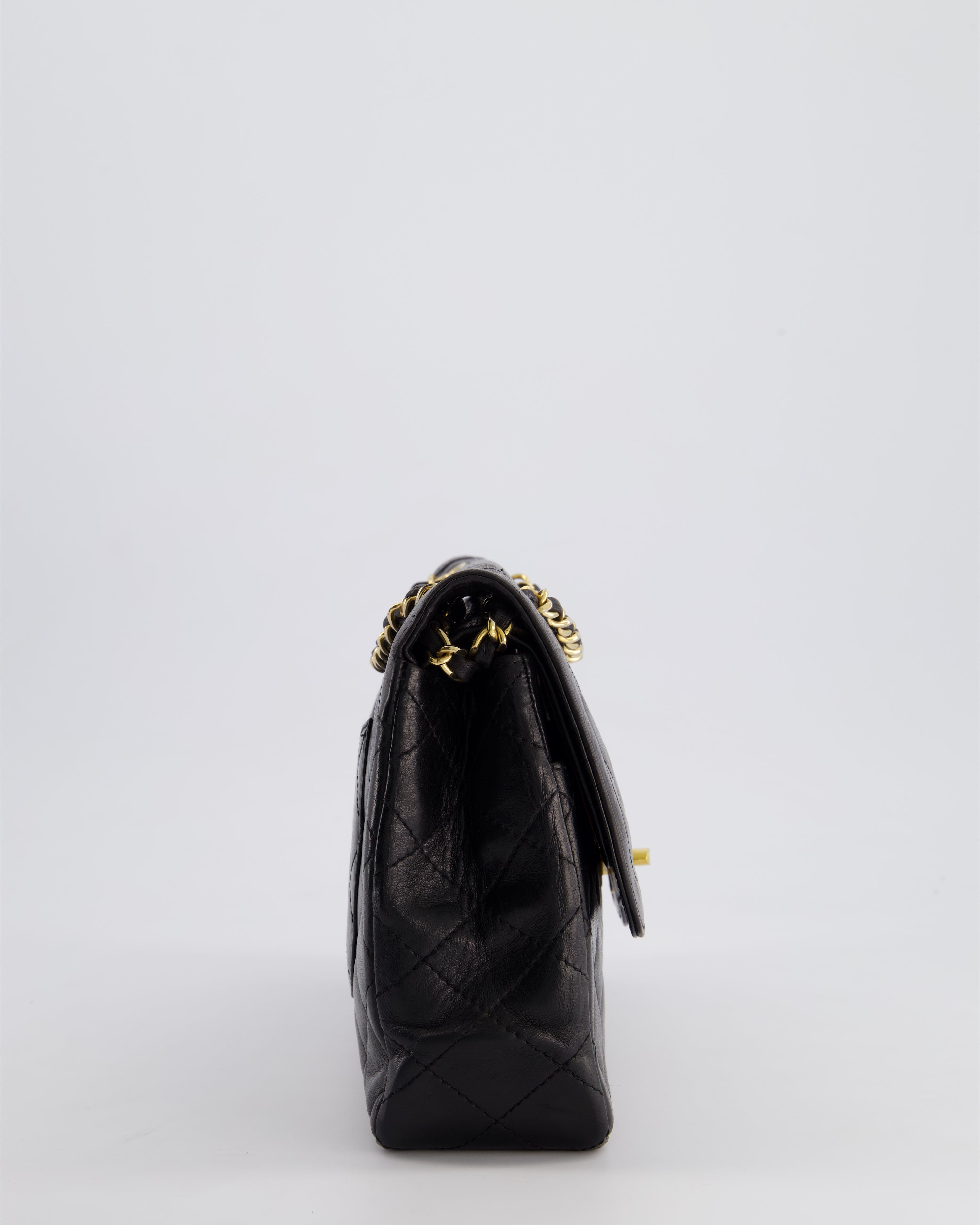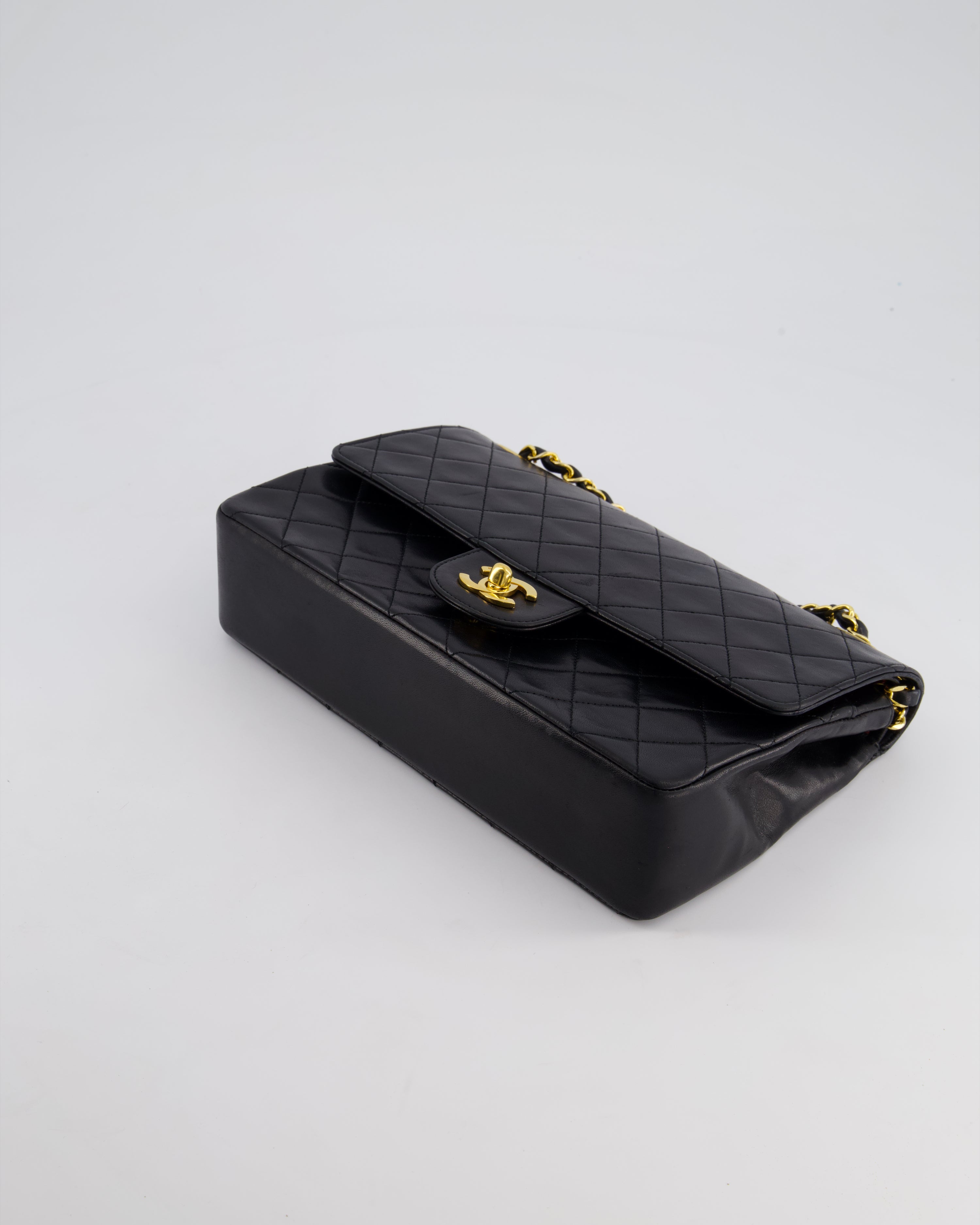 Chanel Vintage Black Medium Classic Double Flap Bag in Lambskin Leather with 24K Gold Hardware