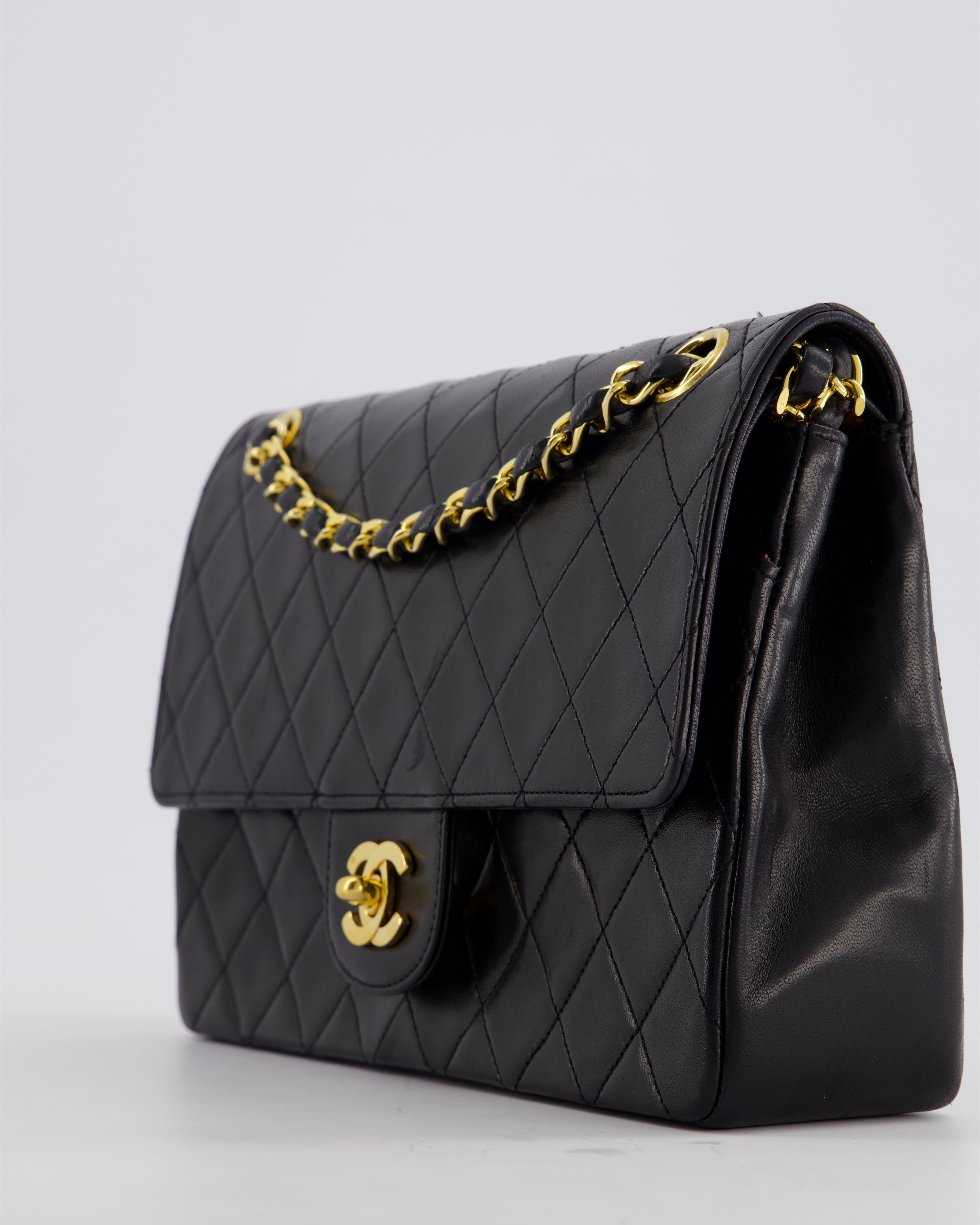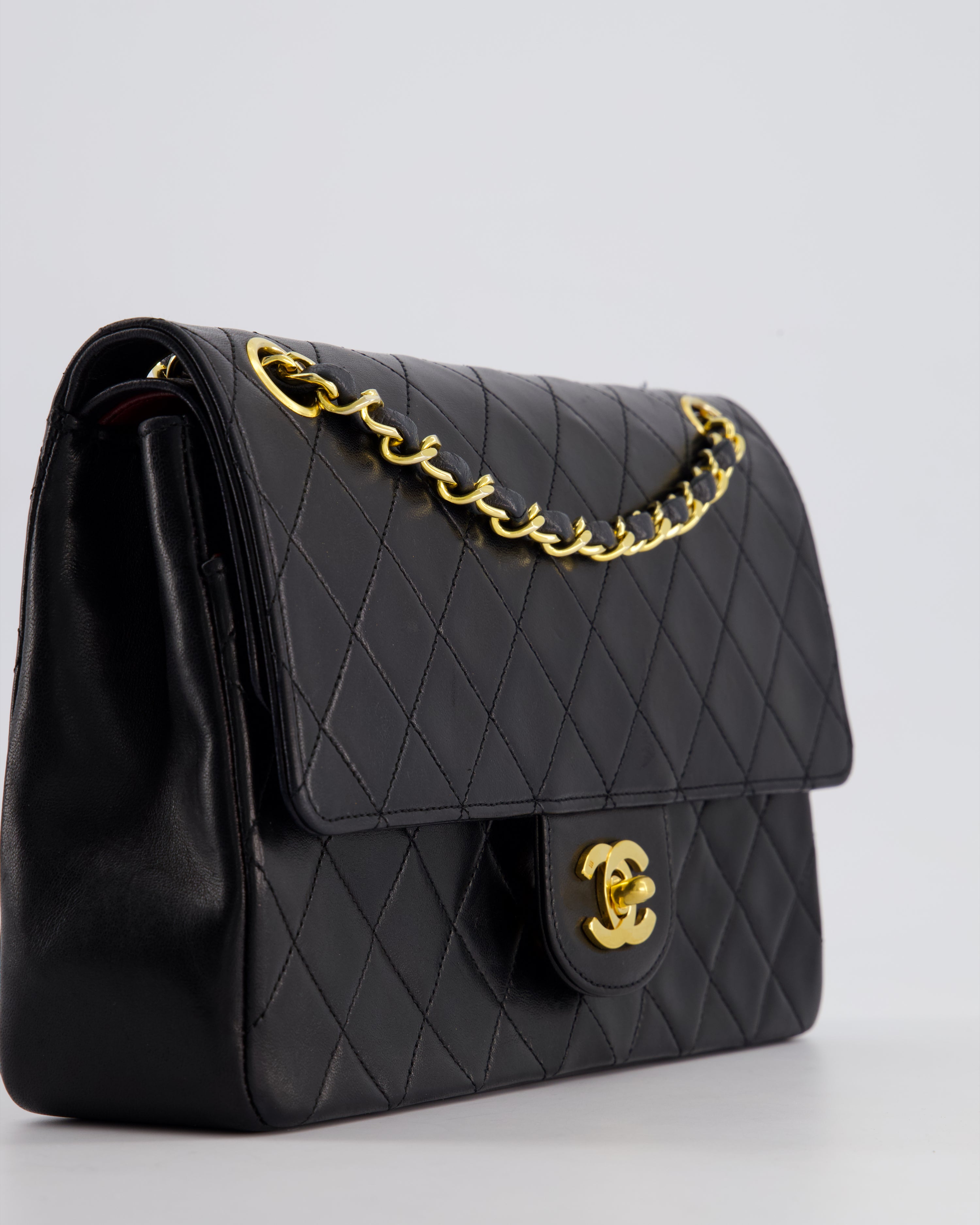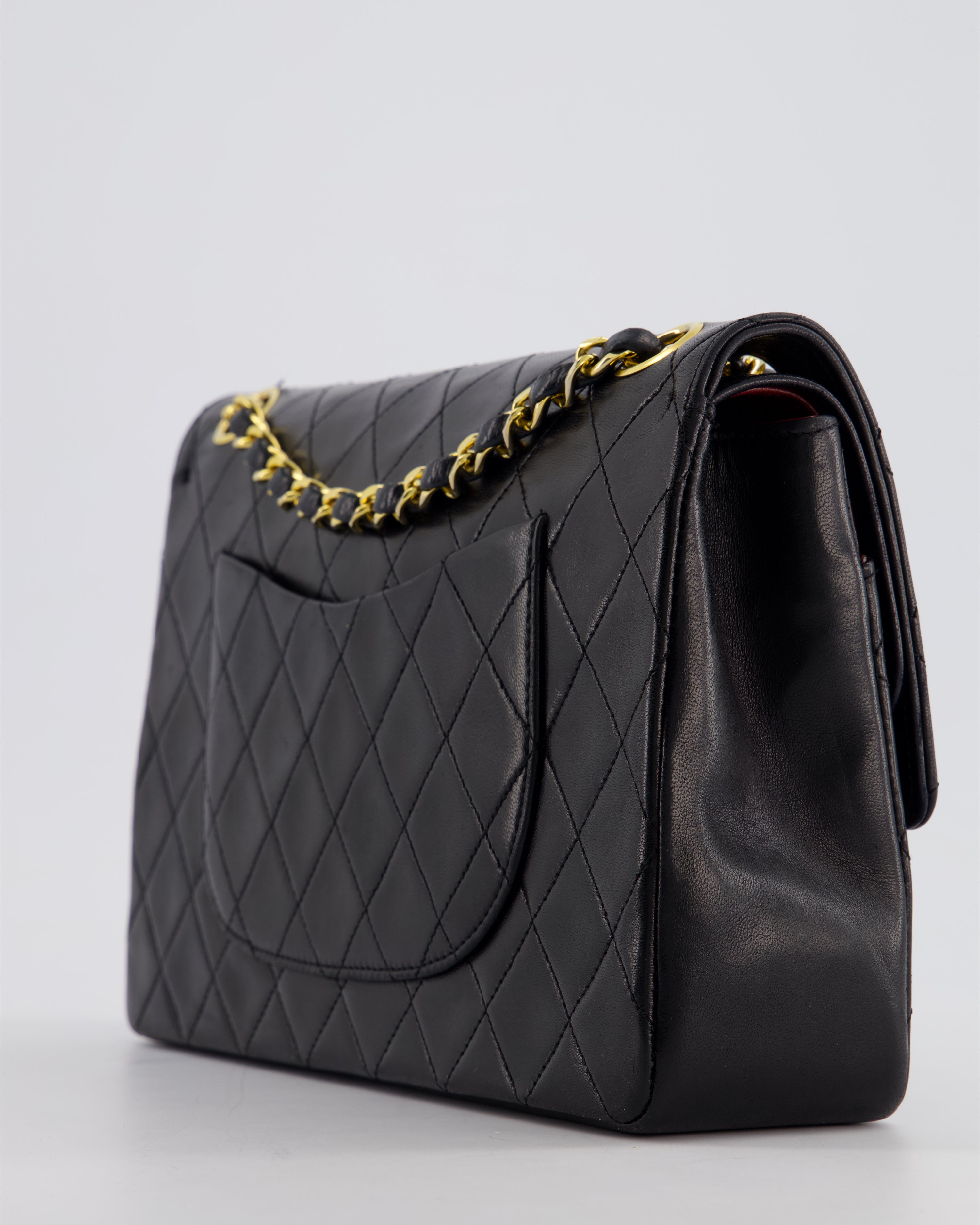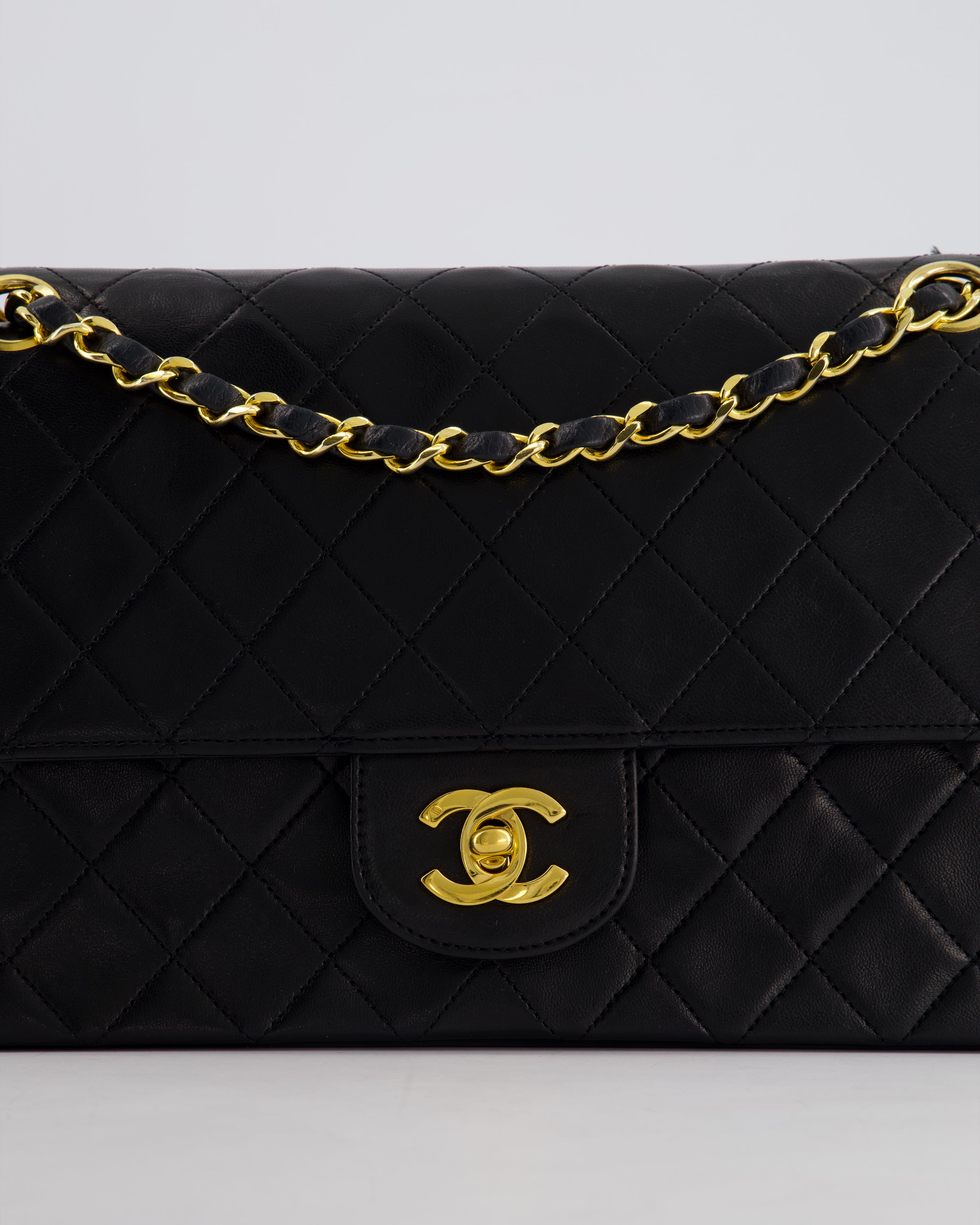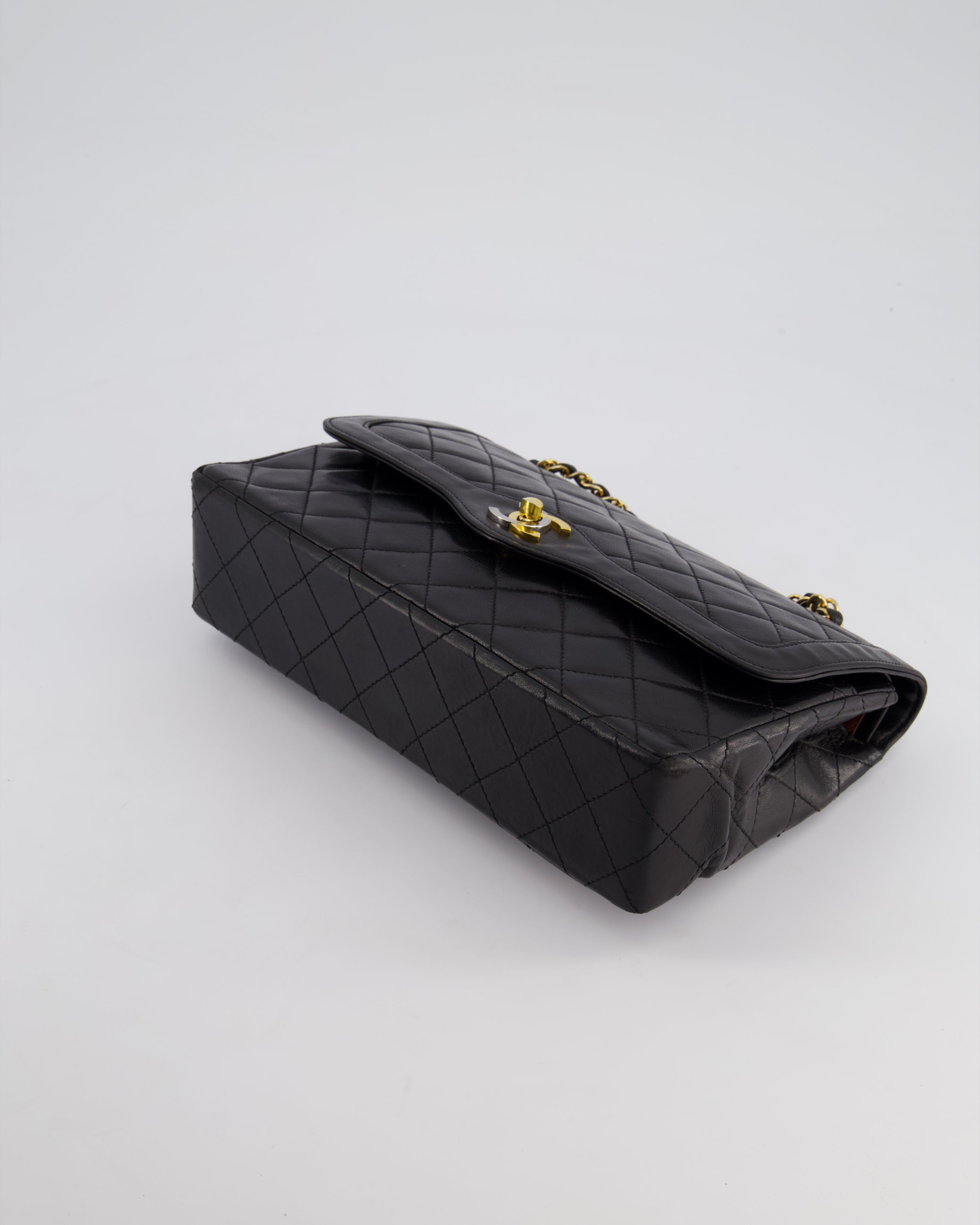 Chanel Vintage Black Medium Classic Double Flap Bag in Lambskin Leather with 24K Gold Hardware