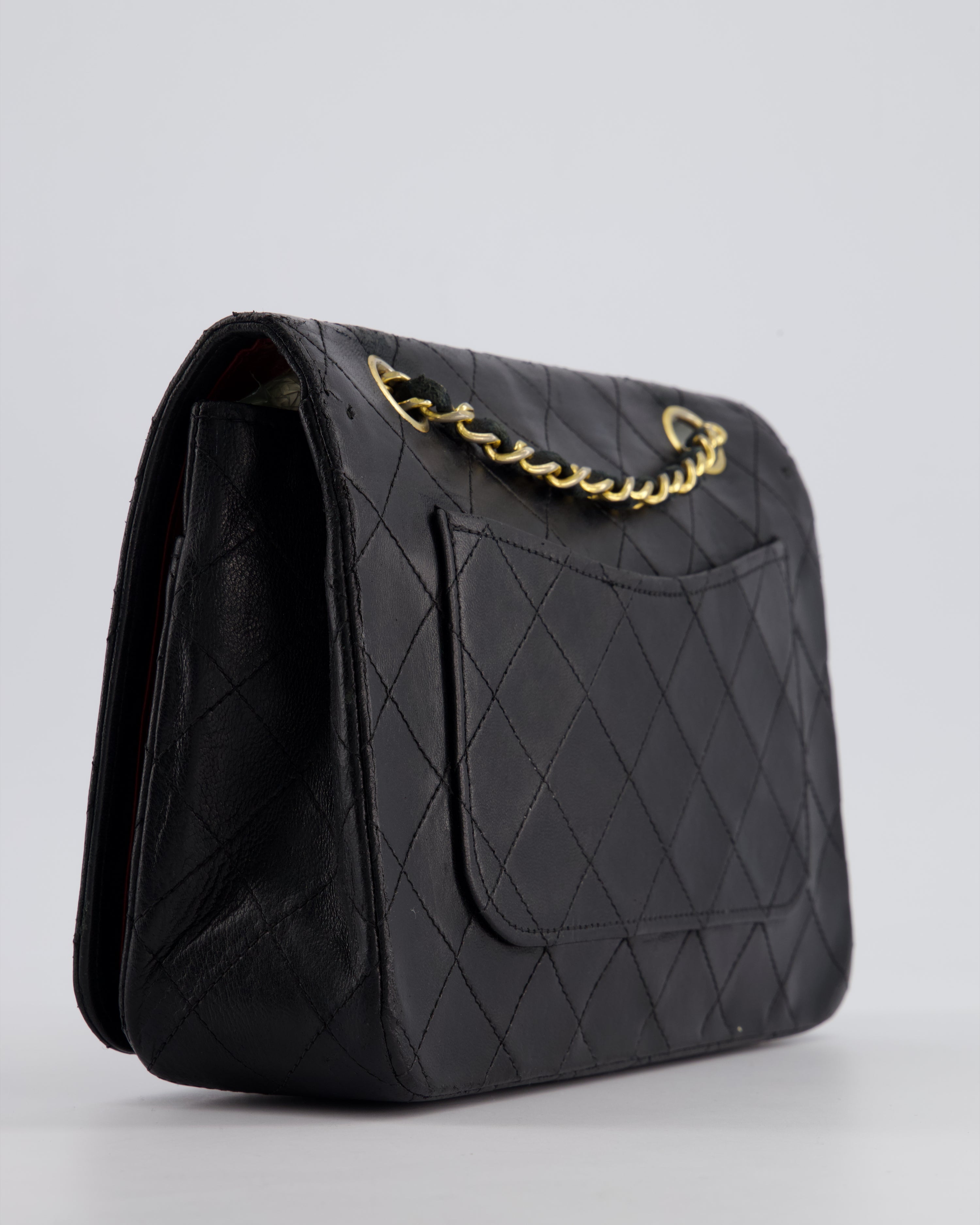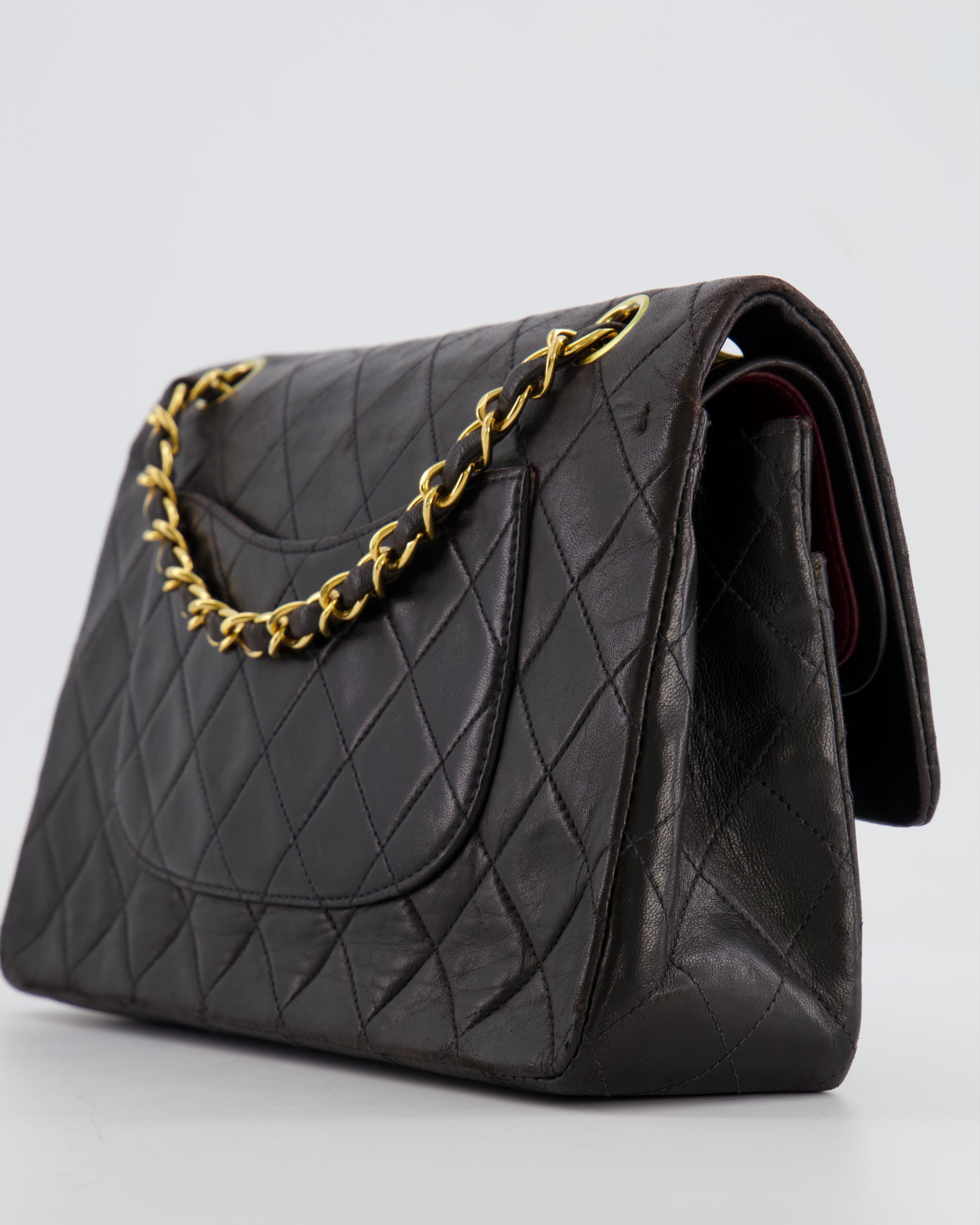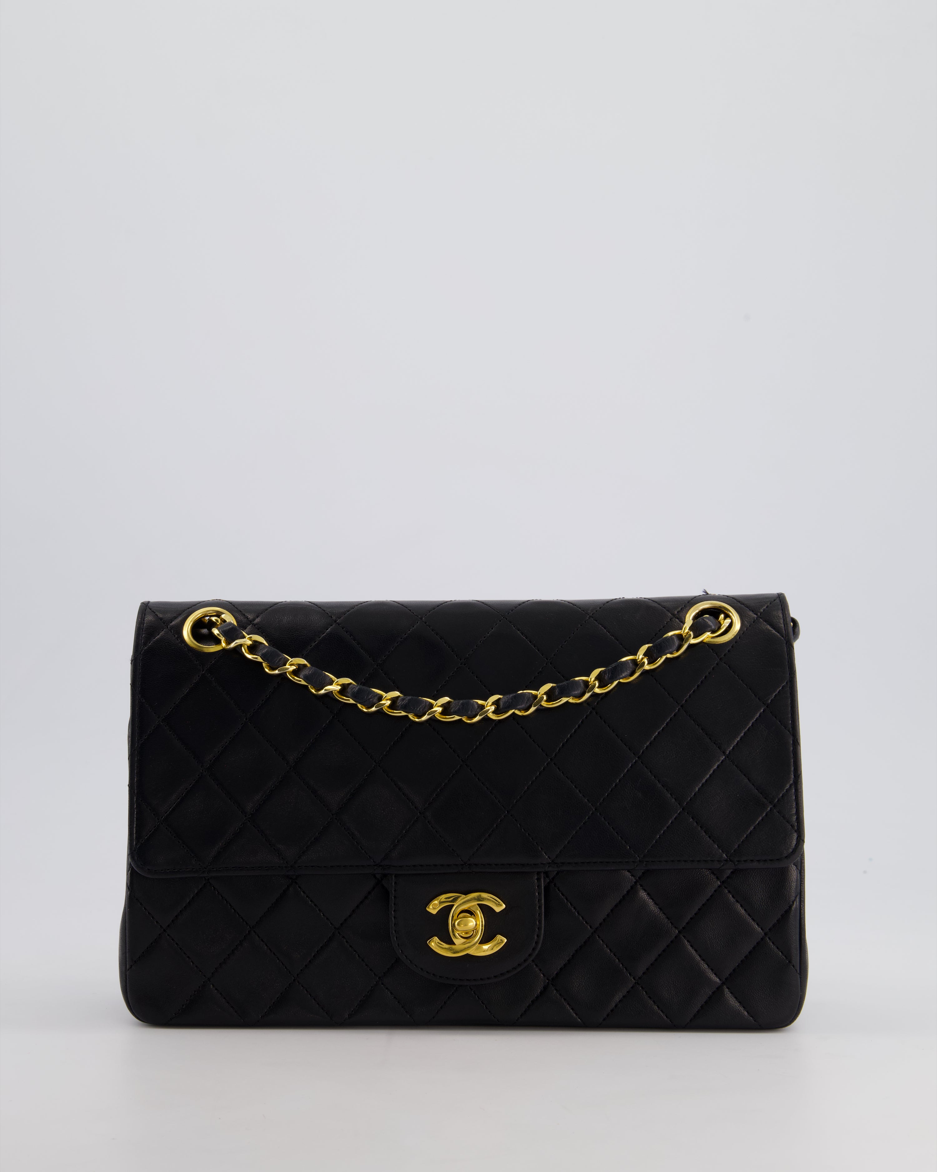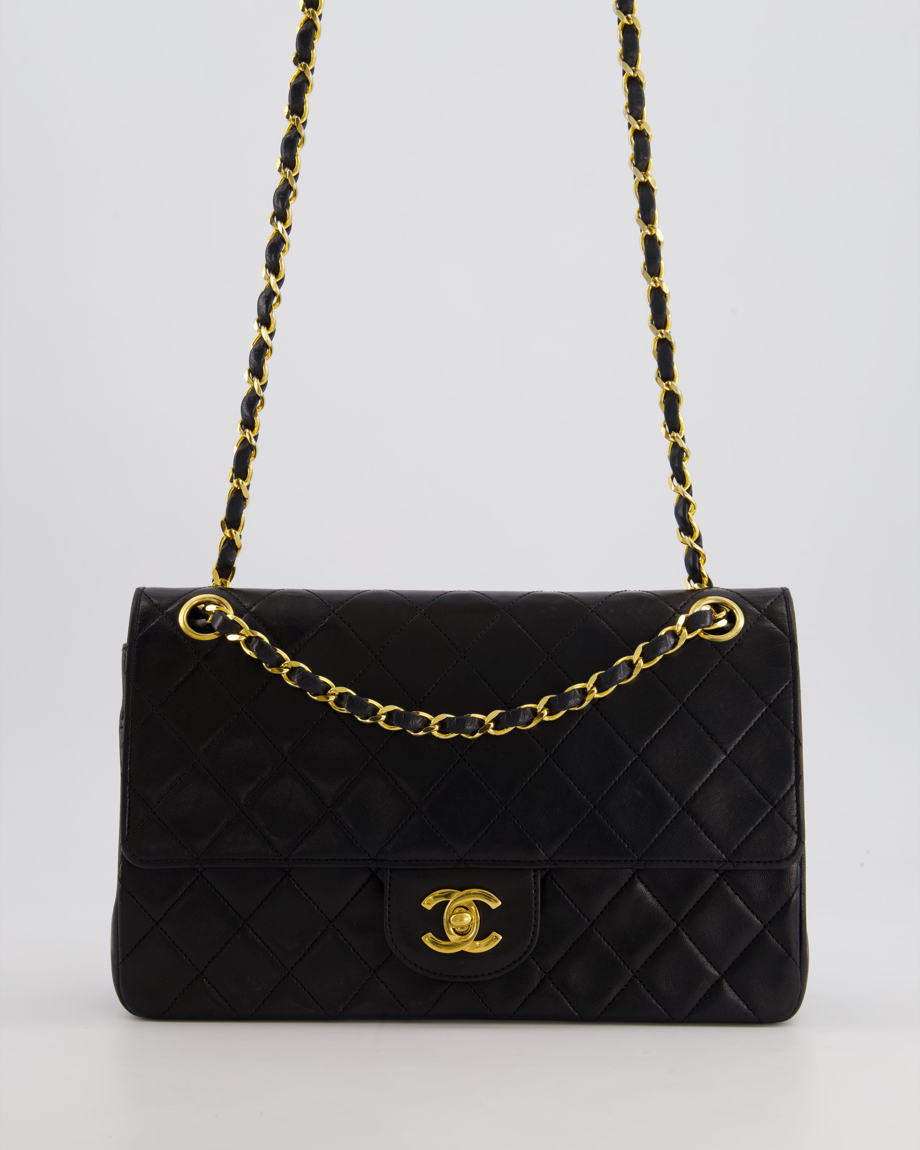 Chanel Vintage Black Medium Classic Double Flap Bag in Lambskin Leather with 24K Gold Hardware