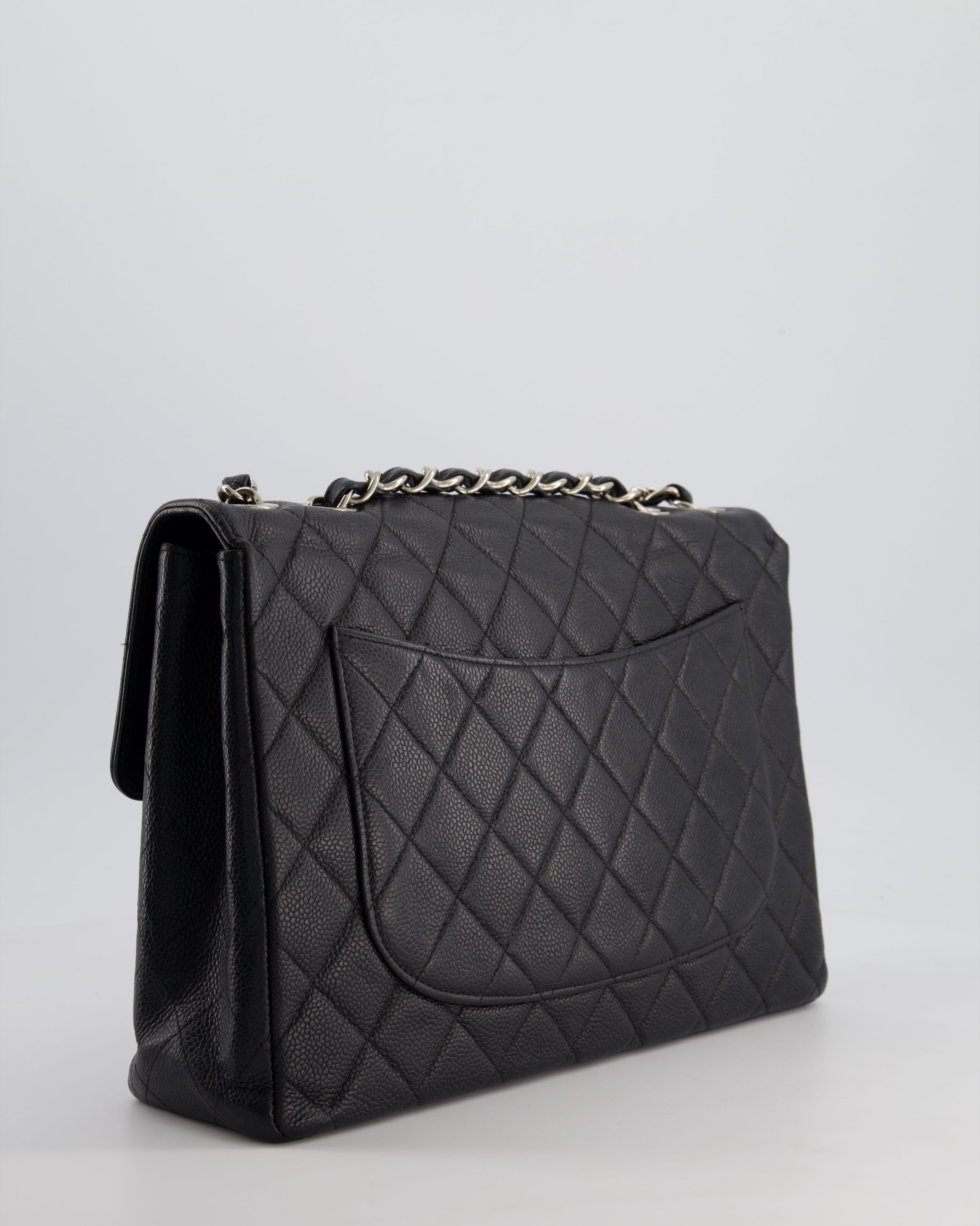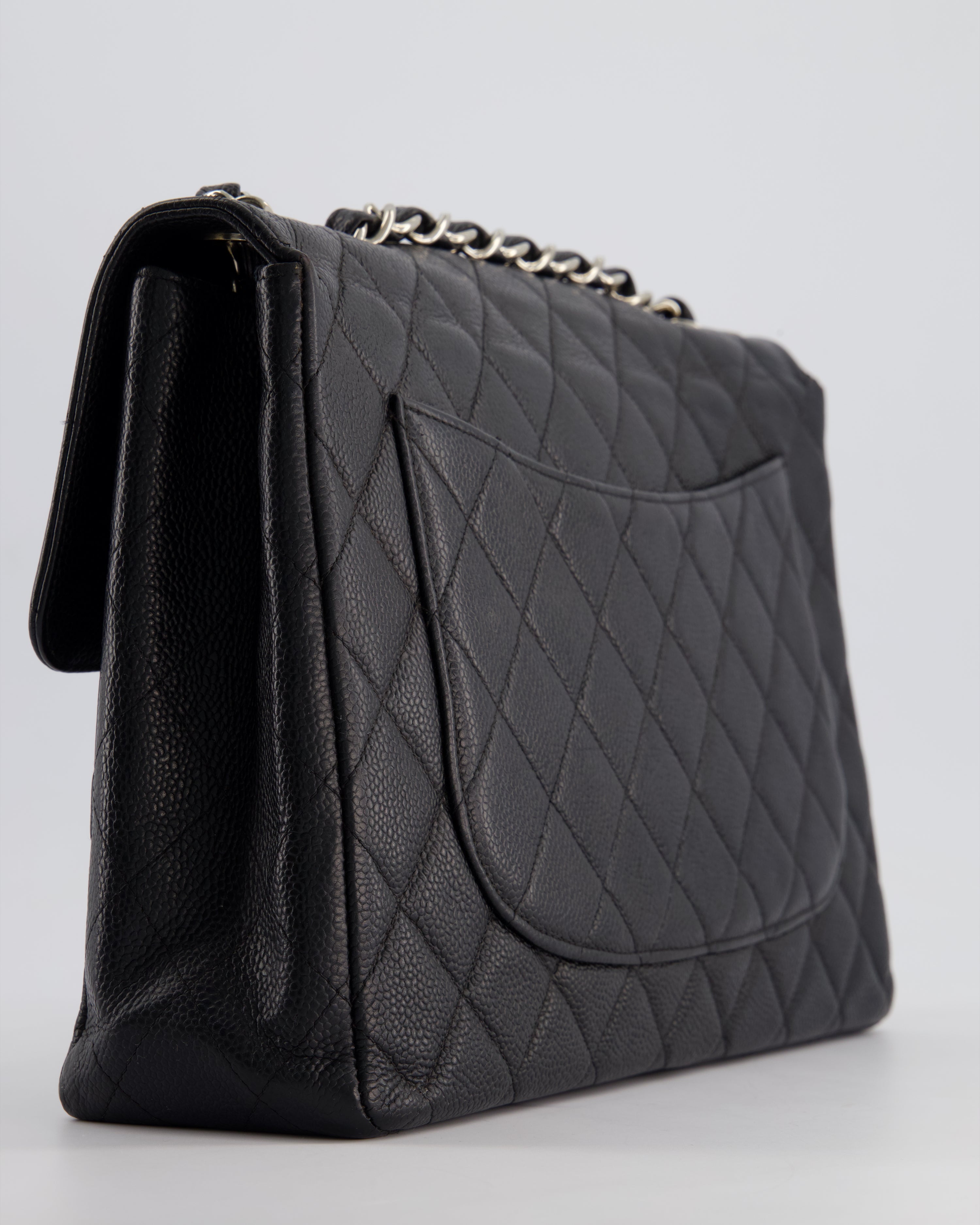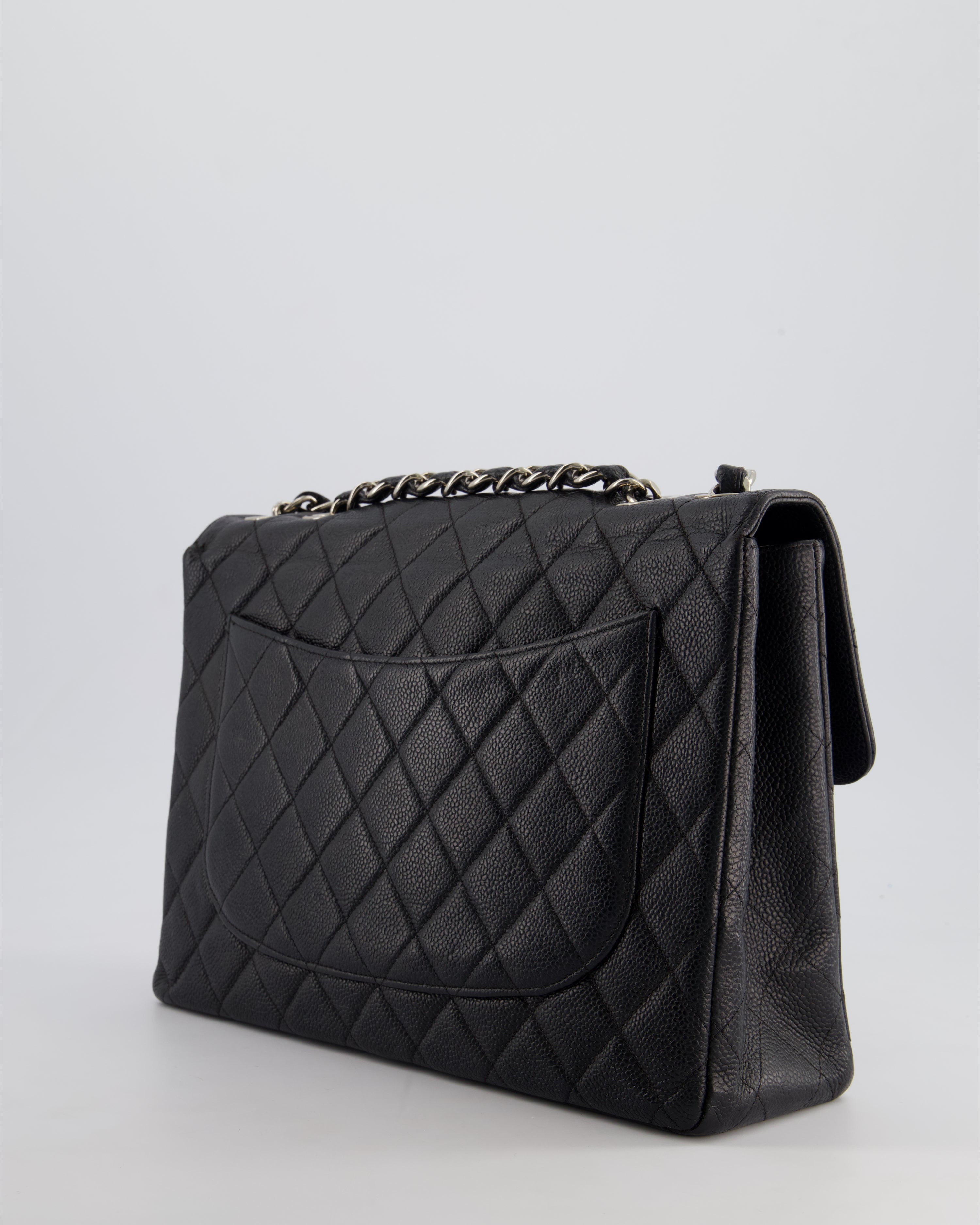 Chanel Black Vintage Quilted Caviar Square Jumbo Classic Single Flap Bag with Silver Hardware