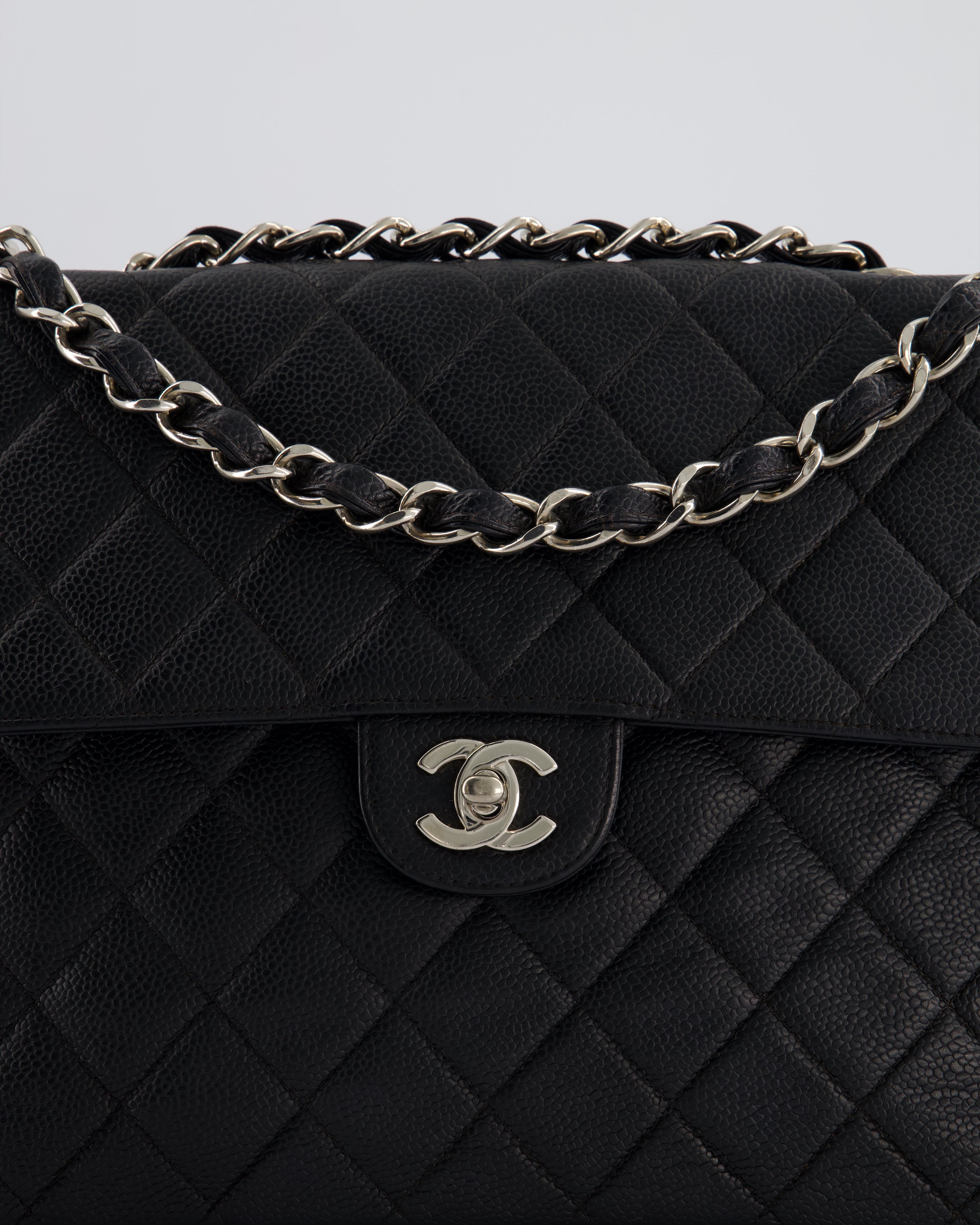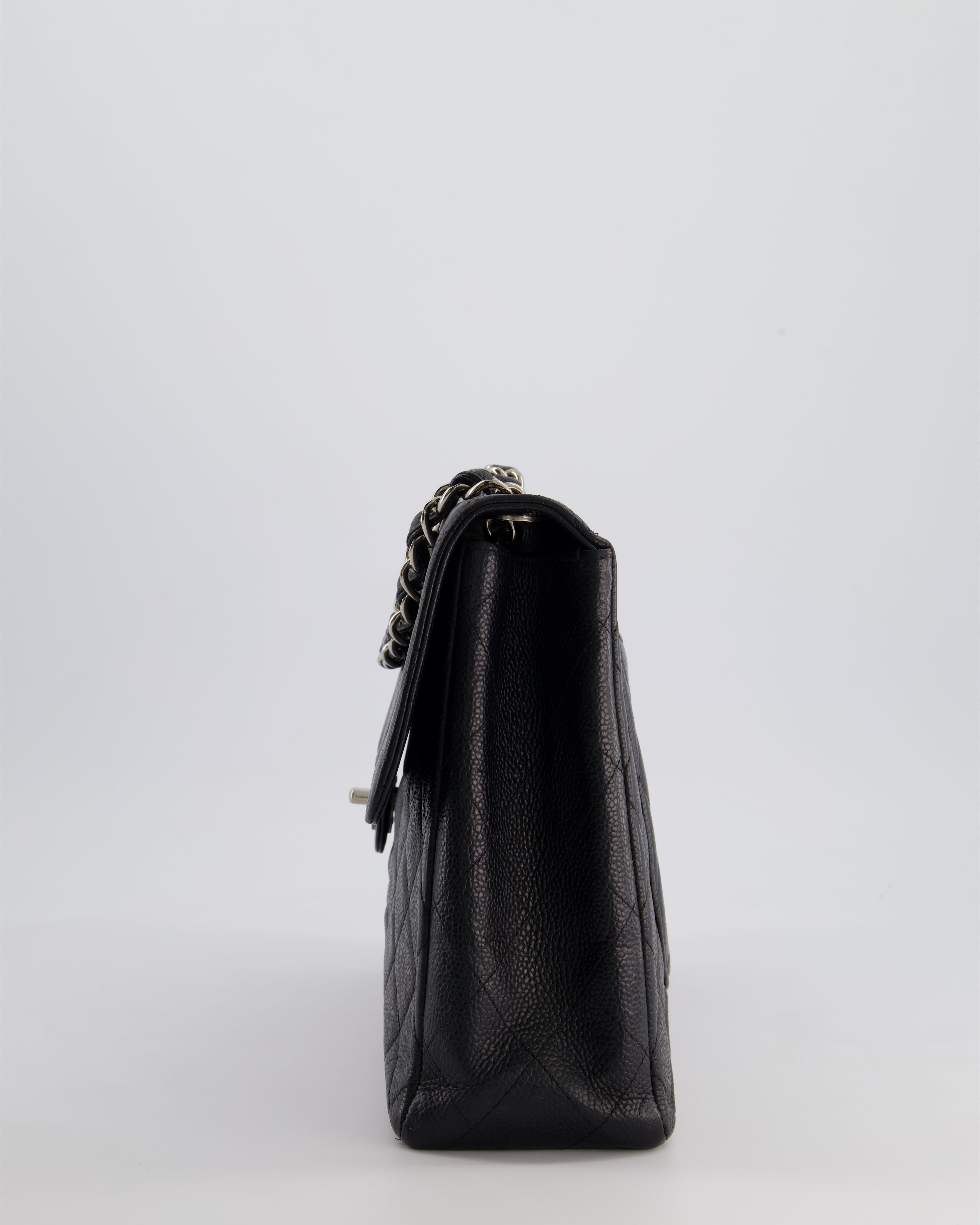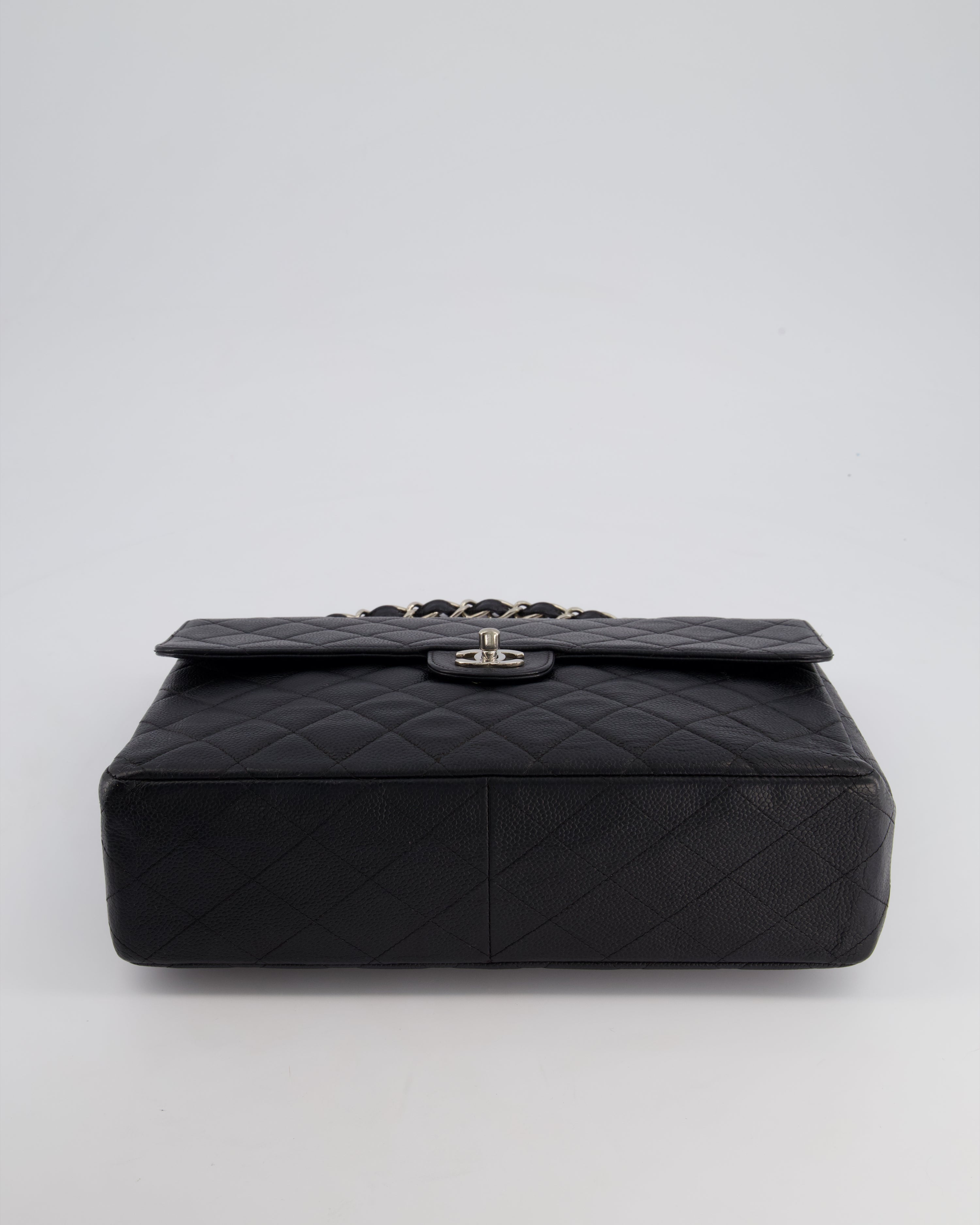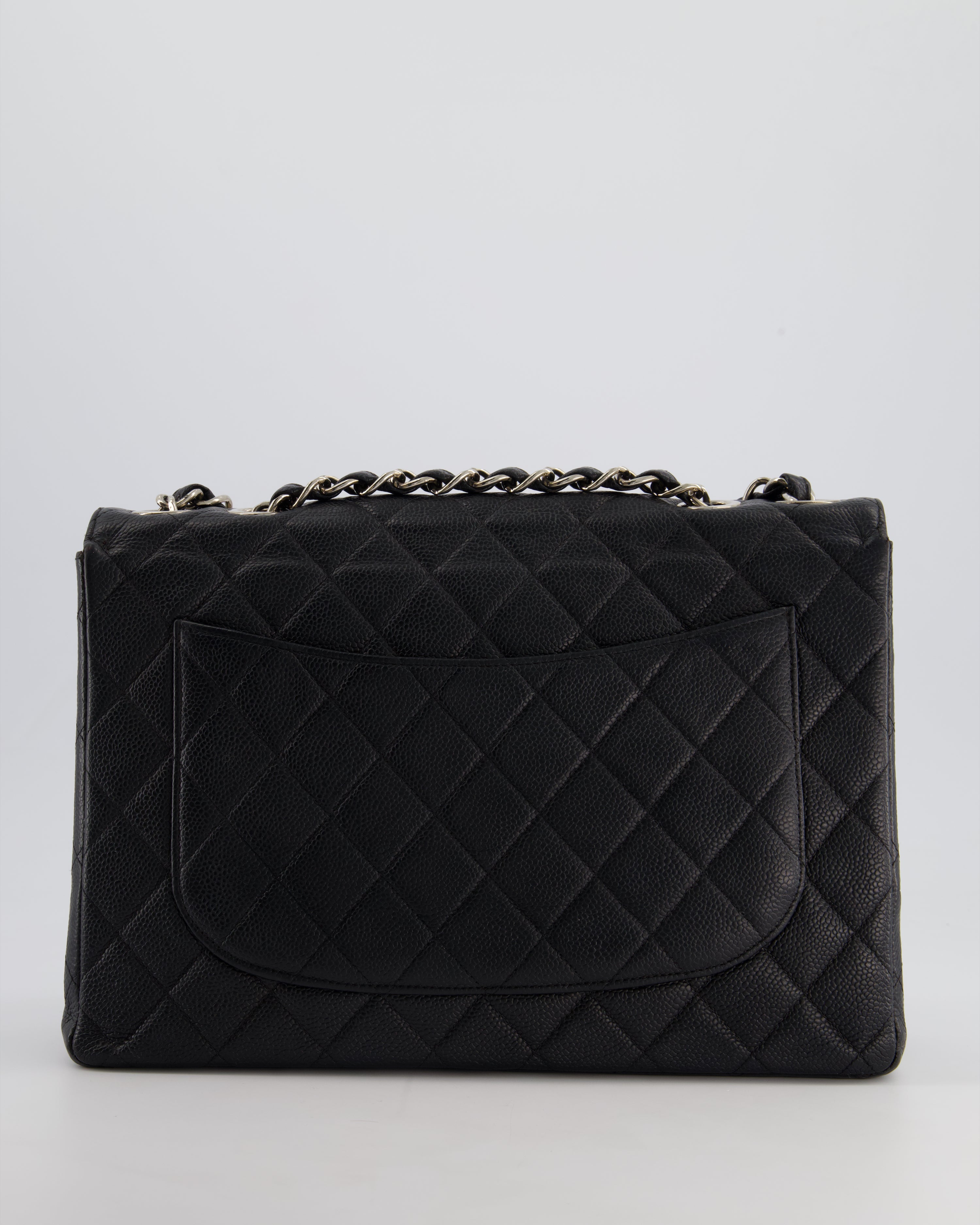 Chanel Black Vintage Quilted Caviar Square Jumbo Classic Single Flap Bag with Silver Hardware