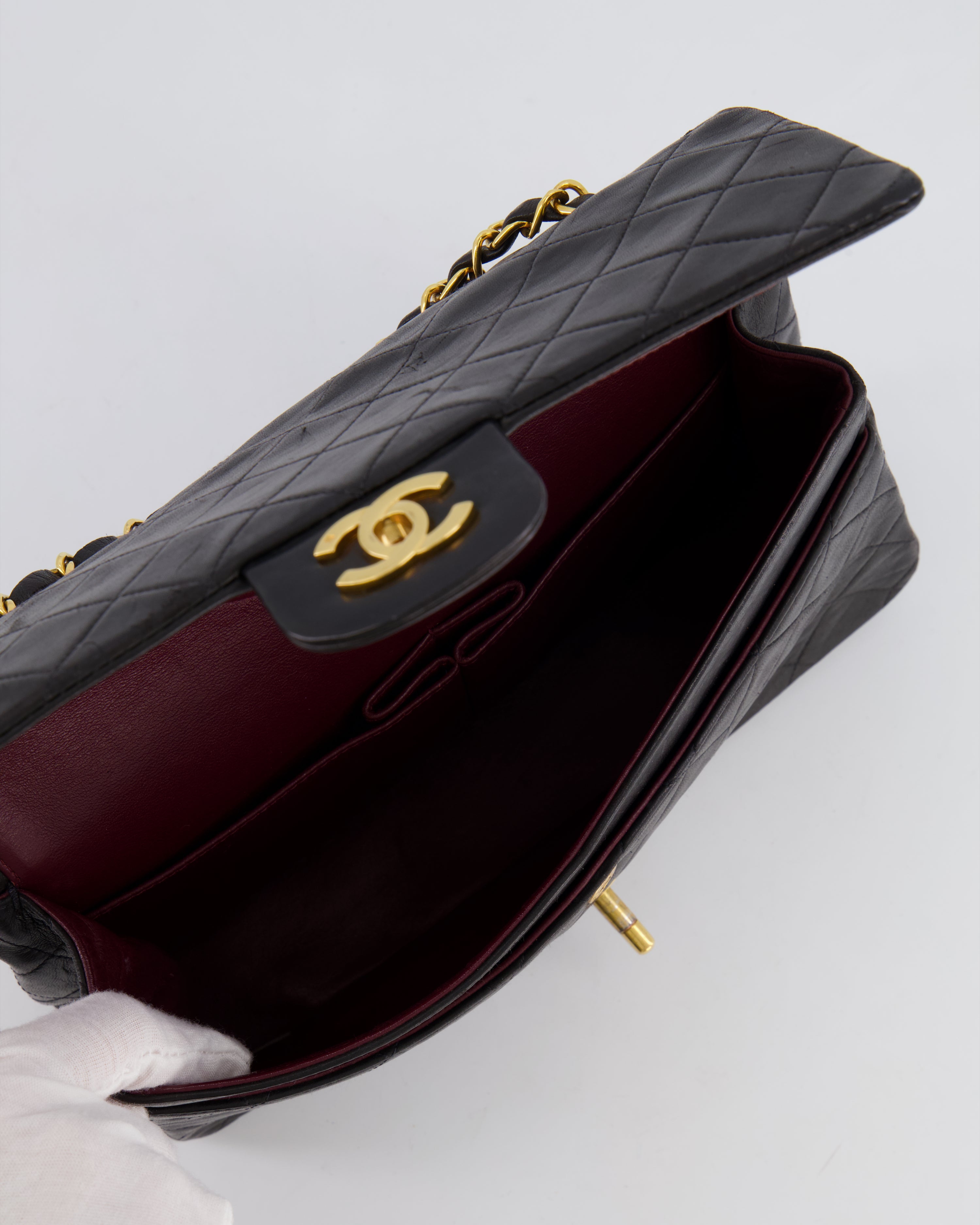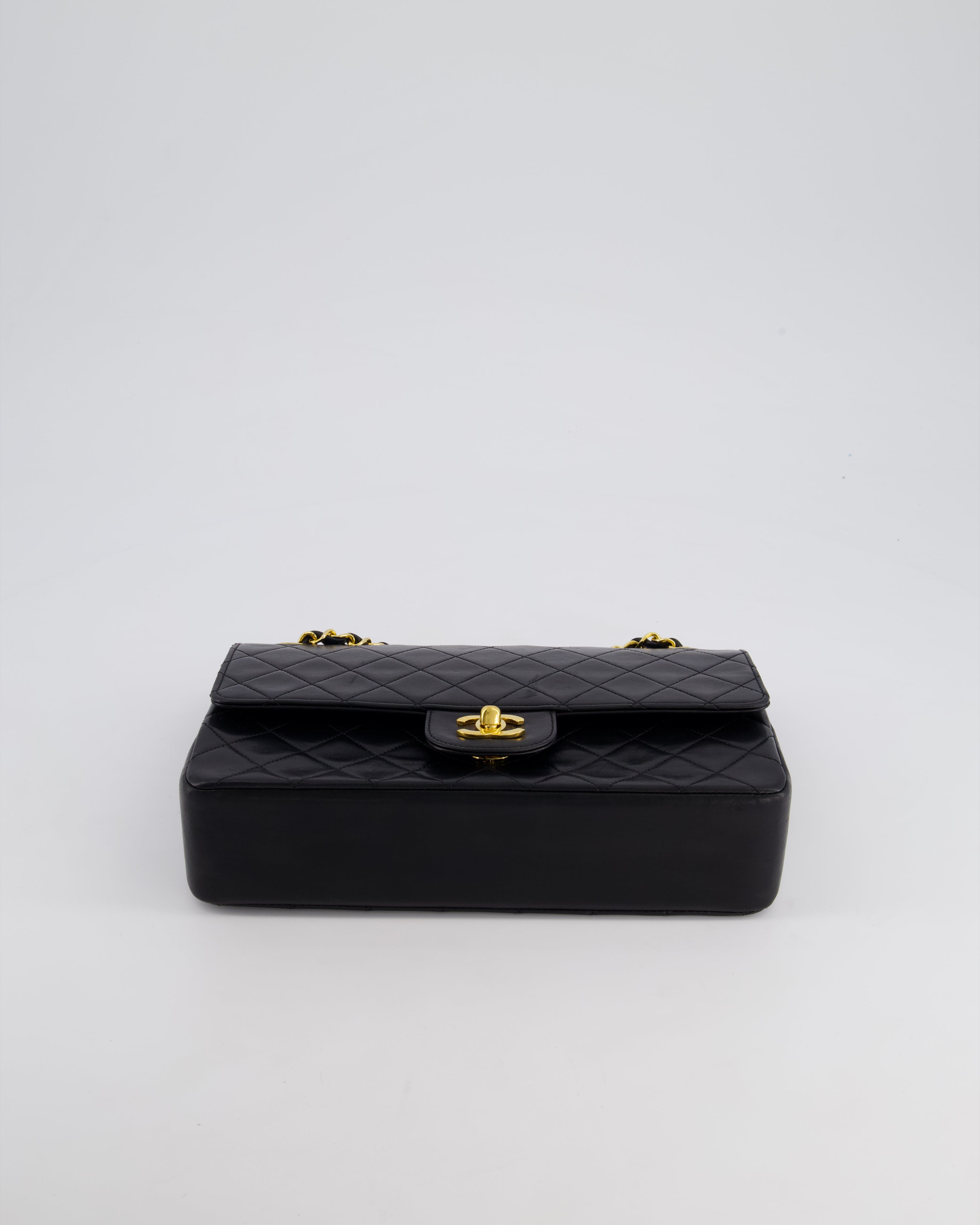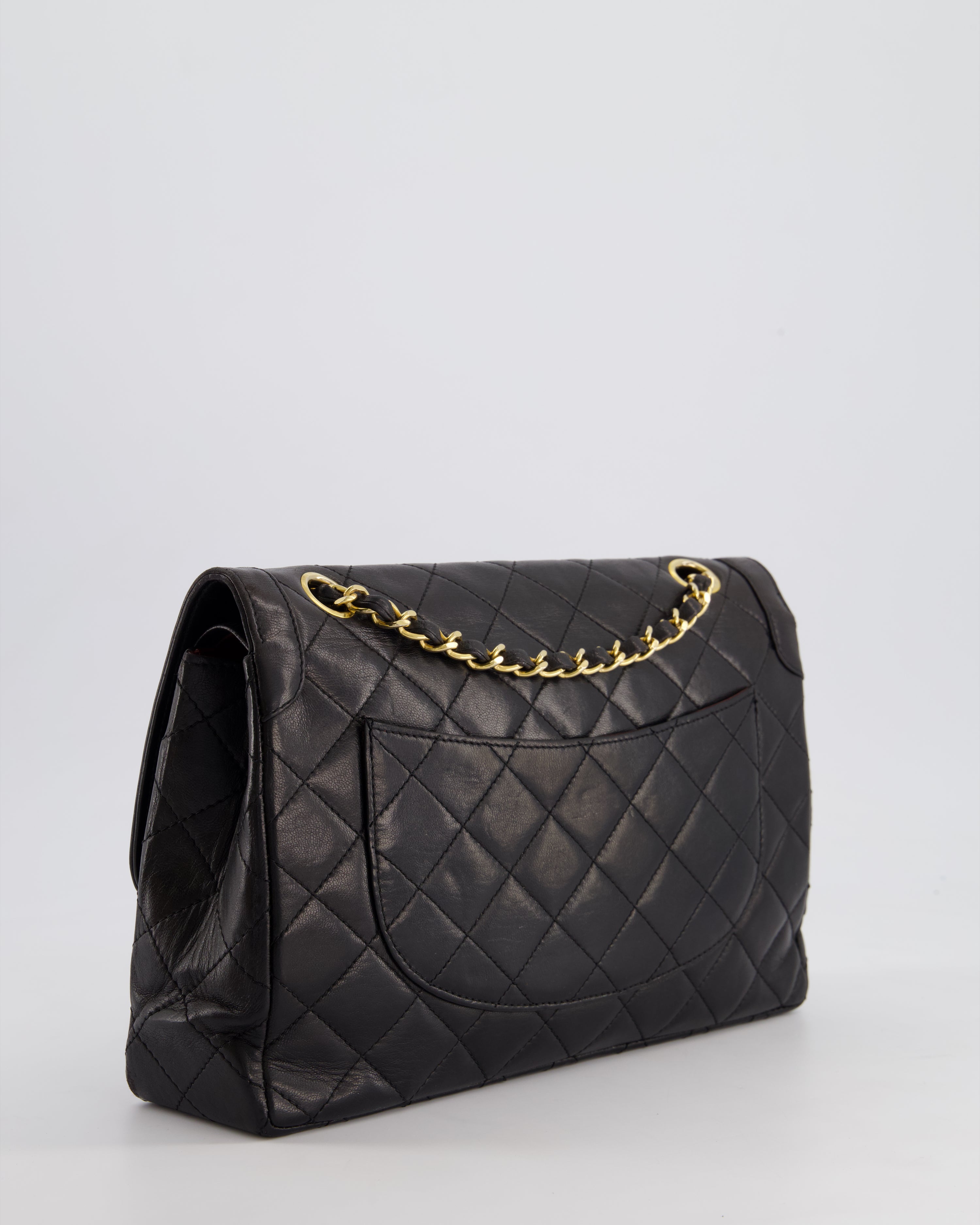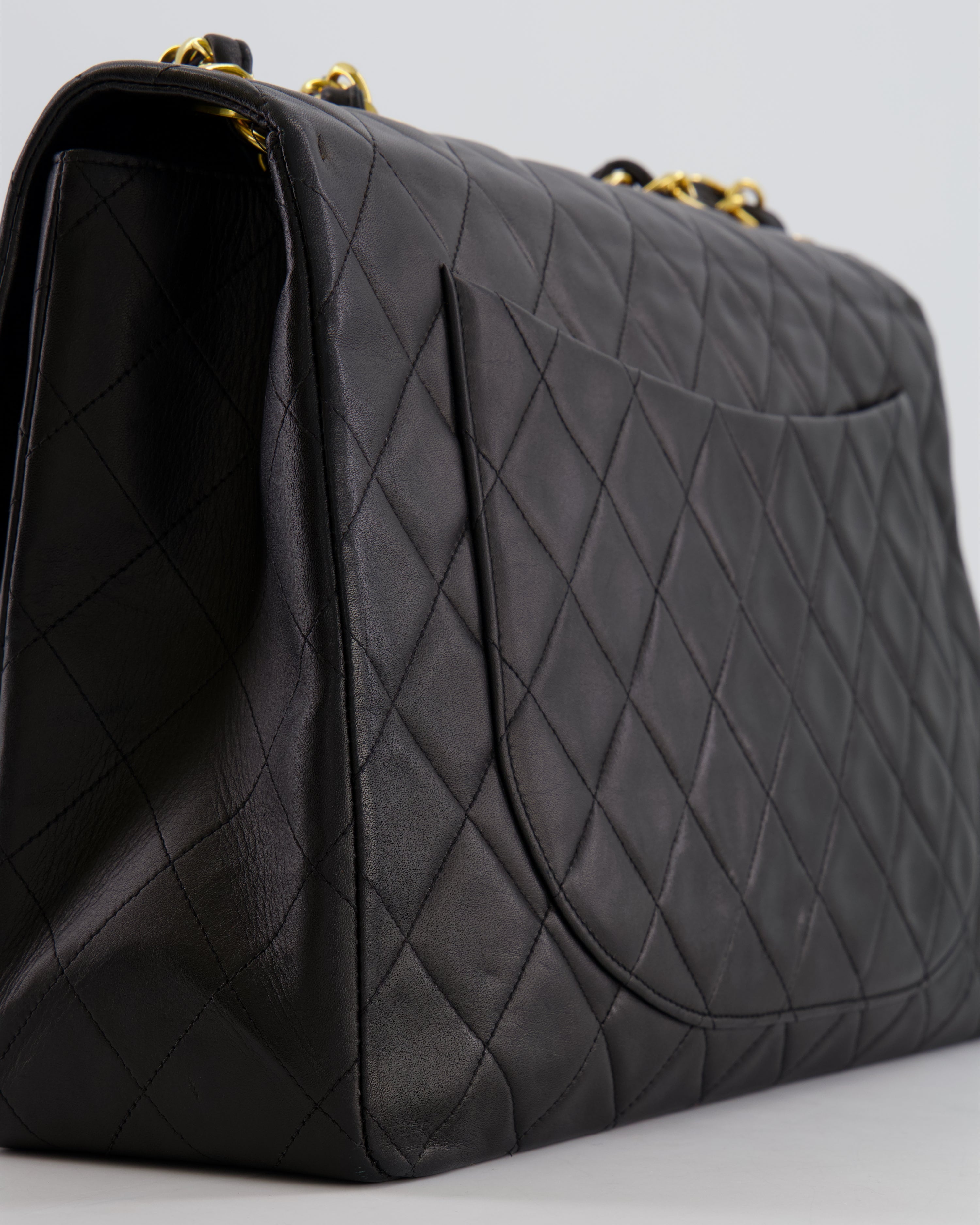 Chanel Vintage Black XL Jumbo Single Classic Flap Bag in Lambskin Leather with 24K Gold Hardware