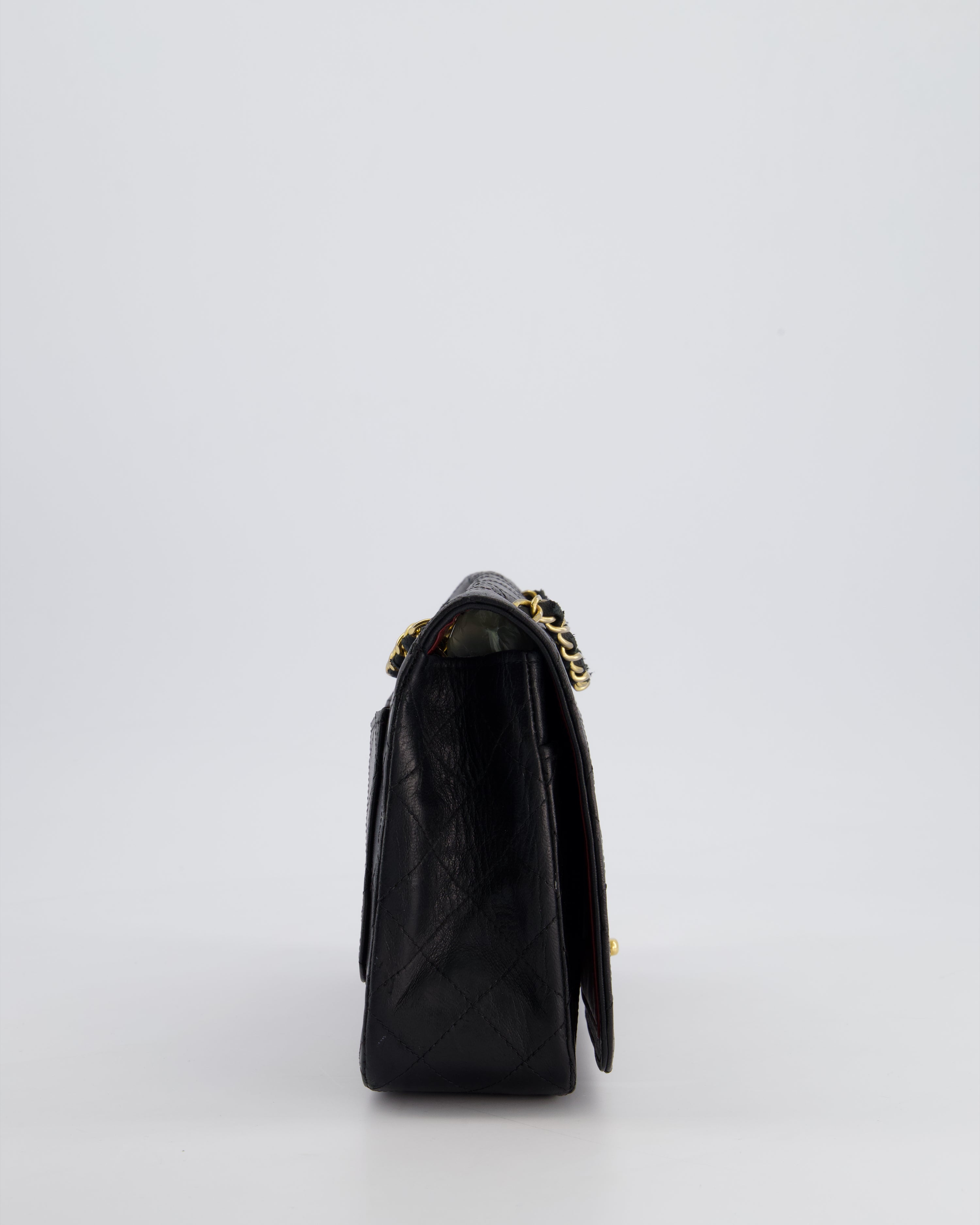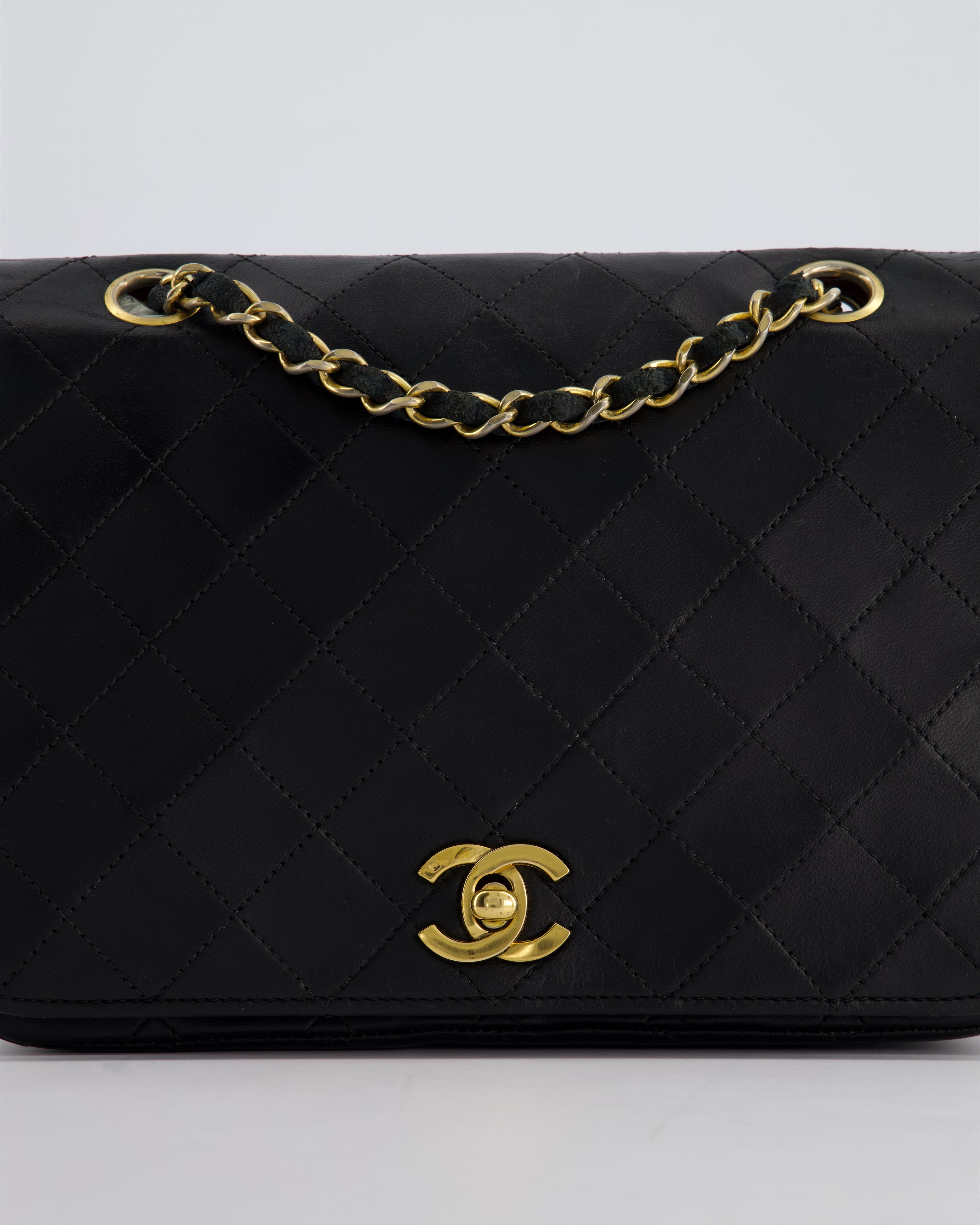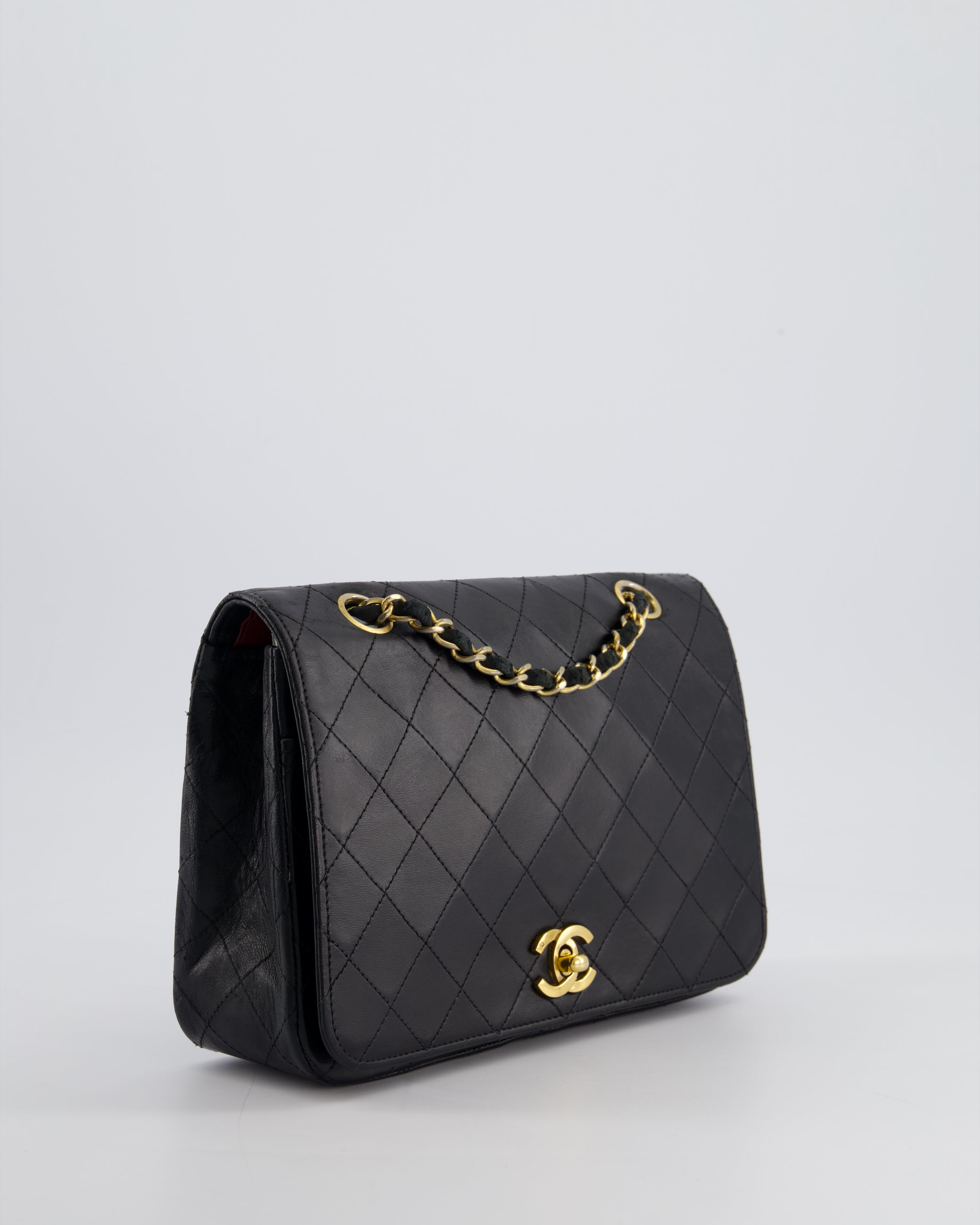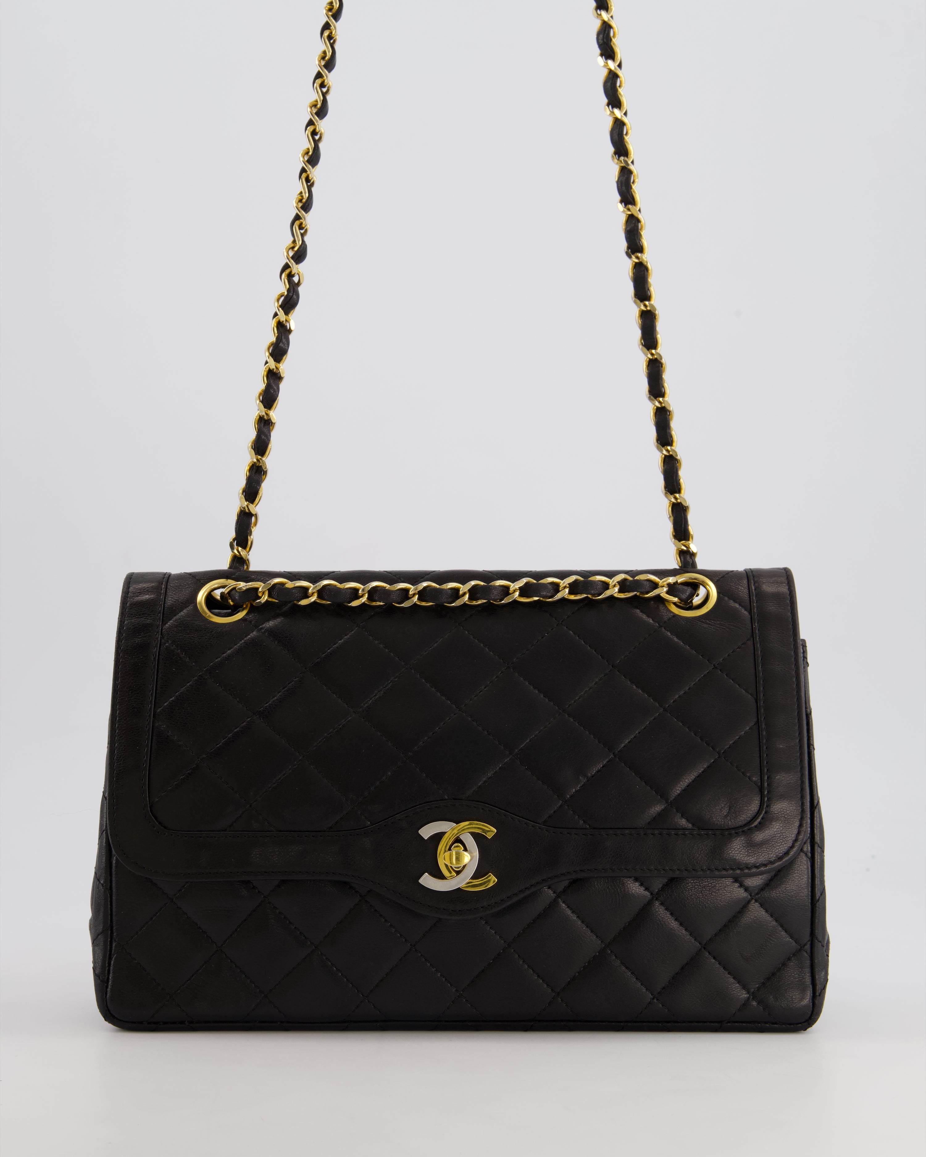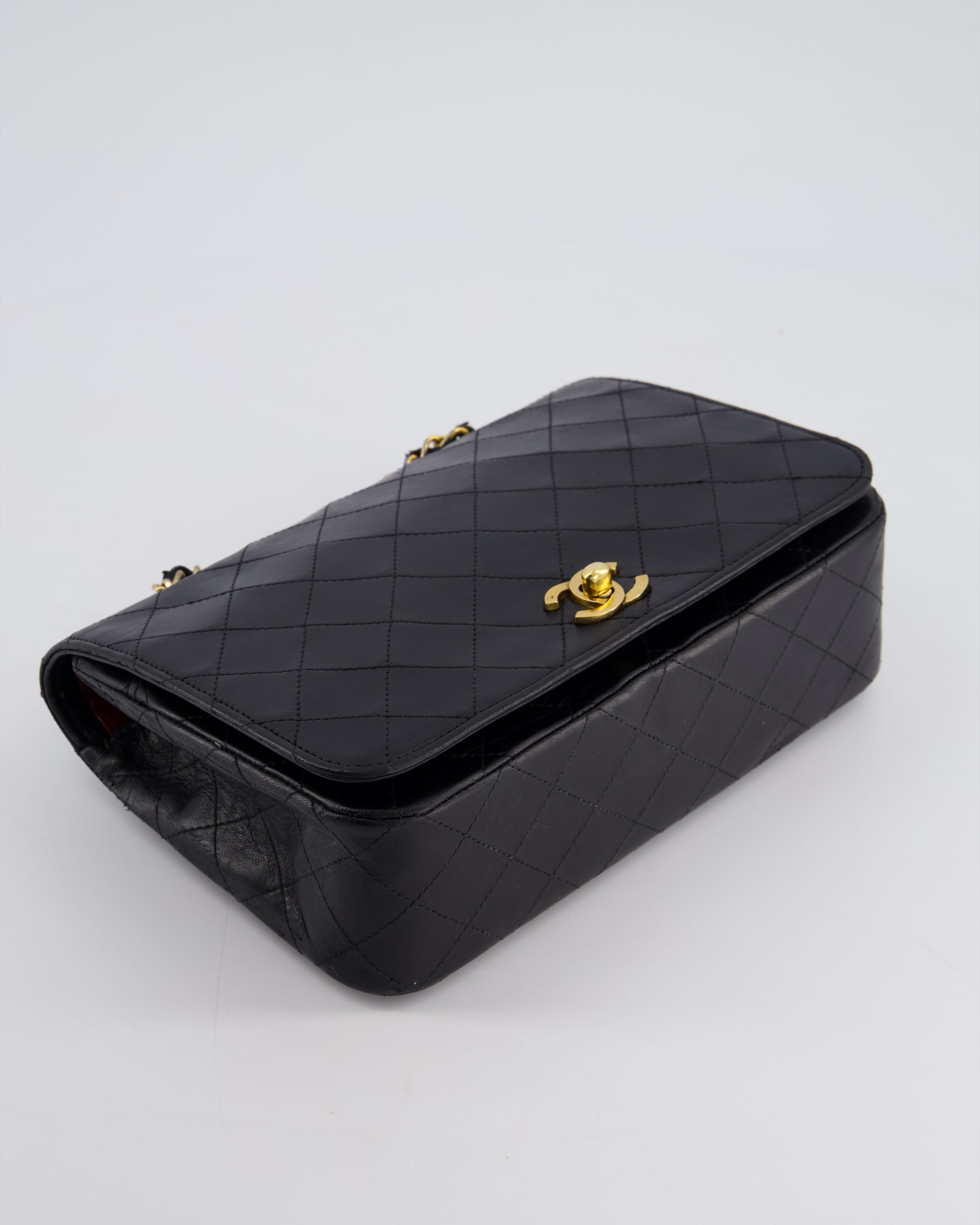 Chanel Vintage Black Matelasse Single Flap Bag in Lambskin Leather with Gold Hardware