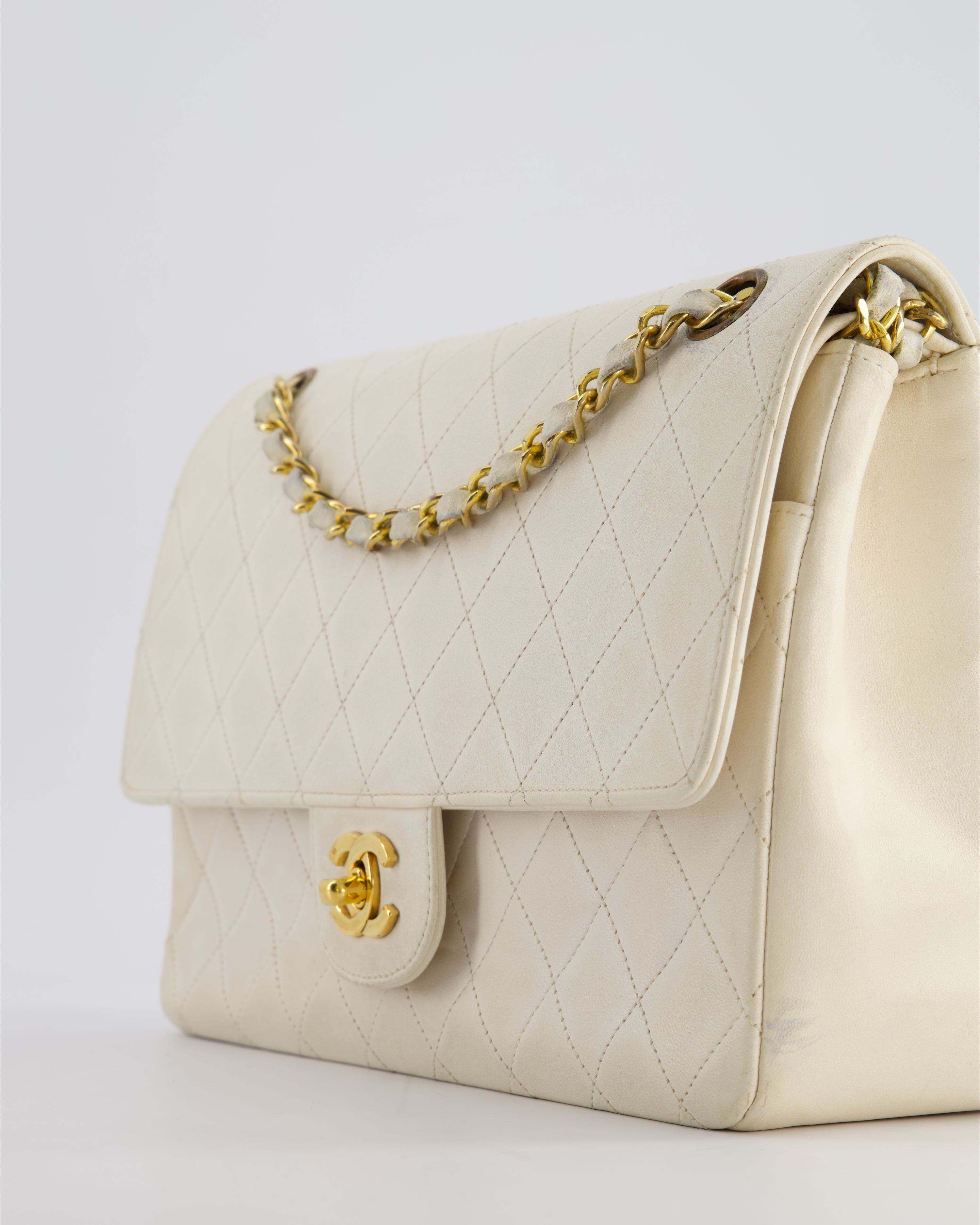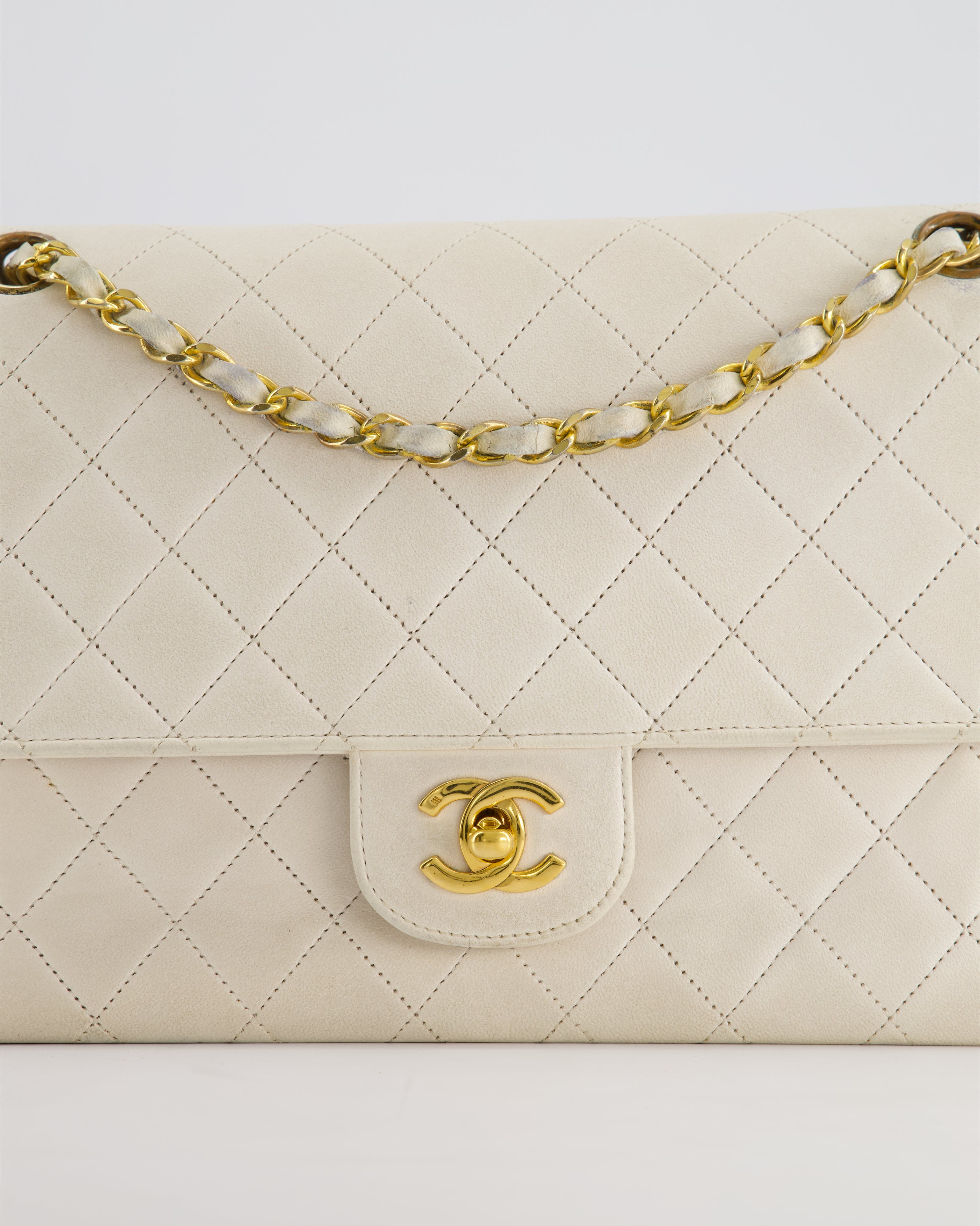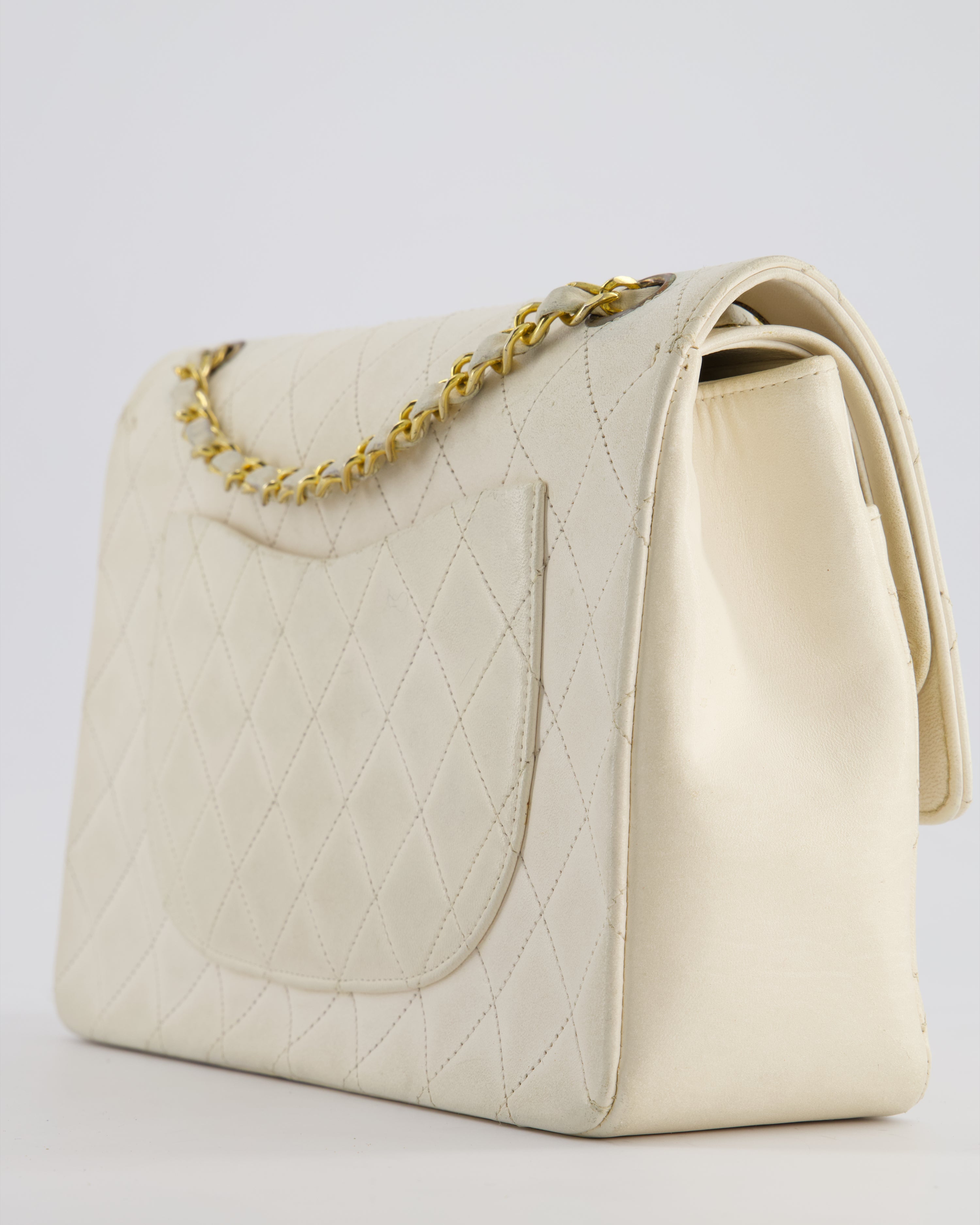 Chanel Vintage White Medium Classic Double Flap Bag in Lambskin Leather with 24K Gold Hardware