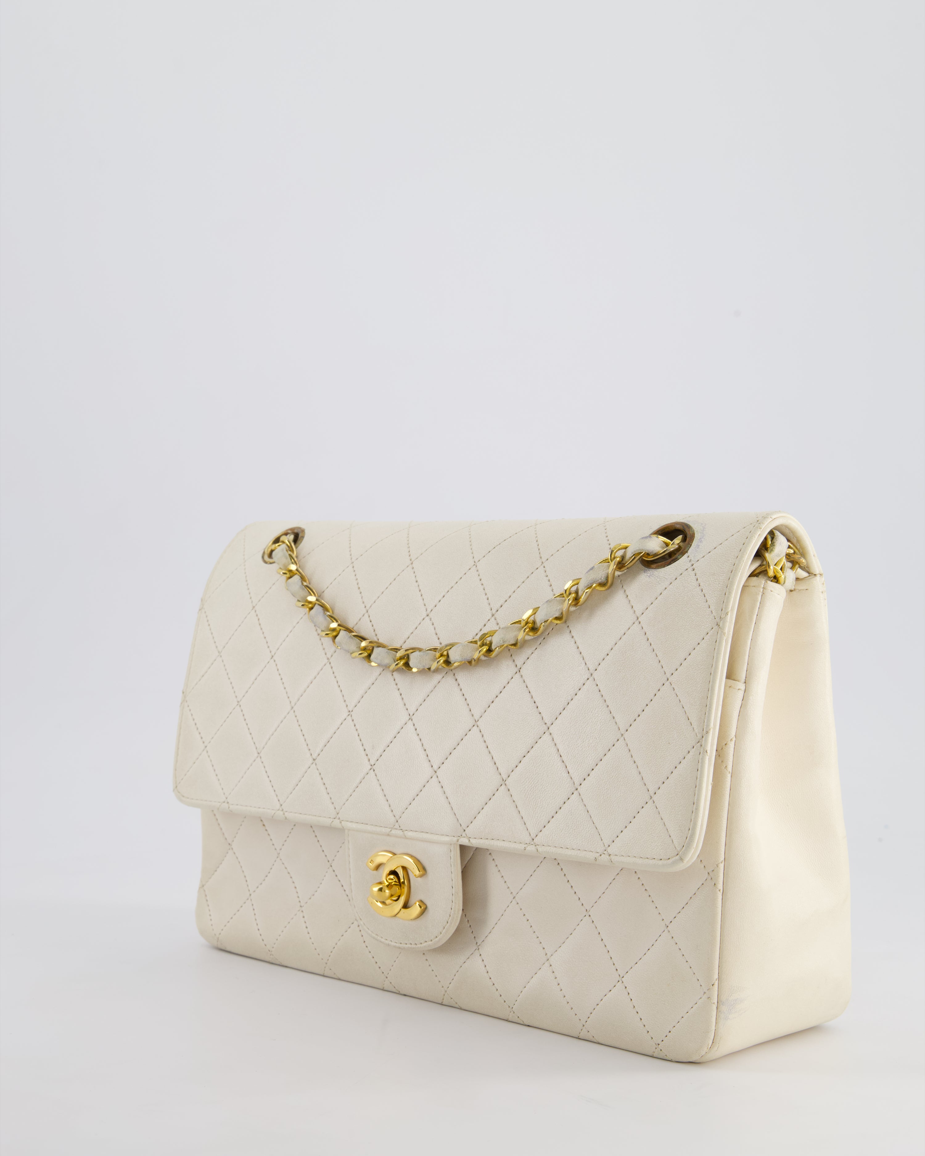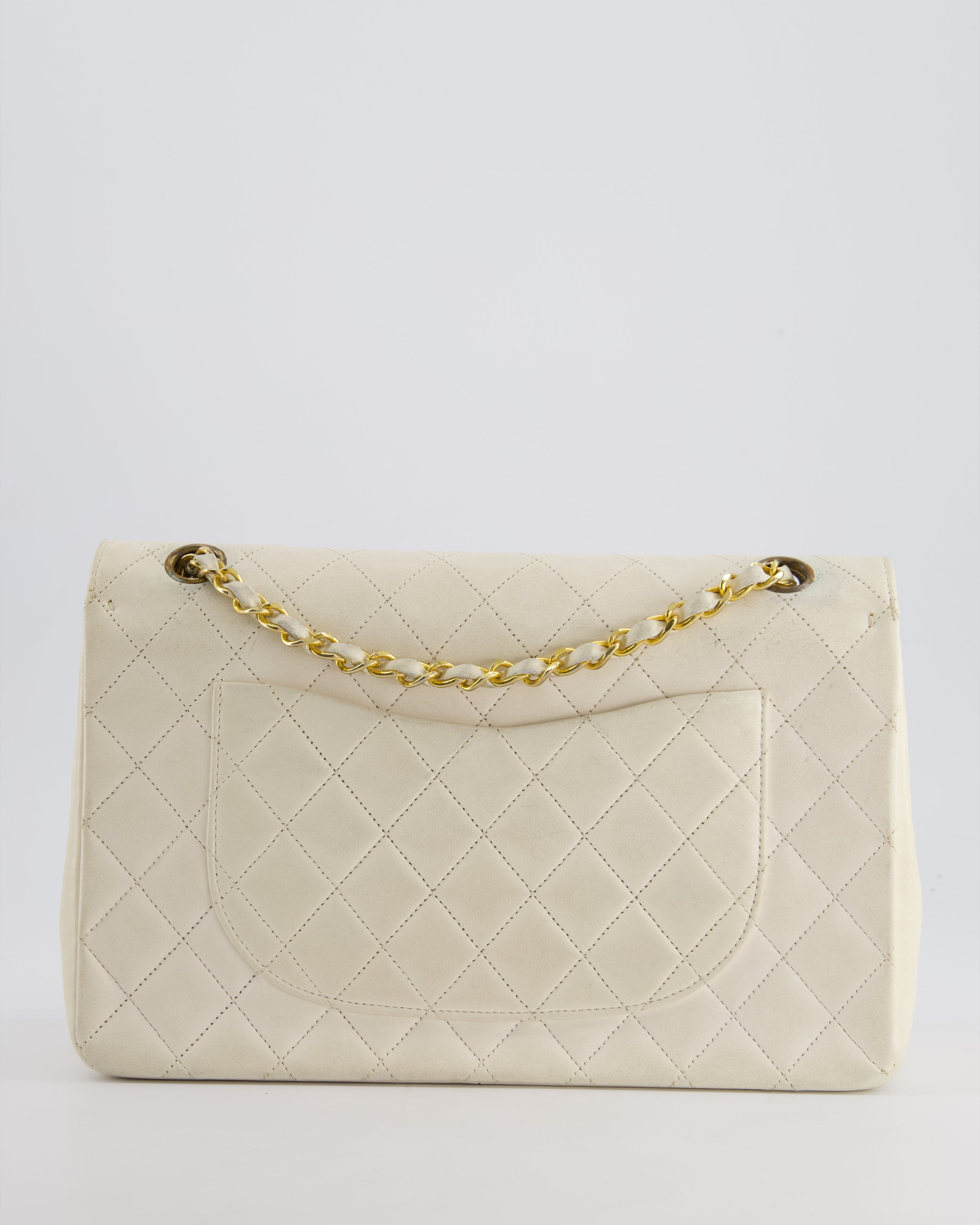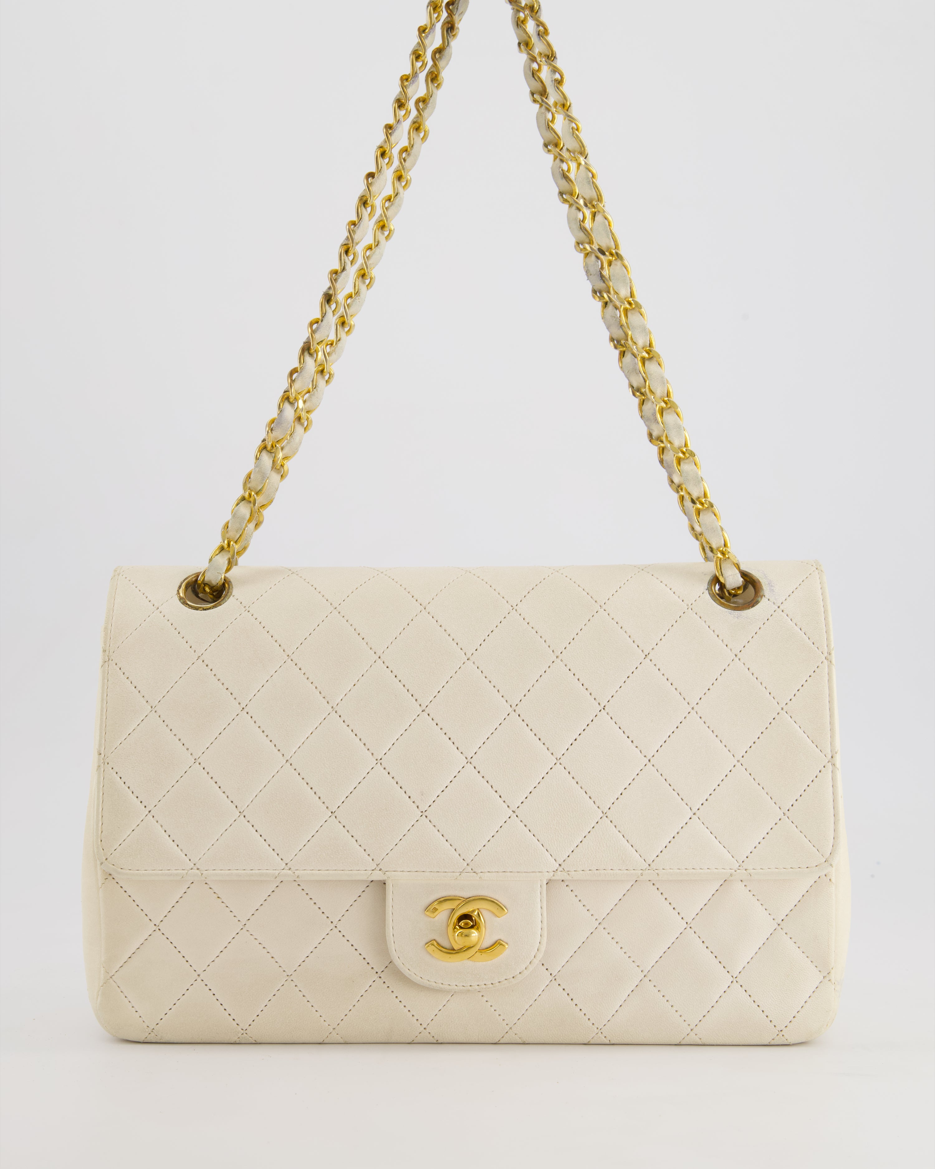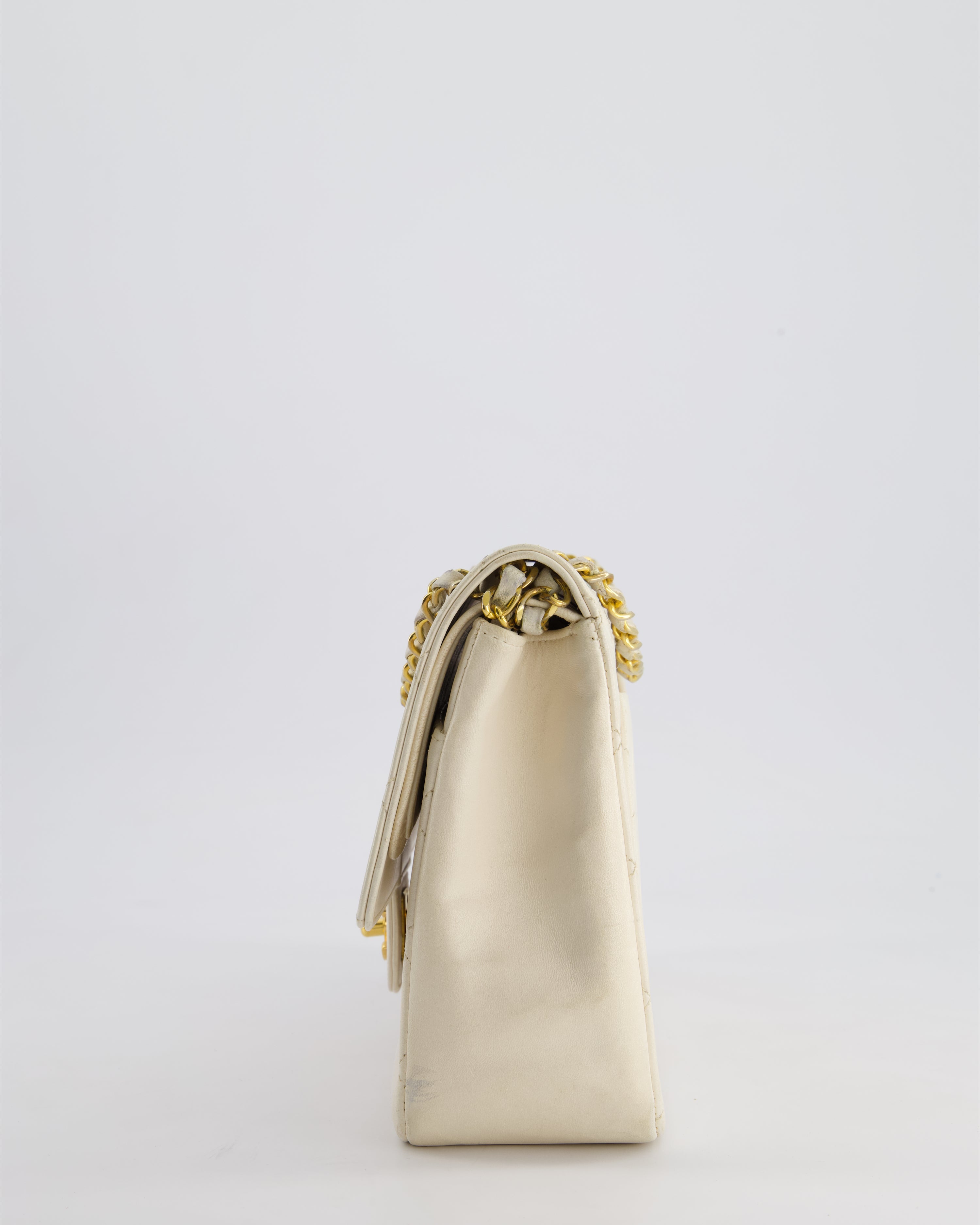 Chanel Vintage White Medium Classic Double Flap Bag in Lambskin Leather with 24K Gold Hardware