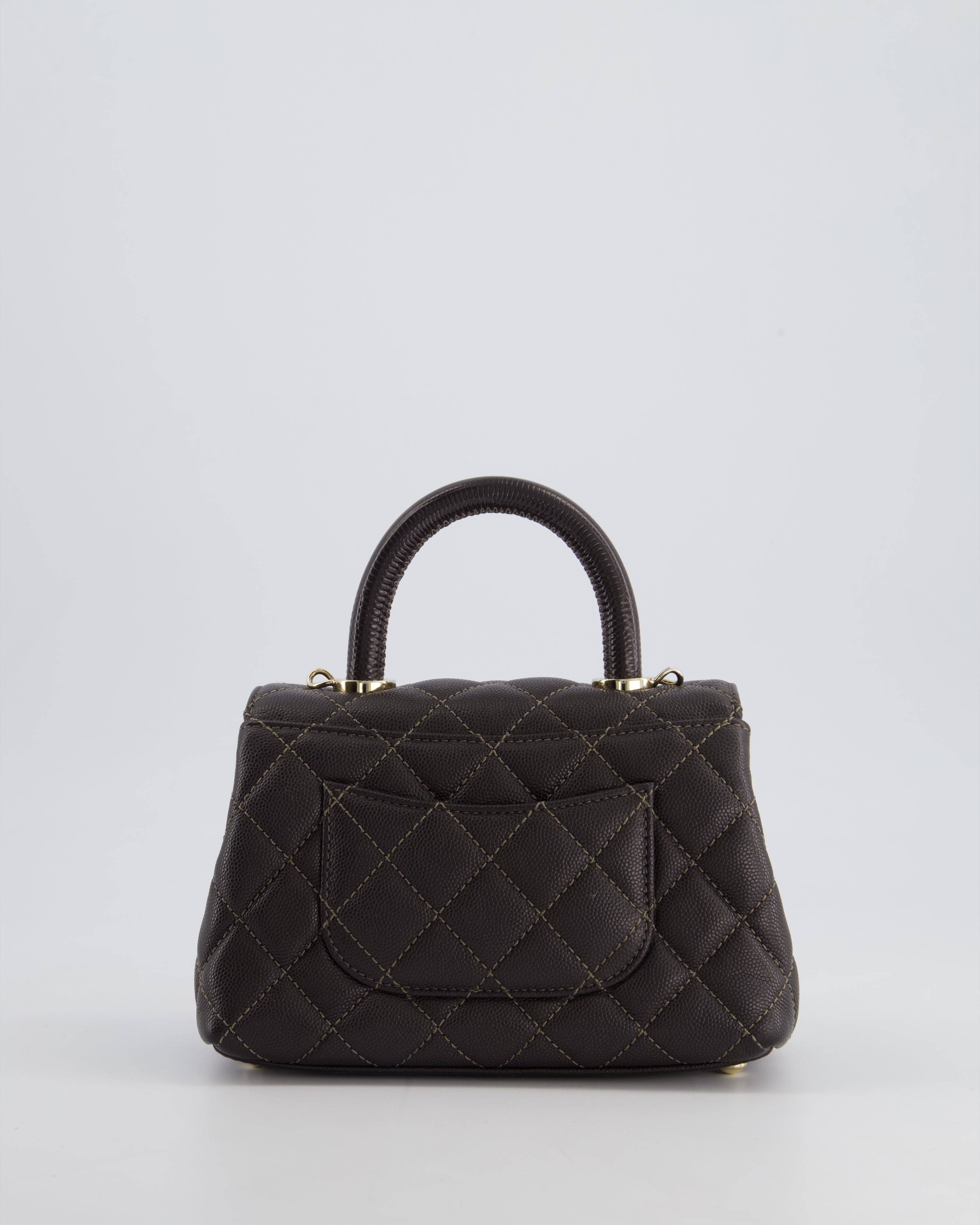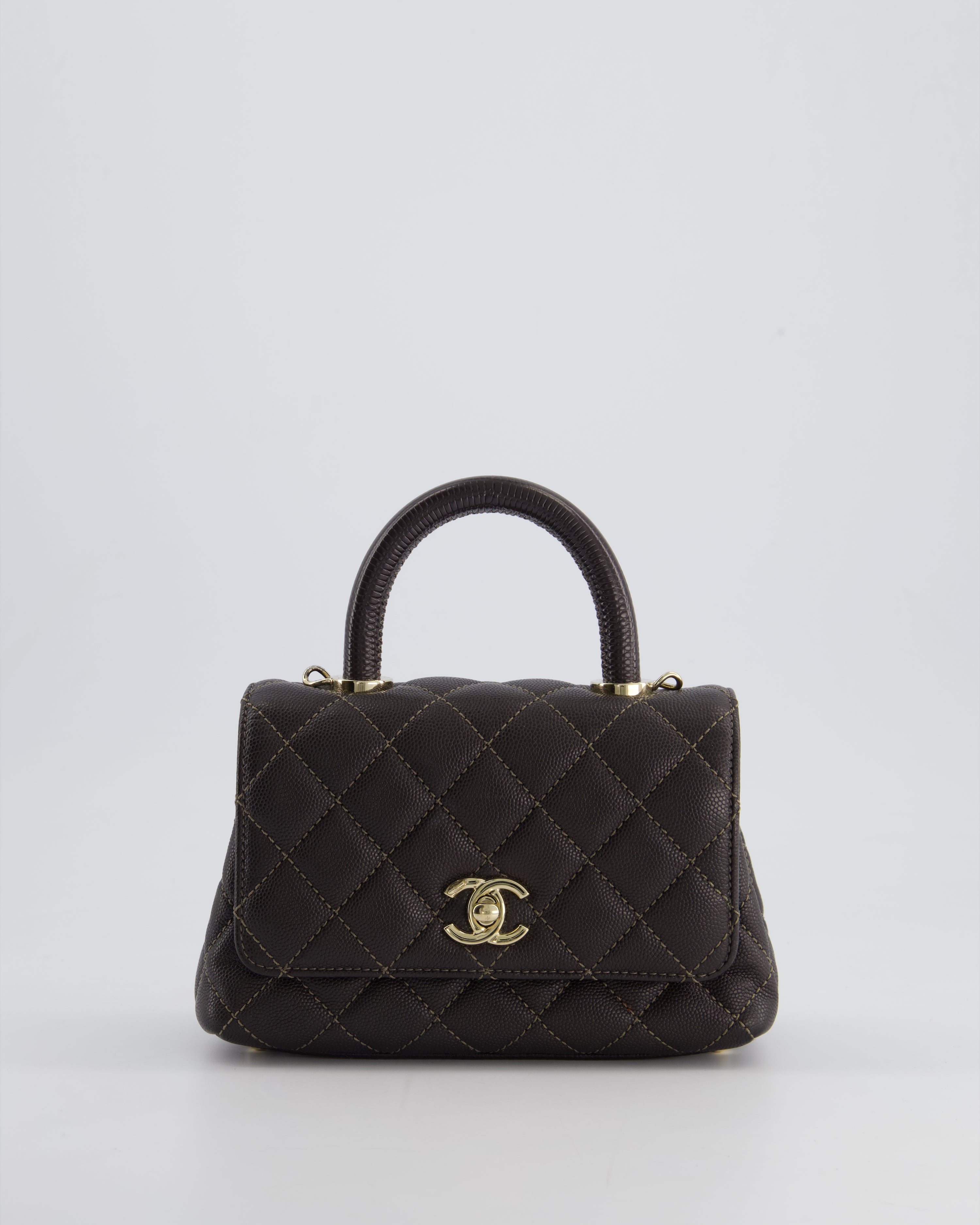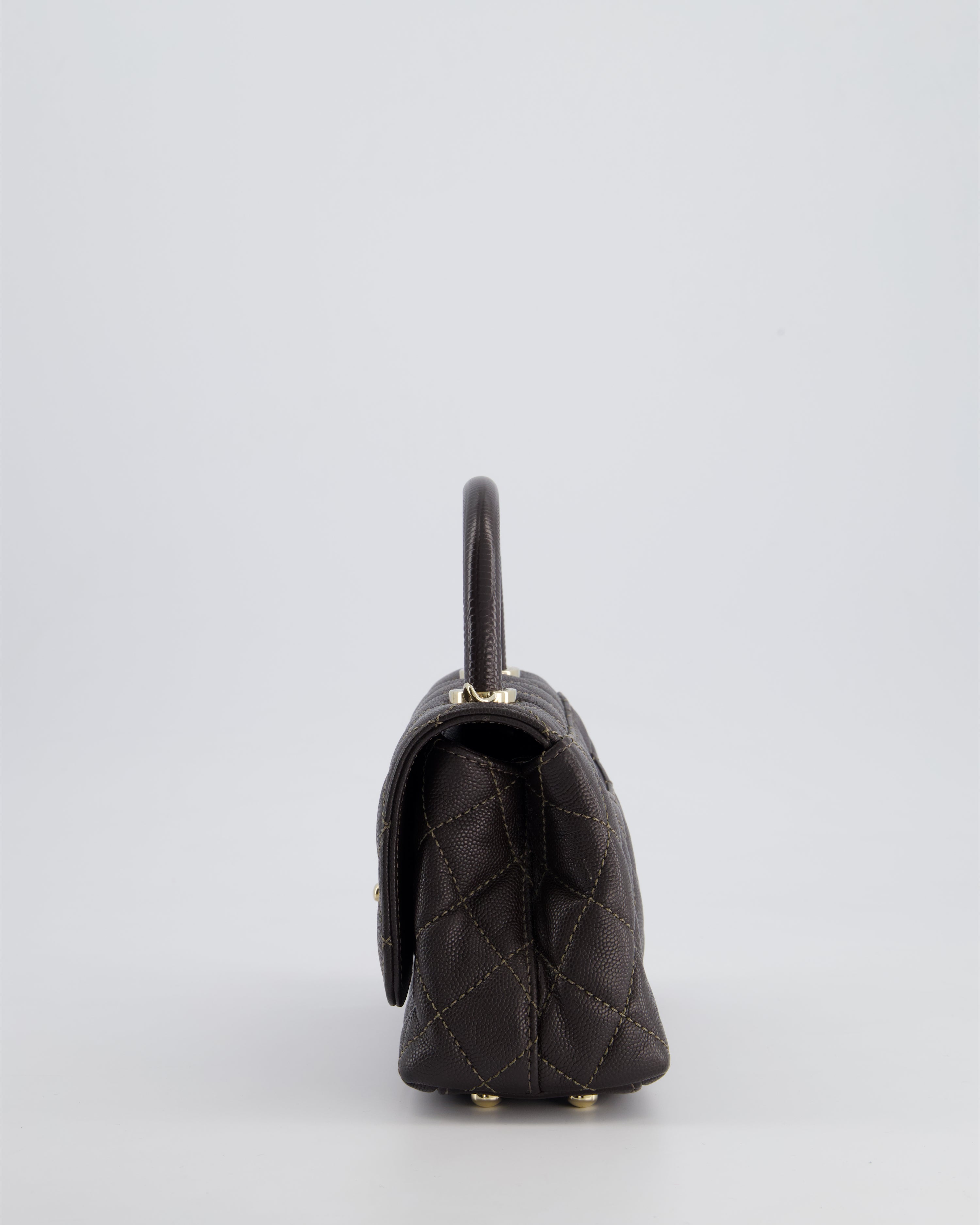 Chanel Mini Coco Top Handle Bag in Dark Brown Caviar Leather with Champagne Gold Hardware