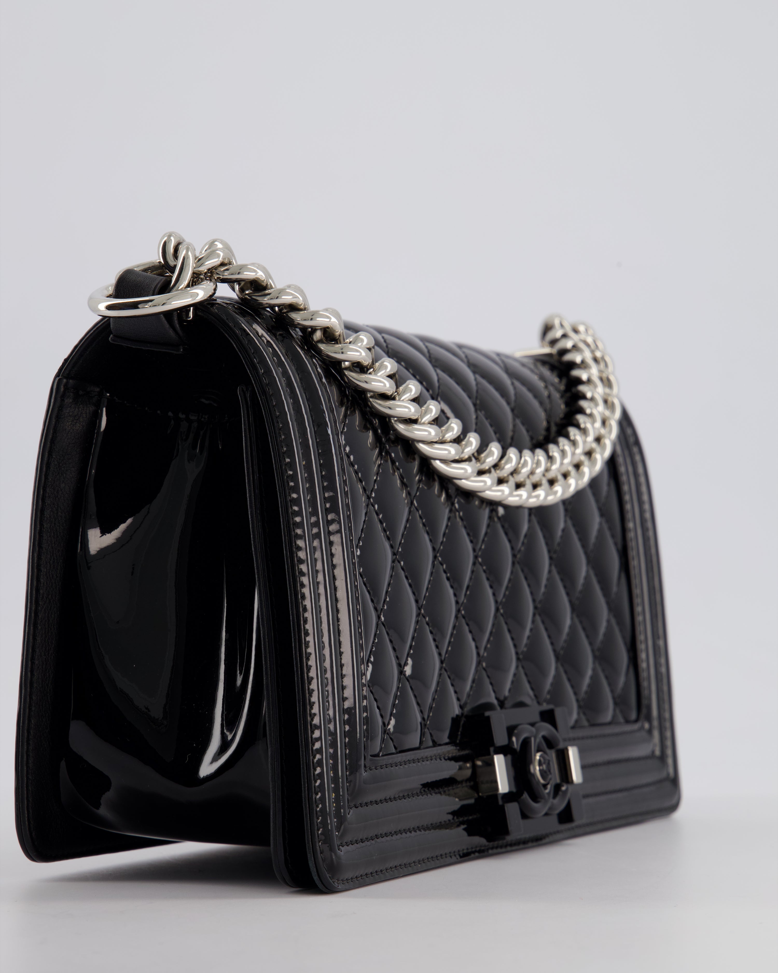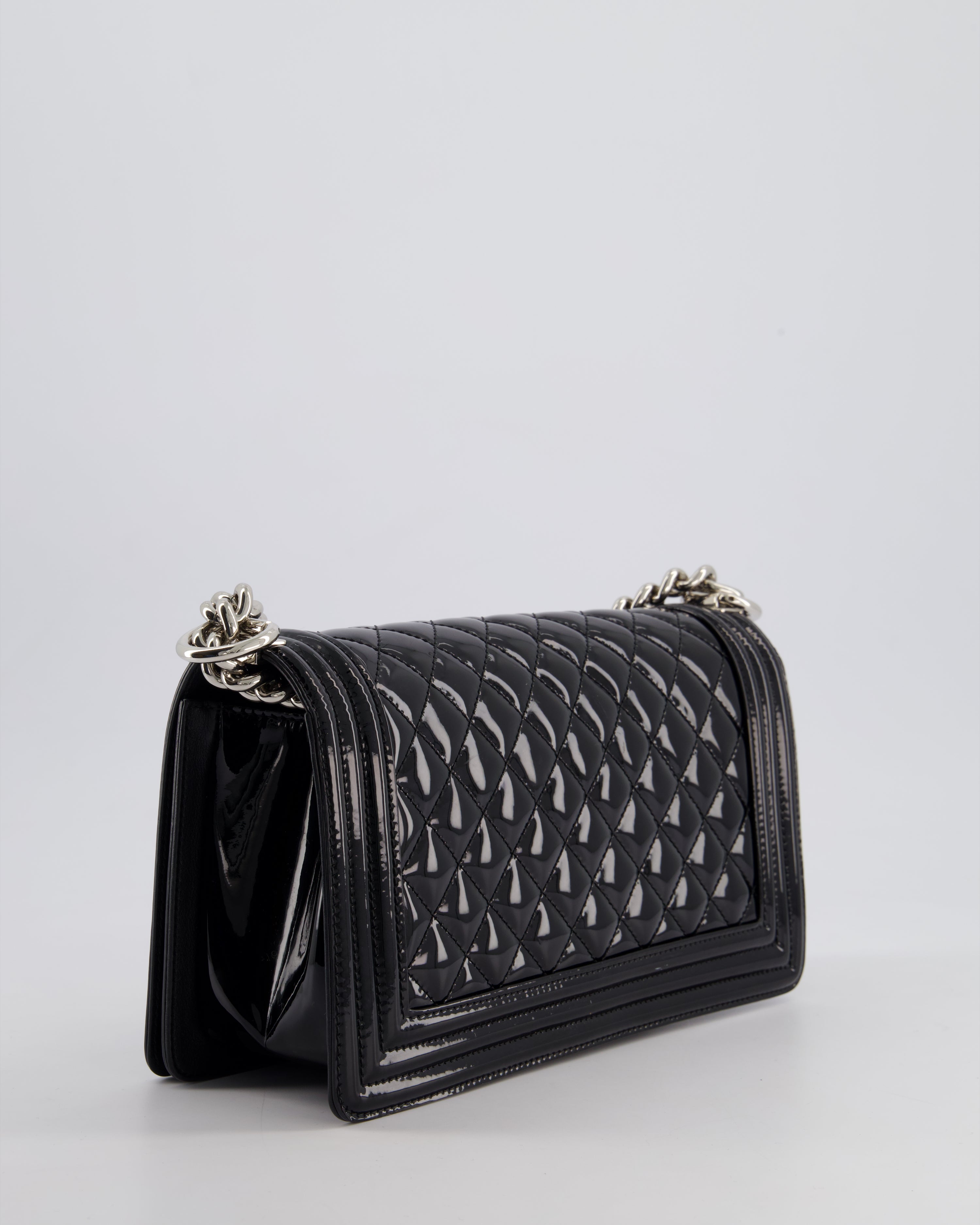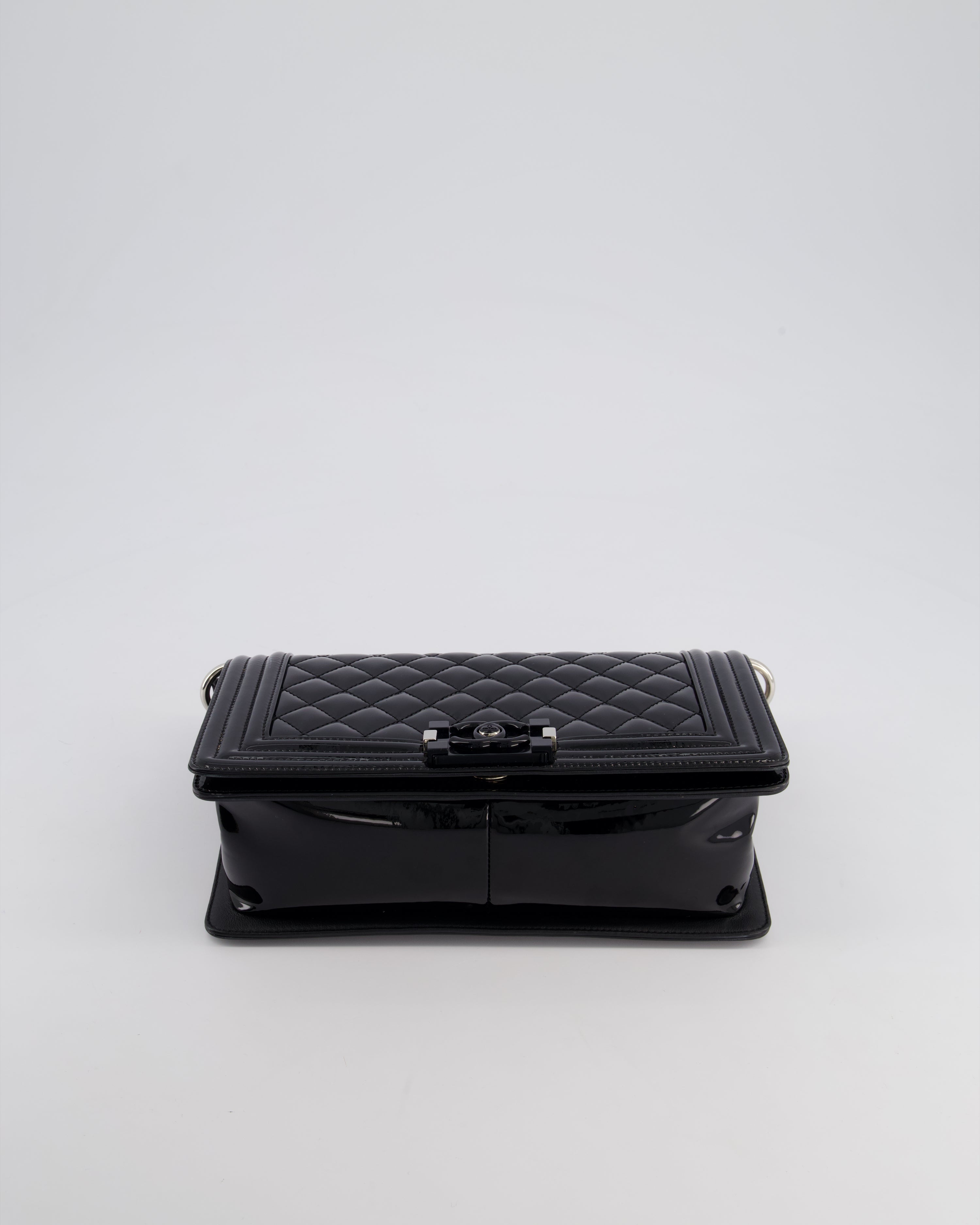 *FIRE PRICE* Chanel Black Patent Medium Boy Bag with Black and Silver Hardware