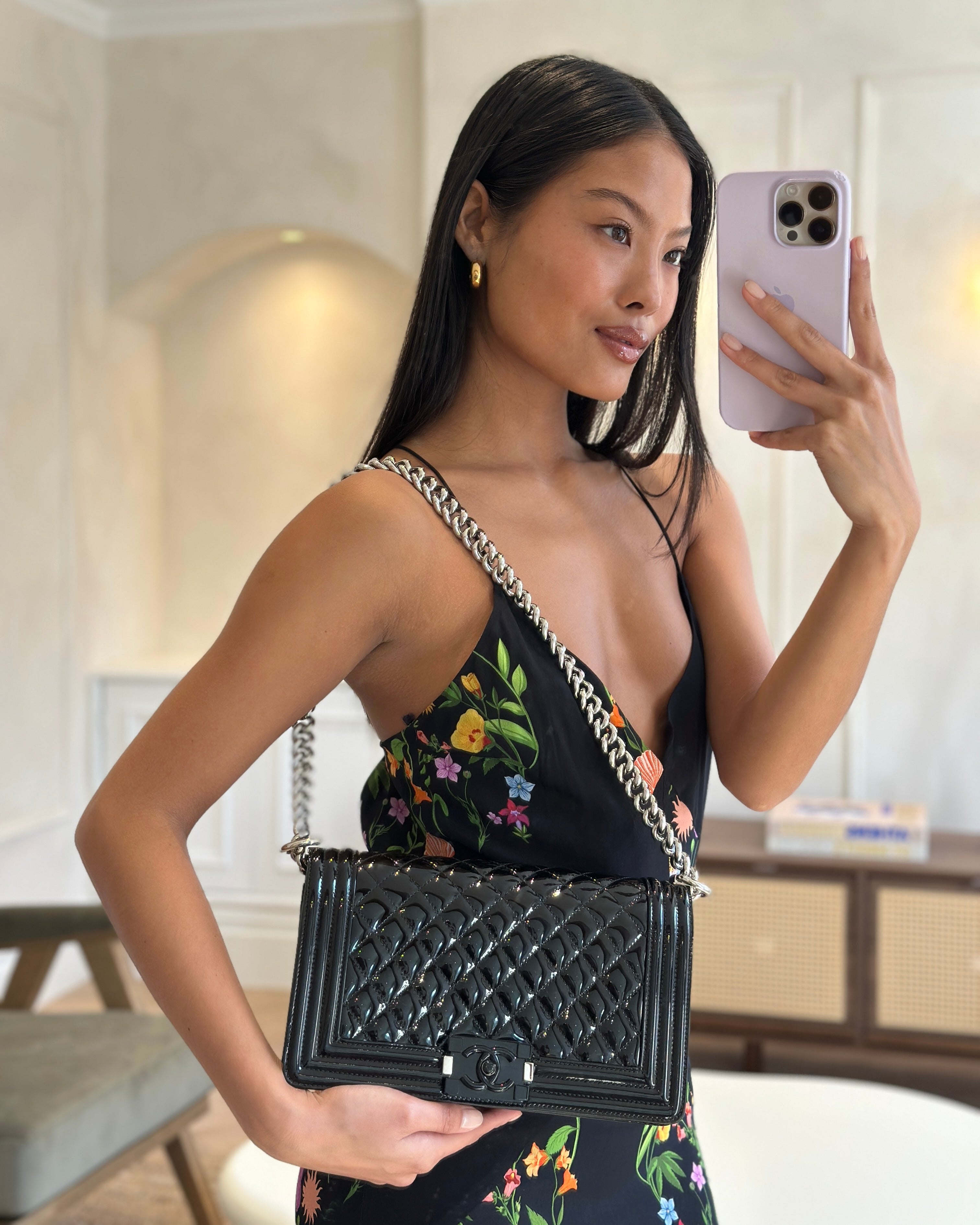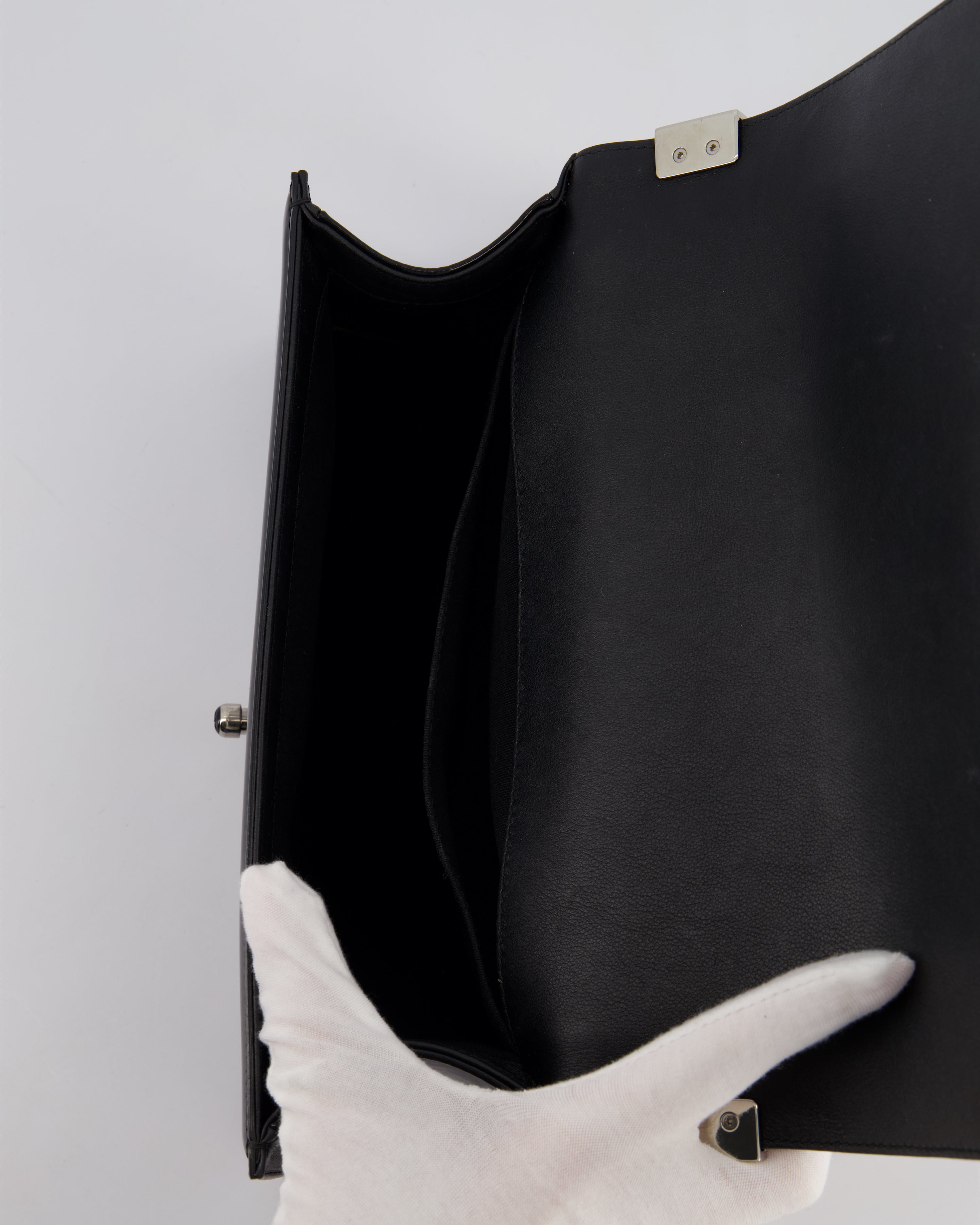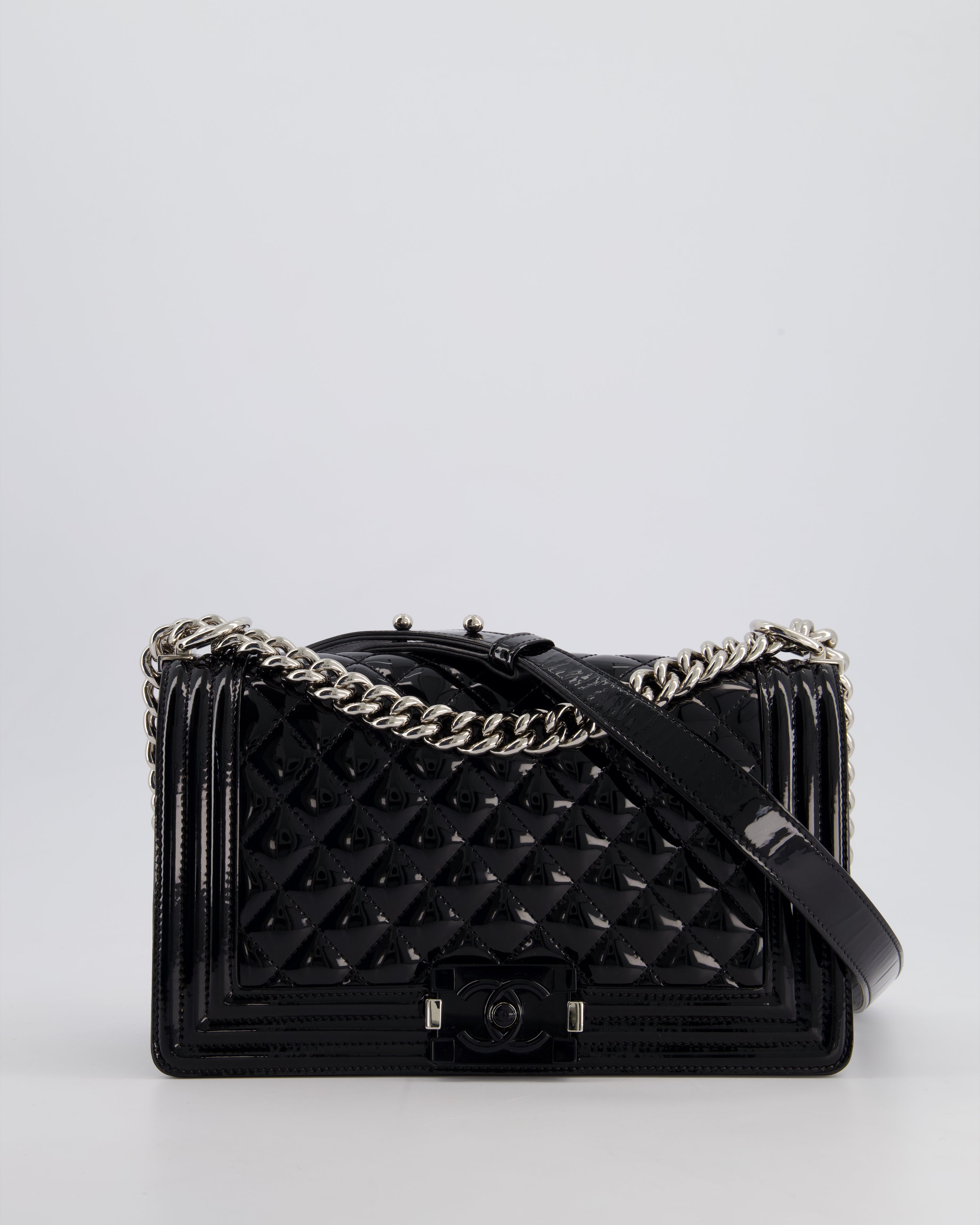 *FIRE PRICE* Chanel Black Patent Medium Boy Bag with Black and Silver Hardware