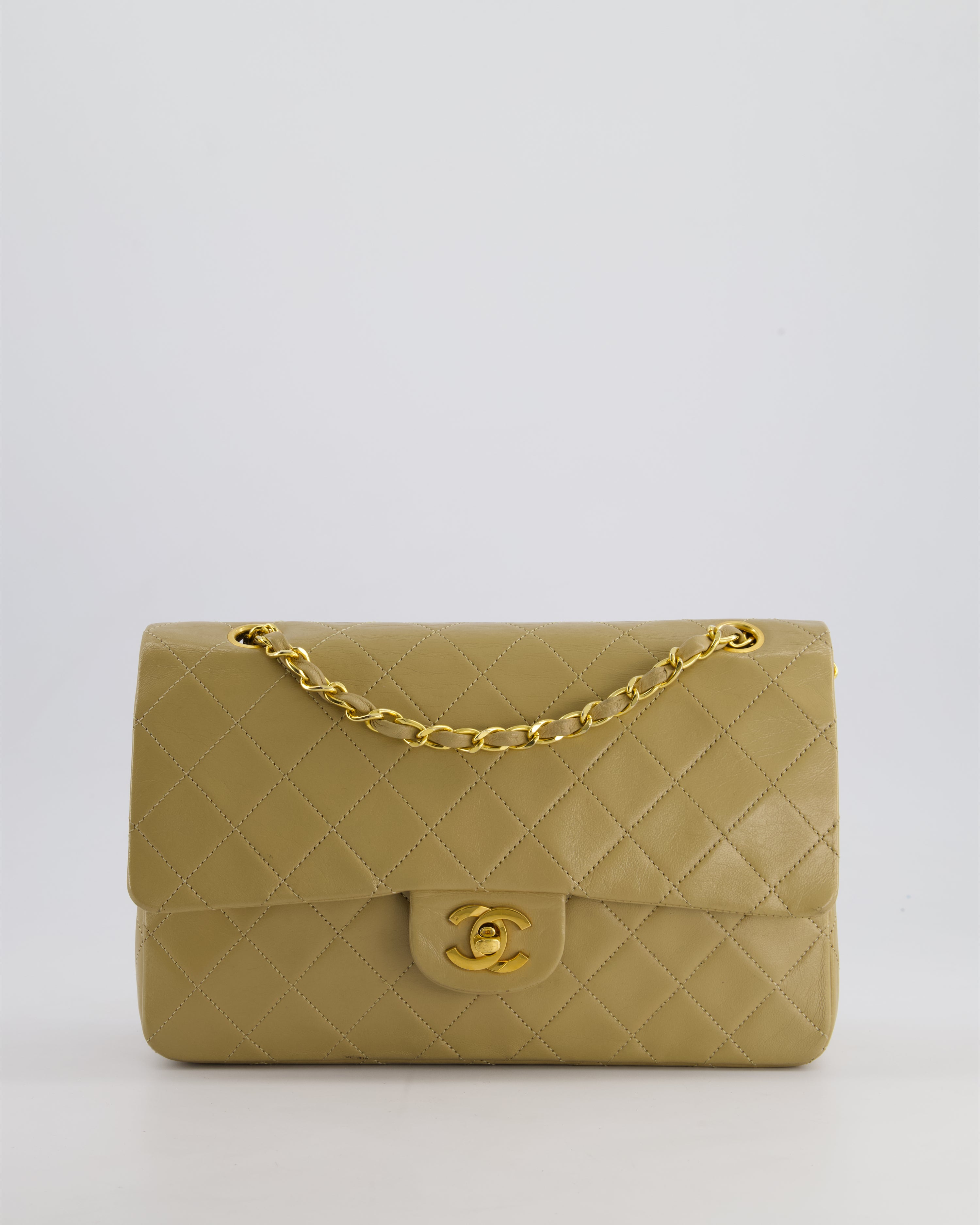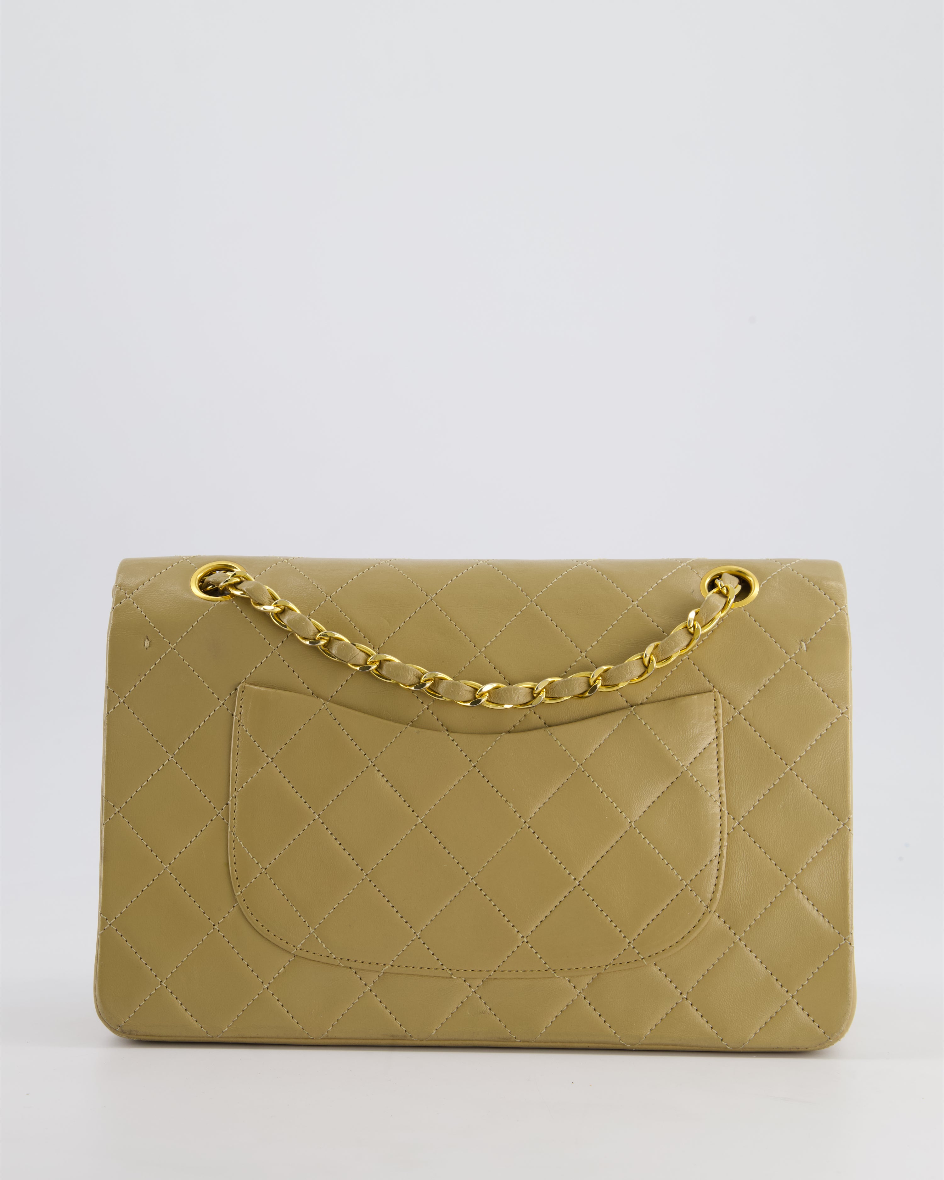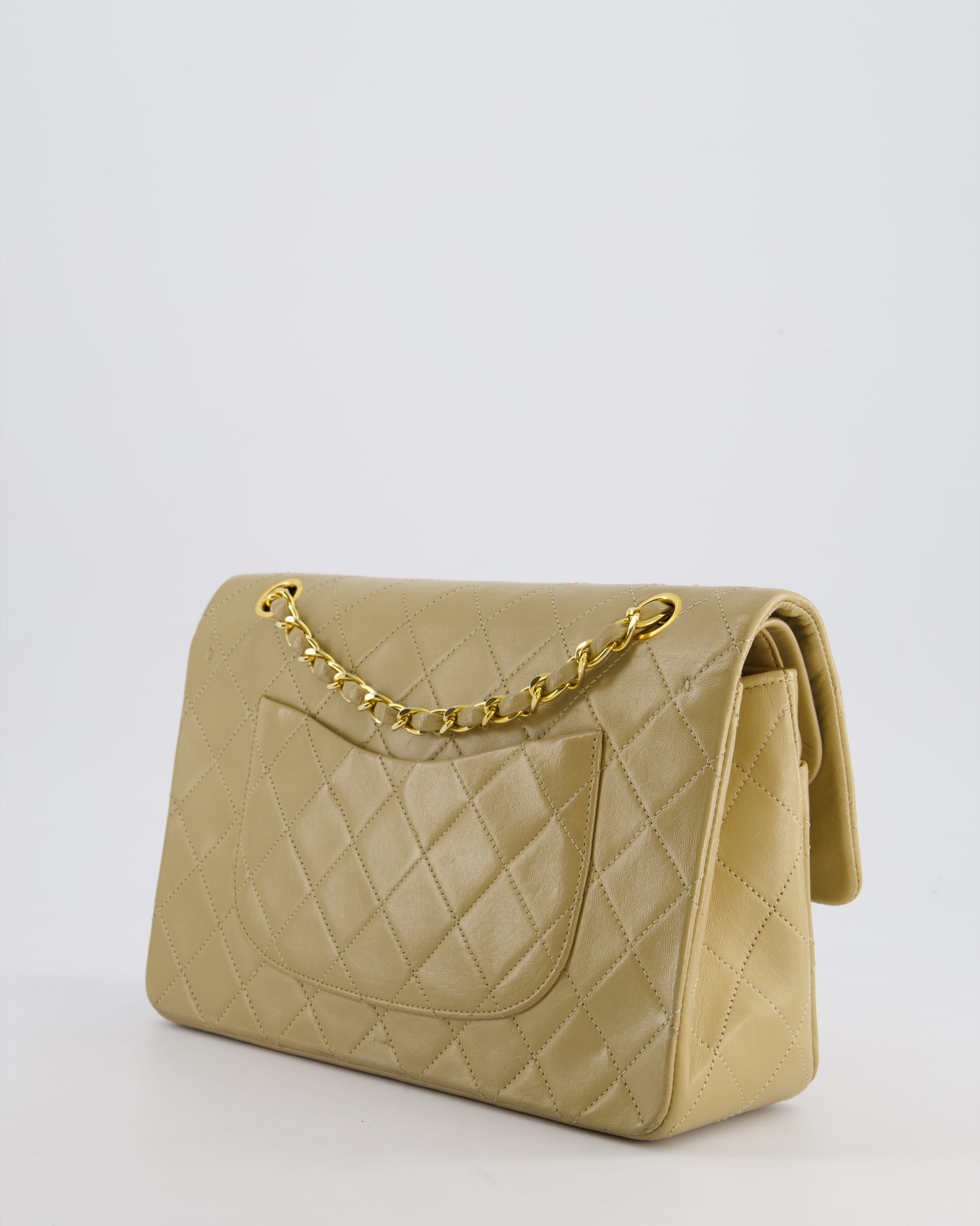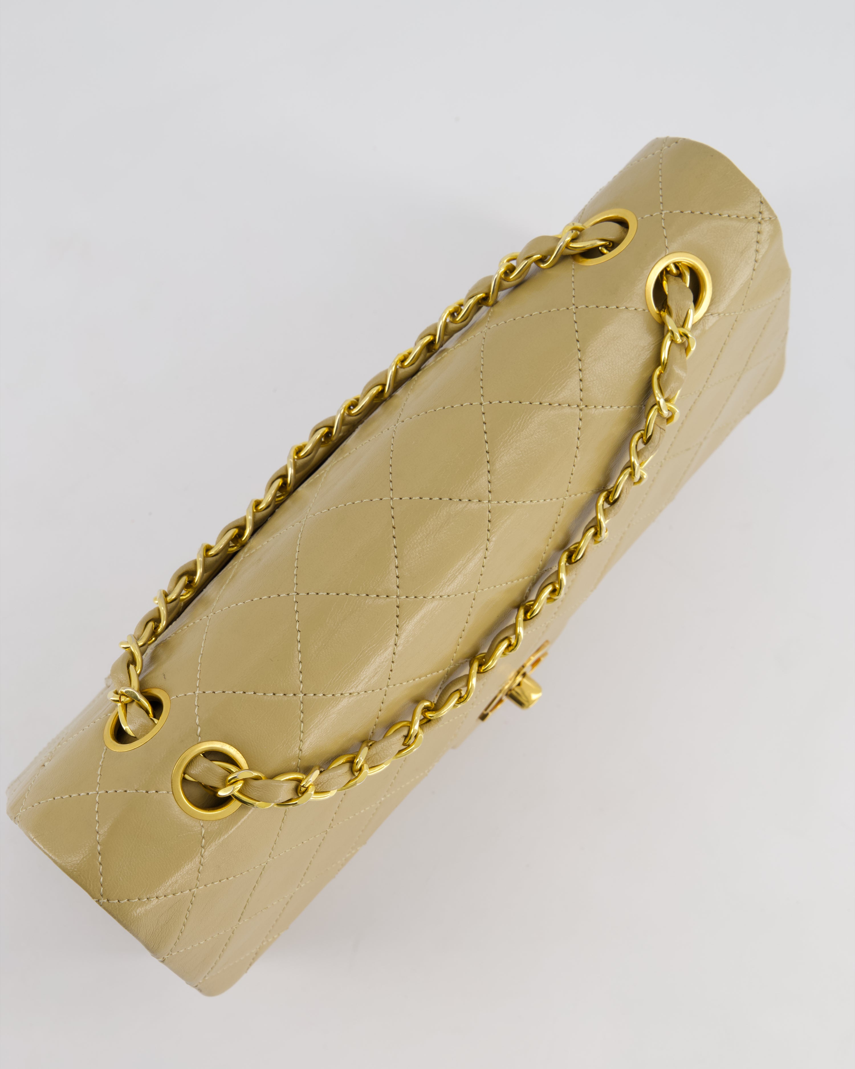 Chanel Vintage Beige Medium Double Flap Bag in Lambskin Leather with 24K Gold Hardware